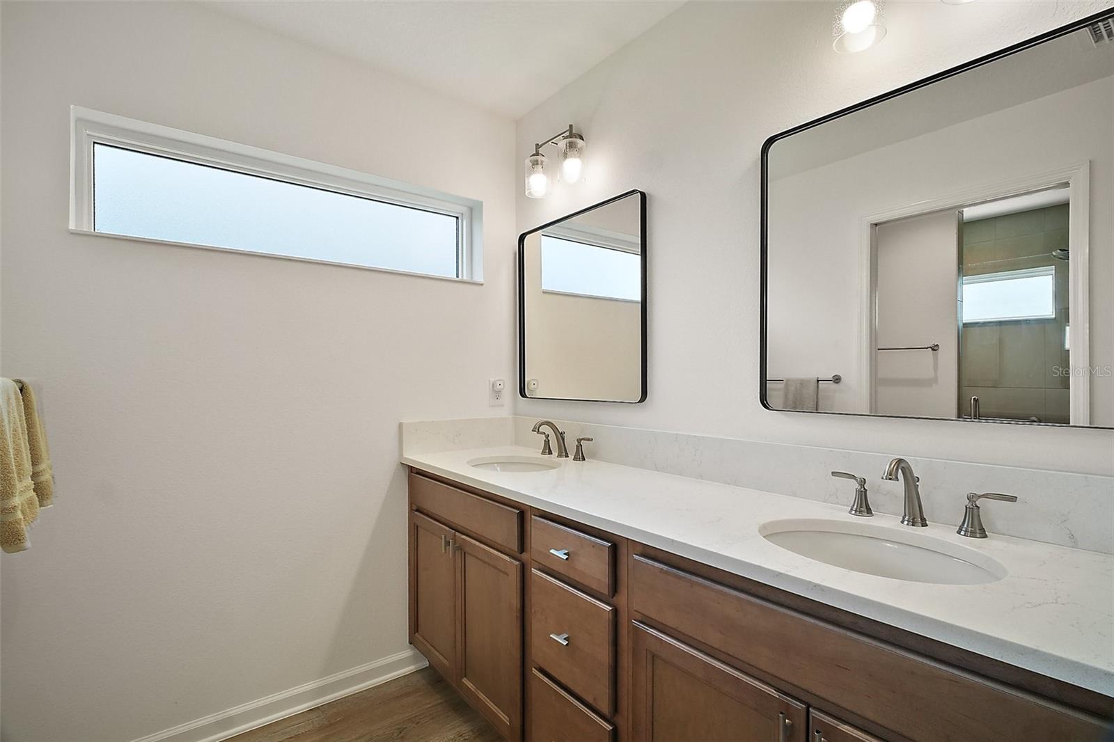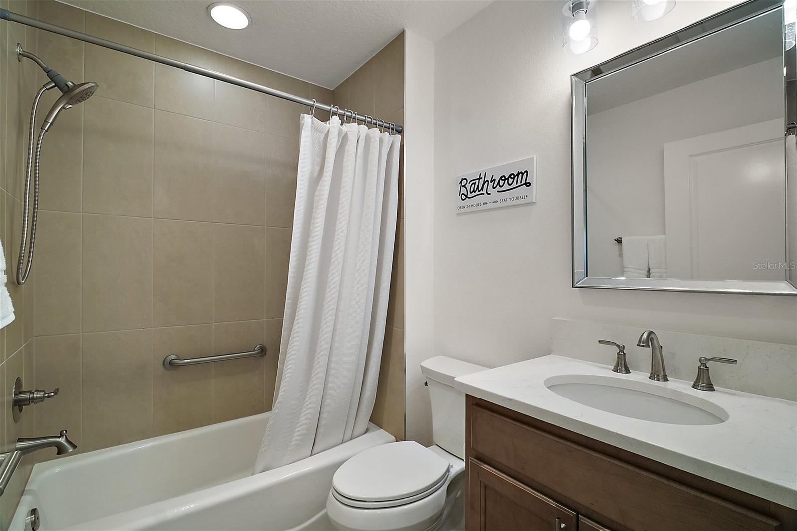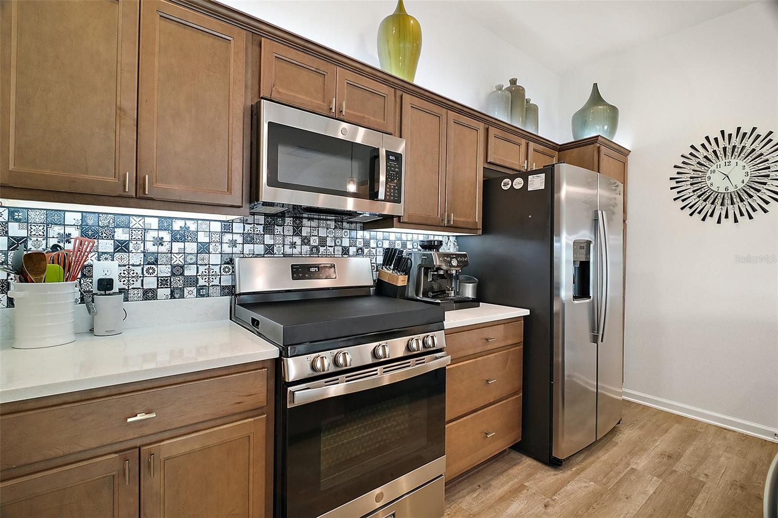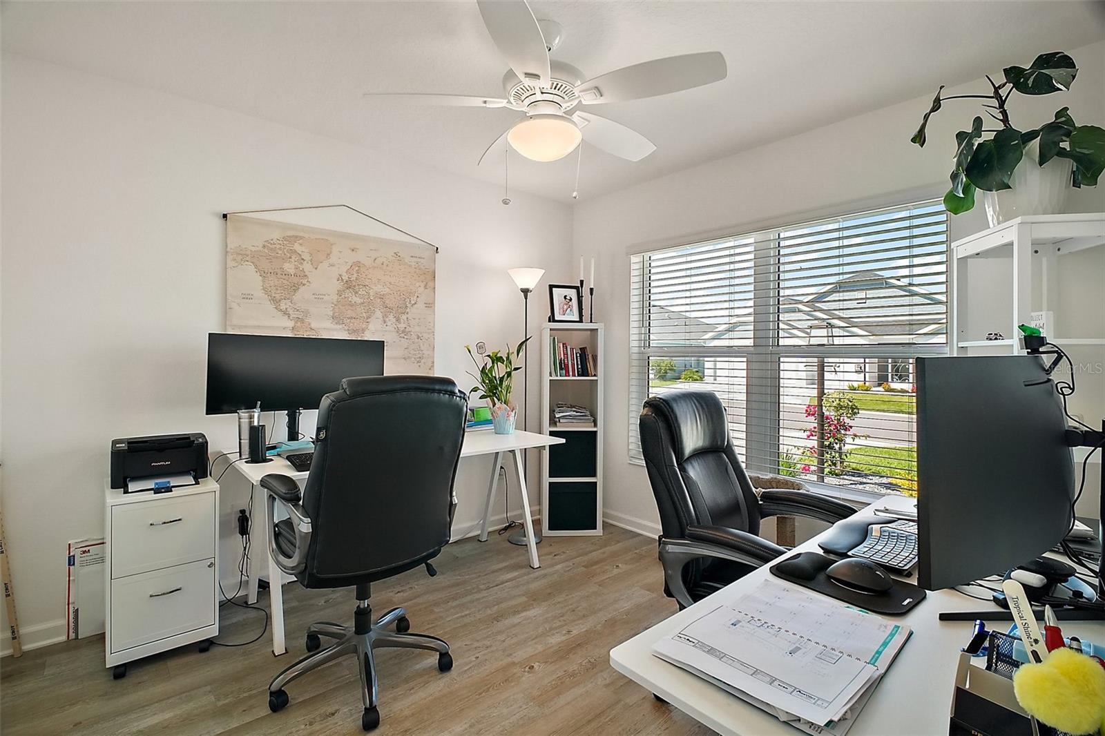 Bem -vindo a esta impressionante casa de modelos de gaivota de 2023, localizada na desejável vila de Denham. Desde o momento em que você chega, você apreciará o apelo do meio-fio, destacado por uma entrada de calçada de concreto estampada de 40 pés e paisagismo lindamente bem cuidado que define o tom da qualidade em toda a casa. Entre em um piso plano aberto e brilhante, com pisos de vinil de luxo por toda parte - nenhum tapete à vista. Os tetos são finalizados com textura knockdown para uma aparência limpa e moderna. A cozinha espaçosa foi projetada para impressionar, oferecendo bancadas de quartzo, utensílios de aço inoxidável, um backsplash de ladrilhos, iluminação atualizada e um fluxo contínuo na área de jantar, com tetos altos. A sala de estar é igualmente convidativa, com um ventilador de teto atualizado e fácil acesso à Lanai exibida - perfeita para relaxar ou divertir. A suíte primária oferece conforto e função, com dois armários walk-in, um teto de bandeja, um ventilador de teto e um banho de suíte em forma de spa com chuveiro de azulejos, pias duplas e bancadas de quartzo. Os quartos de hóspedes têm armários embutidos e são finalizados com pisos de vinil de luxo, enquanto o banho de hóspedes inclui uma combinação de banheira/chuveiro com balcões de granito. Esta casa também oferece uma lavanderia dedicada com lavadora e secadora de ponta, e uma garagem de dois carros terminada com piso de epóxi. Instalações próximas, como o Ezell Recreation Center, oferecem piscinas, quadras esportivas, aulas de fitness e clubes sociais. As aldeias, Flórida
