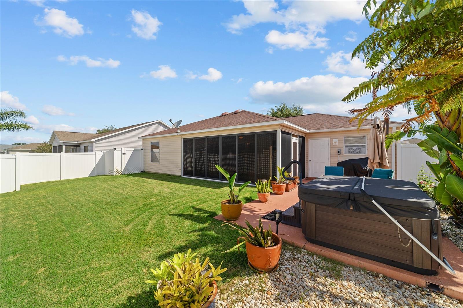 Localização excepcional na vila de Hemingway! Este modelo Austin 2/2 bem mantido é de 1.142 pés quadrados de vida confortável. Aproveite o seu SF Lanai 12x14 fechado, mais 12x24 pátio ao ar livre com banheira de hidromassagem de 3 pessoas e um gracioso cercado em quintal para maior privacidade ou espaço para o seu animal de estimação da família. Luminárias atualizadas. Novo HVAC em julho de 2025. Aparelhos de aço inoxidável. Sem pipoca, sem tapete, atravessando por toda parte. Gradeira/ passarela decorativa. Pátio paisagístico. A garagem tem muito espaço para um carro e carrinho de golfe, escadas no sótão. Telhado 2015. Fechamento rápido, se desejar. Esta casa está idealmente situada perto de compras, restaurantes, piscinas, centros de recreação e vários campos de golfe. Apenas um curto passeio de carrinho de golfe até Lake Sumter Landing e Brownwood Paddock Square. Não perca essa oportunidade de possuir em uma das áreas mais desejáveis das aldeias! Ligue hoje para sua exibição particular.