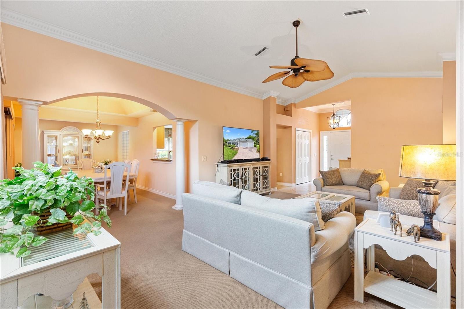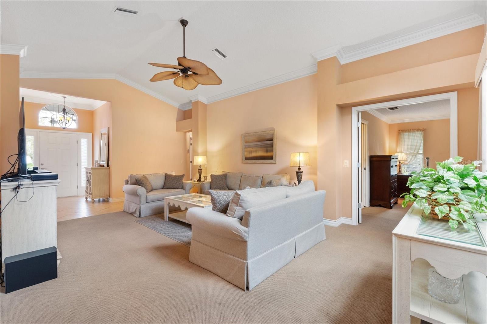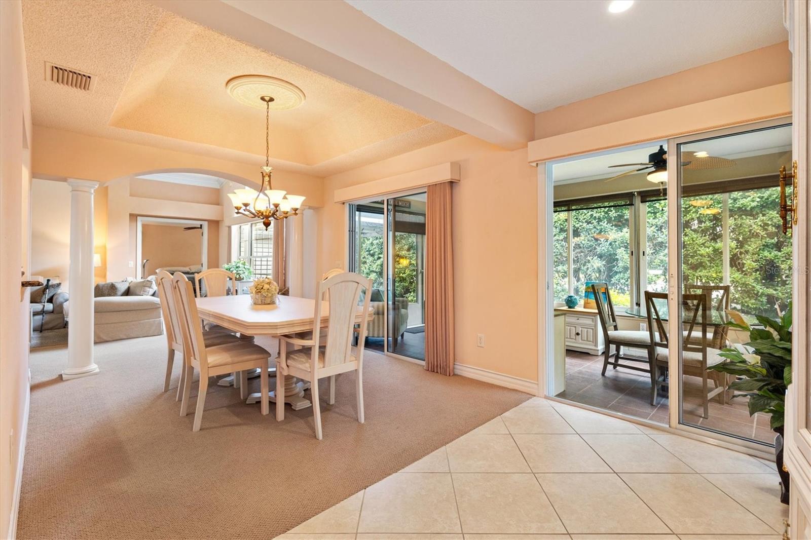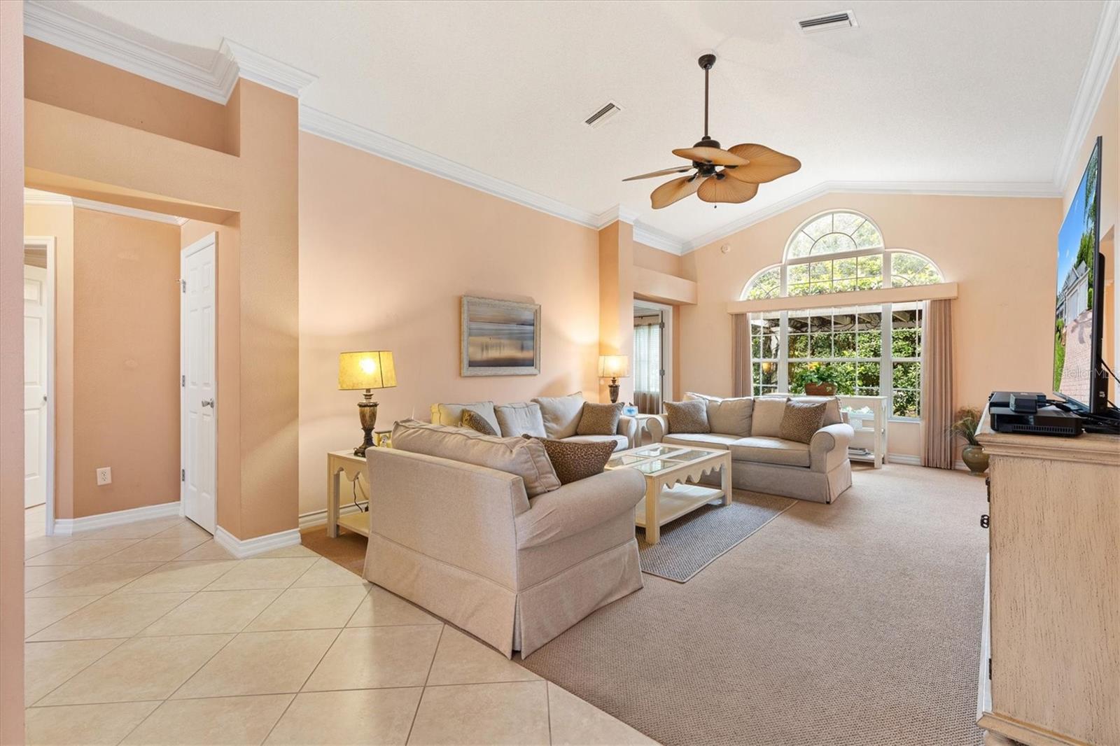 Charmosa casa de designer esticada 3/2 Oleander – compatível com ADA no tranquilo beco sem saída na vila de Glenbrook. SEM VÍNCULO! Telhado 2021, Gás HWH 2010! Aproveite a convidativa varanda frontal coberta, onde painéis laterais de vidro e uma janela de popa preenchem a entrada com luz natural. No interior, você encontrará uma sala de estar formal e uma sala de jantar formal com teto falso, criando o ambiente perfeito para entretenimento. A planta de quartos divididos garante privacidade, com quartos de hóspedes compartilhando uma banheira combinada completa com banheira/chuveiro, enquanto a suíte principal compatível com ADA inclui pias duplas e um box amplo espaçoso. A suíte também dispõe de um generoso closet. A cozinha possui eletrodomésticos de aço inoxidável, fogão a gás, prateleiras removíveis, uma grande despensa, tubo solar e uma copa ensolarada para refeições casuais. A geladeira tem apenas 1 ano e a máquina de lavar louça foi comprada em 2016. O piso inclui azulejos nas áreas úmidas para fácil manutenção. Relaxe o ano todo na varanda fechada ou saia para o pátio externo com pérgula. O quintal tem uma cerca viva de privacidade e Jasmine Gate, criando um oásis sereno no quintal. Os destaques adicionais incluem: sancas por toda parte, garagem completa para 3 carros e garagem para carrinhos de golfe para estacionamento e armazenamento generosos, portas deslizantes de tela de garagem, calçada para pavimentação, toldos externos e amplo armário no hall de entrada. Esta casa combina conforto, conveniência e valor em um local procurado, a poucos minutos de Brownwood e Spanish Springs, Glenview Country Club, Savannah Center e dos campos de Polo e fácil acesso a lojas e restaurantes e tudo o que o The Villages oferece. Agende hoje mesmo sua exibição privada para que você possa começar a viver o Sonho das Aldeias!