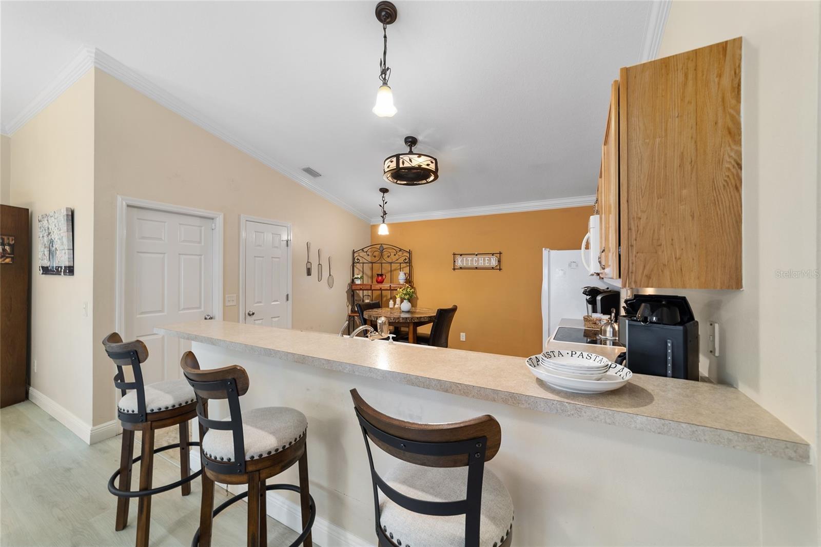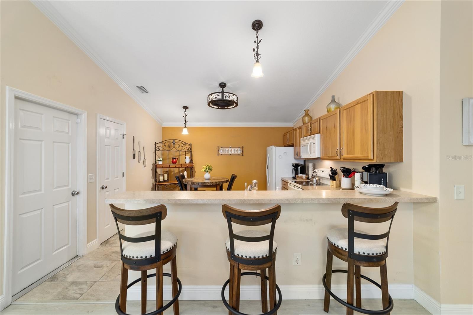 Linda vila de 2 quartos, 2 banheiros no coração das aldeias! ? Bem-vindo a esta casa de mão lindamente mantida nas vilas altamente procuradas de mangue-localizada perfeitamente entre o Lake Sumter Landing Town Square e a Brownwood Paddock Square, onde você desfruta de restaurantes com melhor classificação, compras fantásticas e entretenimento ao vivo noturno! Construído em 2010, esta imaculada casa possui tábuas de vinil de luxo e piso de azulejos de cerâmica por toda parte - nenhum tapete! Os tetos abobadados fazem com que esta casa pareça tão aberta e convidativa. Todos os móveis e decoração estão incluídos, tornando esta uma jóia verdadeiramente pronta. Limpo, elegante e idealmente situado-esta é uma propriedade imperdível!