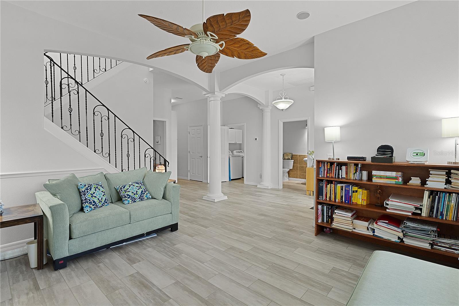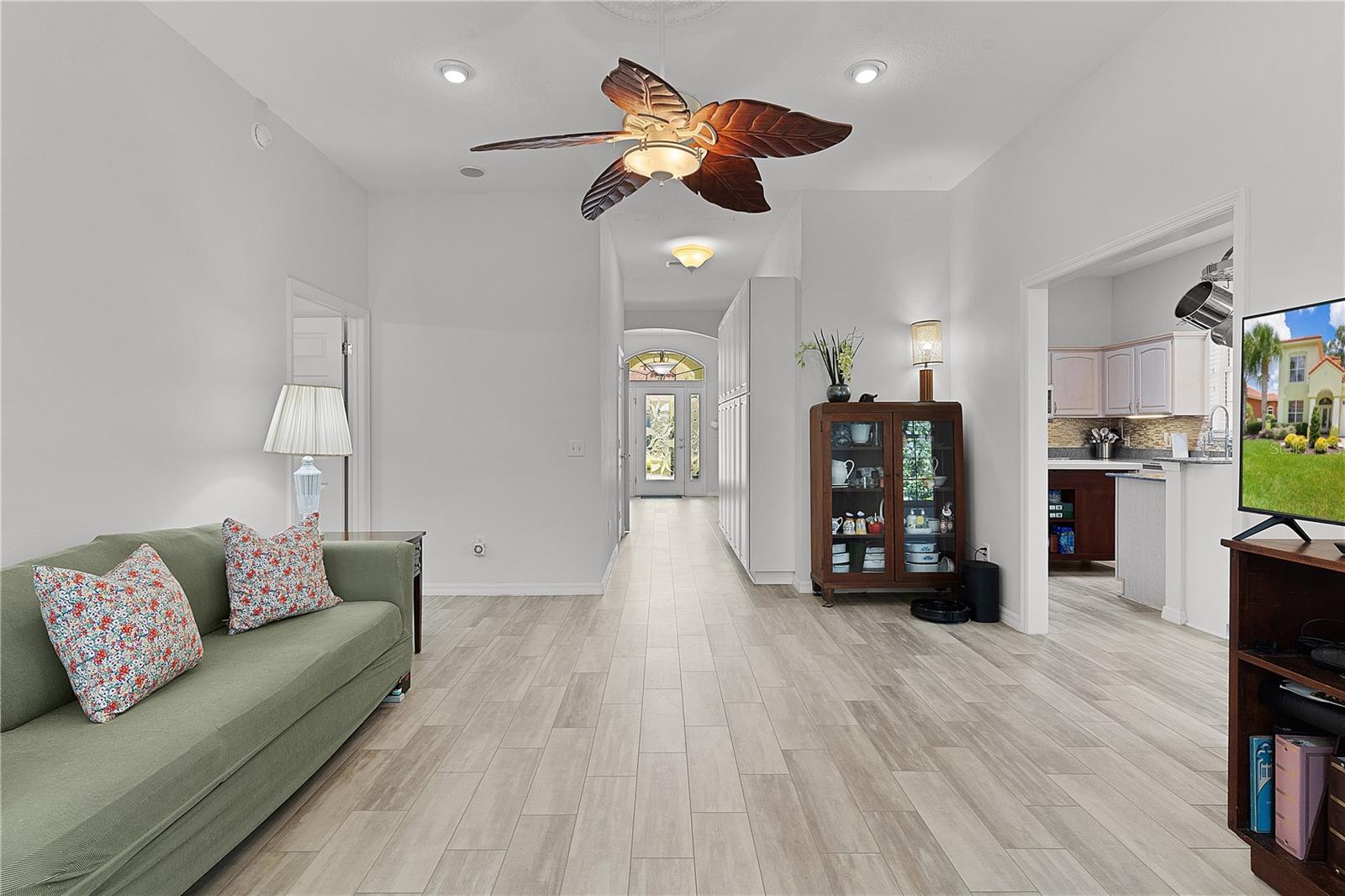 ~NO BOND~ ~NO CDD~ ~2019 TELHADO, HVAC E HWH~ ~SUÍTE PRIMÁRIA NO PRIMEIRO ANDAR~ ~CAMINHAR PARA A PRAÇA~ ~GERADOR DE CASA INTEIRA~ Este super espaçoso 3/2.5 RENATA TOWNHOME possui uma suíte primária no andar principal com 2 quartos de hóspedes e banheiro completo no segundo andar. No bairro de Vista Sonoma, esta casa faz fronteira com Spanish Springs (a uma curta distância a pé) com um belo paisagismo bem estabelecido. Outras características são pisos de LUXO VINIL PLANK (LVP) em todas as principais áreas de estar, TETOS ALTOS e ventiladores de teto nas salas de estar e jantar. A cozinha possui armários ATUALIZADOS, eletrodomésticos de AÇO INOXIDÁVEL, backsplash de TELHA, área de alimentação e DISPONIBILIDADE DE GÁS. A suíte principal oferece teto alto, piso LVP, ventilador de teto, closet generoso e banheiro privativo com chuveiro TILED, pias DUPLAS, bancadas de QUARTZO, backsplash TILE e piso LVP. Dois grandes quartos de hóspedes possuem carpete, ventiladores de teto e armários embutidos - um com teto alto e acesso ao sótão. O banheiro de hóspedes inclui uma combinação de chuveiro/banheira de TILED, piso LVP, bancadas de QUARTZO e armários ATUALIZADOS. Há também uma cozinha compacta no segundo andar com pia, micro-ondas e geladeira independente. ARMÁRIOS DE ARMAZENAMENTO PERSONALIZADOS alinham-se no generoso hall de entrada. Desfrute de relaxamento ou entretenimento na varanda com telas deslizantes de acrílico, cercada por um paisagismo privativo. A poucos minutos das históricas Spanish Springs, restaurantes, lojas, 7 campos de golfe executivos, 3 campos de campeonato e uma curta viagem de carrinho de golfe até o Lago Sumter Landing.