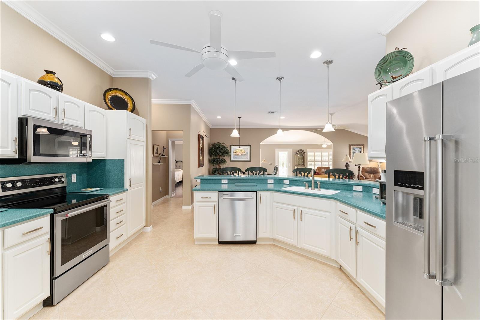SEM BOND - 1 ANO de garantia American Home Shield oferecida - Perto de Publix, COSTCO, Walmart, restaurantes e bancos. Você está procurando um modelo de designer (expandido GARDENIA) com atualizações do Premiere e com preço de venda! Não procure mais, pois isso é desejável modelo em uma localização muito conveniente perto do LAKE SUMTER LANDING e da Hwy 466! Atualizado e substituído - TELHADO 2021, HVAC E AQUECEDOR DE ÁGUA - 2019, e SEM VINCULAÇÃO!! Recentemente pintado por dentro e todos os azulejos foram limpos profissionalmente - MOVIMENTO PRONTO e NÃO TAPETE! Os moradores adoram o Gardenia por sua planta aberta e quartos divididos para maior comodidade. privacidade, e o que torna esta casa ÚNICA é a GRANDE VARANDA FRONTAL! A atratividade do meio-fio é tão convidativa com um exterior/acabamento recentemente pintado, entrada de automóveis pintada e árvores e arbustos bem cuidados. Você inicialmente entra em uma grande varanda frontal com tela (165 sf) que permite relaxar em meio ao belo paisagismo ou receber convidados. Ao entrar Na casa, você notará os tetos abobadados, os cantos redondos das paredes e outras atualizações de luxo. Há extensas MOLDURAS DE COROA e PERSIANAS DE PLANTAÇÃO em toda esta casa. Existem DOIS TUBOS SOLARES, ventiladores de teto e luminárias atualizados e SEM PIPOCA TETOS. A cozinha possui lindas bancadas CORIAN, armários atualizados e aparelhos de AÇO INOXIDÁVEL mais recentes. Há iluminação de cozinha atualizada e ROLL OUTS em os armários da cozinha para fácil acesso. Como bônus, existem GÁS HOOK-UPS para o fogão e a secadora de roupas! A área da sala de jantar/estar é extra grande para entretenimento e assentos confortáveis com lareira a gás para ambiente. O quarto principal tem lindos piso laminado, teto abobadado, dois closets e uma ampla suíte com Chuveiro walk-in atualizado e pias duplas. O quarto de hóspedes possui um armário grande e é muito convidativo e brilhante. O 3º quarto ou arrumos (sem armário) está configurado como escritório e tem uma cama Murphy para hóspedes adicionais. Há um banheiro conveniente entre esses dois quartos, bem como um armário de roupa de cama. Espere até ver o Florida Room, que oferece espaço extra para qualquer uso que você possa ter, pois faz uma transição perfeita da área de estar e adiciona metragem quadrada extra. Há uma porta que dá para a varanda dos fundos com Privacidade e TOLDO ELÉTRICO para sombra e conforto. A lavanderia com um novo Máquina de lavar (2024) e secadora (2015) e lava-loiça dão acesso à garagem que tem arrecadação, sótão escadas com deck e sistema de filtragem/amolecimento de água para toda a casa. A Irrigação o controle na garagem foi recentemente substituído por acessibilidade WiFi e há um protetor contra surtos de toda a casa. Esta casa foi tão bem conservada e foi recentemente atualizado e atualizado! Fica em uma rua tranquila e em um local muito ativo socialmente bairro que você vai adorar! Este local fica a 1,6 km do Lago Sumter Landing para entretenimento e restaurantes, bem como duas piscinas, golfe e centro recreativo Pimlico nas proximidades. Não procure mais se você está procurando uma casa pronta para morar em uma ótima localização em The Villages, Flórida. Mal posso esperar para você ver!!