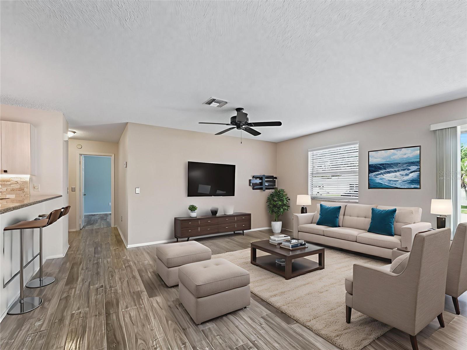 Uma ou mais fotos foram virtualmente encenadas. TÍTULO PAGO! GRANDE VANTAGEM: Estacionamento para hóspedes nas proximidades para sua conveniência! NOVO TELHADO Maio de 2025 - LOCALIZAÇÃO FANTÁSTICA entre Lake Sumter Landing e Spanish Springs! Lindo LOTE DE CANTO - BANCADAS DE GRANITO - MUITAS ATUALIZAÇÕES Villa Pátio na Vila de Rio Ponderosa em The Villages Florida está pronta para você se mudar o mais rápido possível! Esta Villa Pátio tem 2 Quartos, 2 Banheiros, Cozinha Bar para Café da Manhã, Cozinha Despensa, Cozinha Recanto para Café da Manhã, 2 Armários de Roupa e 1 1/2 Garagem para Carros, além de uma Lanai com Tela, todos esperando por você! Atualizado: Eletrodomésticos de Cozinha, Bancadas de Granito, Backsplash, Iluminação Sob Armários, Iluminação Pendente no Bar de Café da Manhã, Tubos Solares, Pisos de Vinil Luxo em toda a área e Pintura Neutra. A sala tem espaço para TV de qualquer tamanho que você desejar, pois há uma grande parede para utilizar. O quarto principal possui uma cama king size, se desejar, além de todos os seus móveis - ele também tem um grande closet. O segundo quarto tem um armário embutido e espaço para um quarto de hóspedes ou uma sala de hobby ou ambos. TÍTULO PAGO!