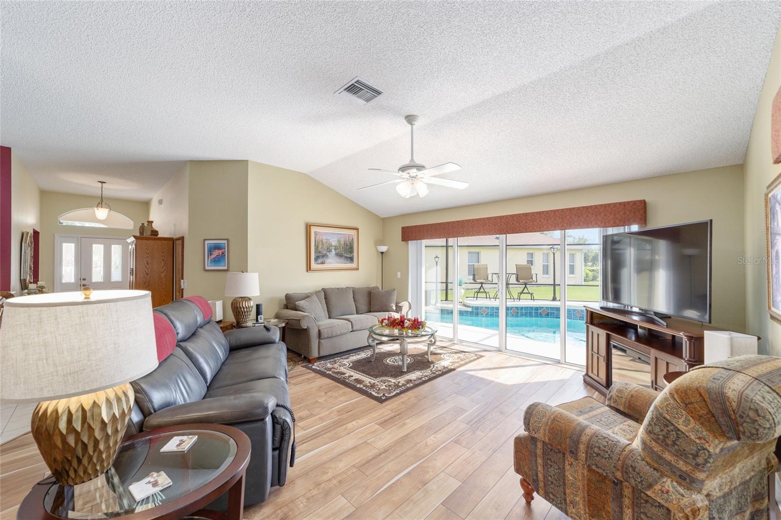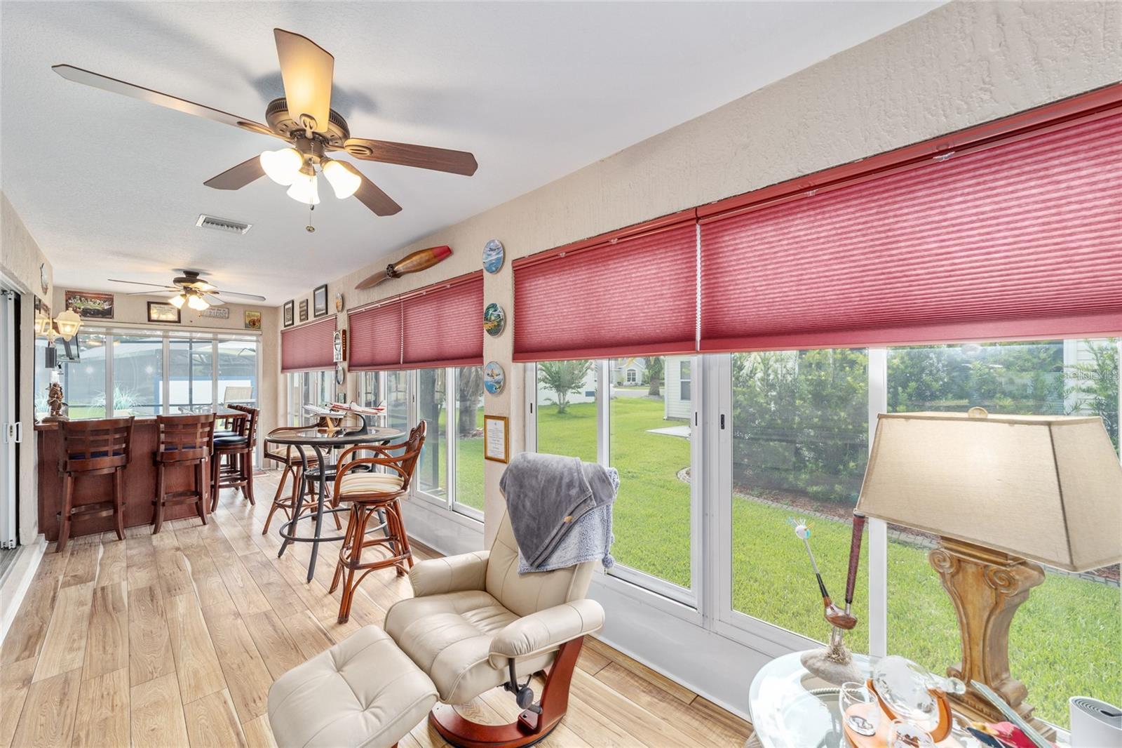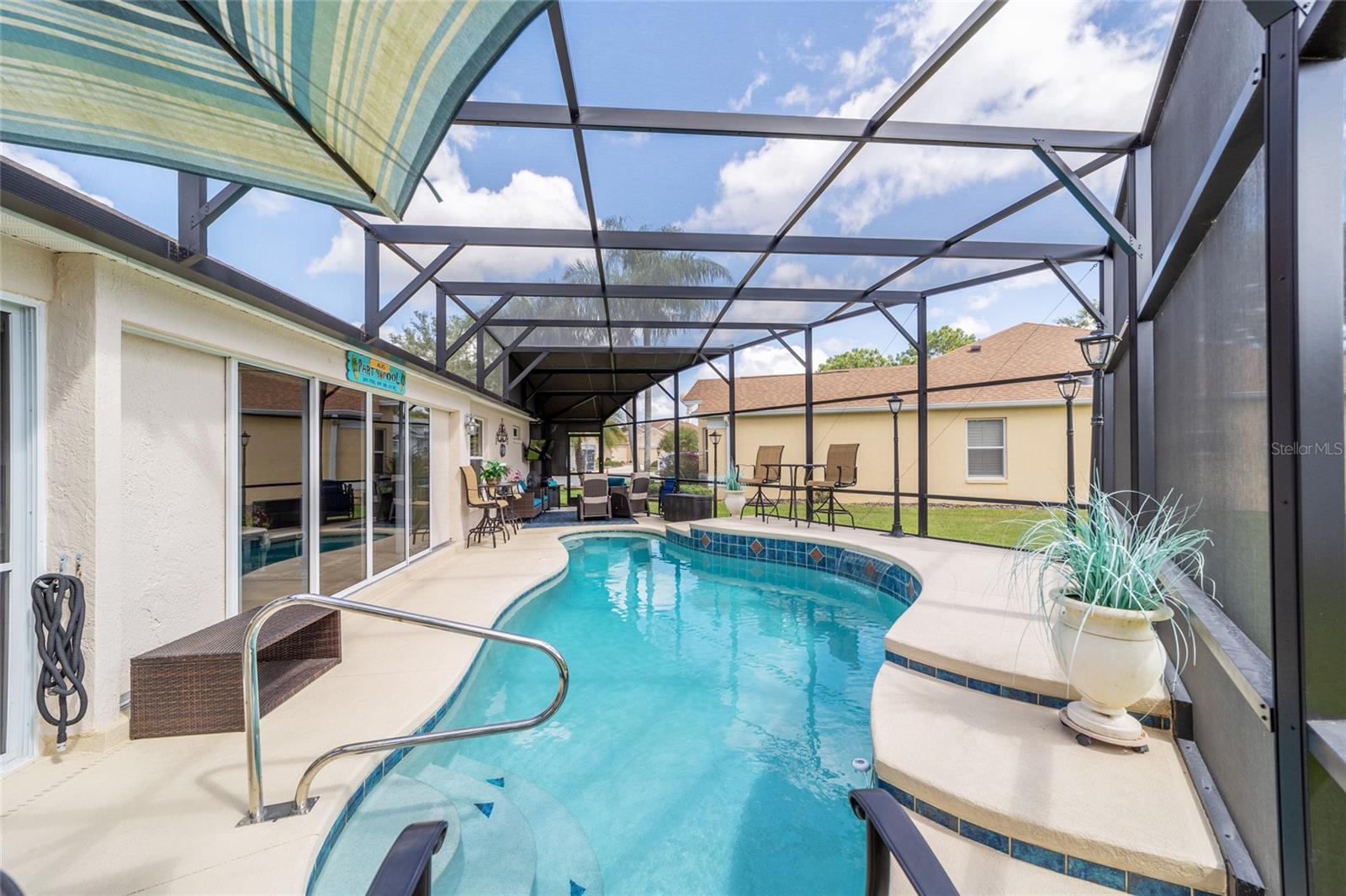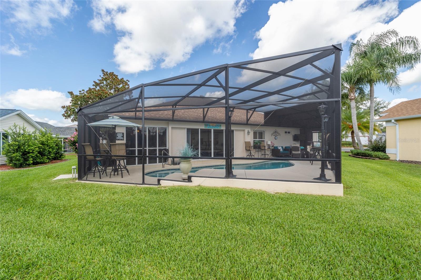 PROPRIETÁRIO MOTIVADO PARA OFERTAS! DENTRO RECÉM-PINTADO DE UMA LINDA COR NEUTRA, FOTOS EM BREVE! Bem-vindo a esta Gardenia Designer lindamente personalizada de 3 quartos e 2 banheiros (um sem armário), localizada na muito procurada vila de Winifred, a poucos minutos do Lago Sumter Landing e oferecendo uma vista rara do campo de golfe Championship Laurel Valley de Arnold Palmer - direto da sua sala de estar! Esta casa impressiona desde o momento em que você chega, com uma calçada personalizada, paisagismo maduro e um ambiente tranquilo sem saída. Garagem Ampliada + GARAGEM DE CARRINHO DE GOLFE, com piso em epóxi, escadas rebatíveis no sótão e prateleiras de armazenamento. Entre e você encontrará luxuosos pisos de pranchas de vinil em todas as principais áreas de estar, azulejos de cerâmica nos espaços úmidos e um layout aberto e arejado com tetos abobadados e PERSIANAS DE PLANTAÇÃO por toda parte. O coração da casa é o espaço ampliado, destacado por uma porta de vidro deslizante dupla personalizada que emoldura vistas deslumbrantes da sua PISCINA DE ÁGUA SALGADA, protegida em uma gaiola recentemente reformada. Relaxe à sombra sob a tela personalizada com conexão para TV ou acenda a churrasqueira na área coberta para churrasco ao ar livre - perfeitamente projetada para entretenimento durante todo o ano. A cozinha é o sonho de um chef com bancadas em CORIAN, backsplash de azulejos de bom gosto, GÁS NATURAL, eletrodomésticos mais novos e uma charmosa copa. LAVANDERIA INTERNA com pia. Outro toque especial, o LANAI ESTÁ FECHADO sob calor e ar adicionando espaço extra e possui um bar personalizado com um segundo acesso ao espaço externo para maior comodidade, criando um espaço ideal para receber amigos e familiares. A suíte principal é um verdadeiro retiro, oferecendo closets para ele e para ela, uma penteadeira dupla e um box amplo de azulejos atualizado. A planta dividida oferece privacidade aos hóspedes, com um quarto com cama embutida personalizada e escrivaninha embutida com armazenamento, e o outro aconchegante, espaçoso e cheio de luz natural. Destaques adicionais incluem: Substituição do telhado em 2023 HVAC e aquecedor de água quente atualizados Sem vínculo! Sistema de filtragem de água doméstica. Esta propriedade excepcional foi amada e mantida; verifica todos os requisitos em termos de conforto e estilo - não perca a chance de possuir um pedaço do paraíso em The Villages!