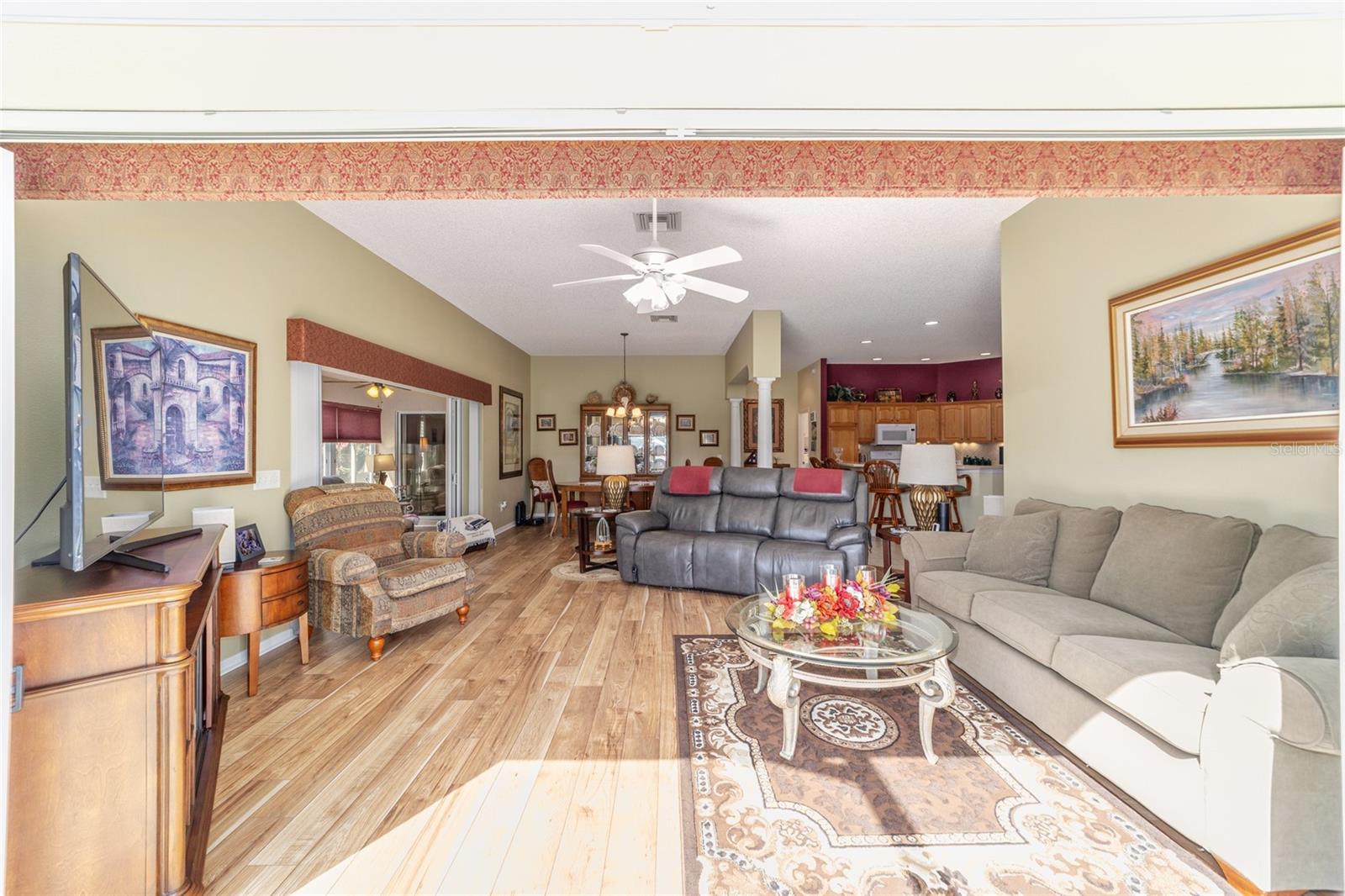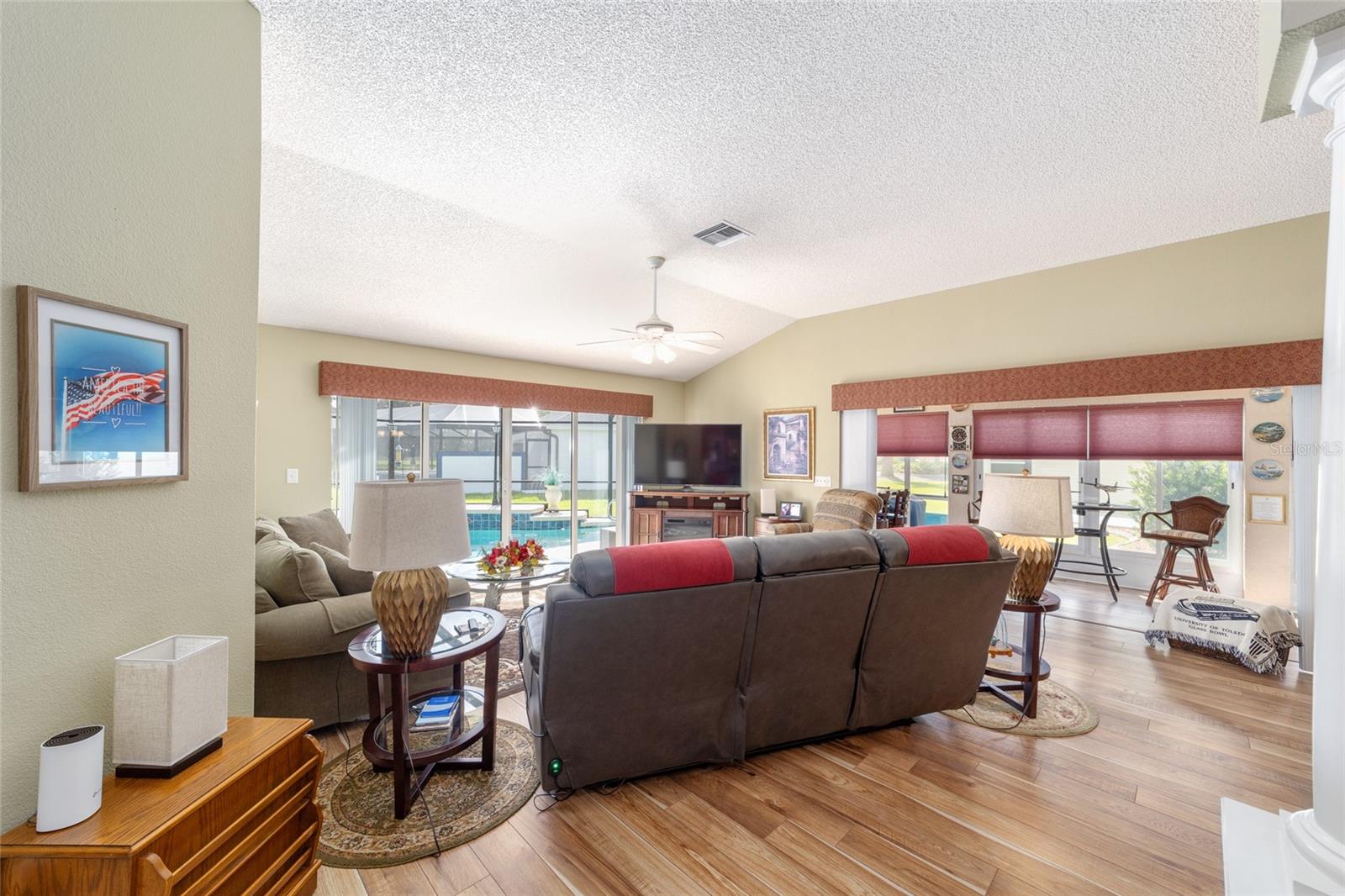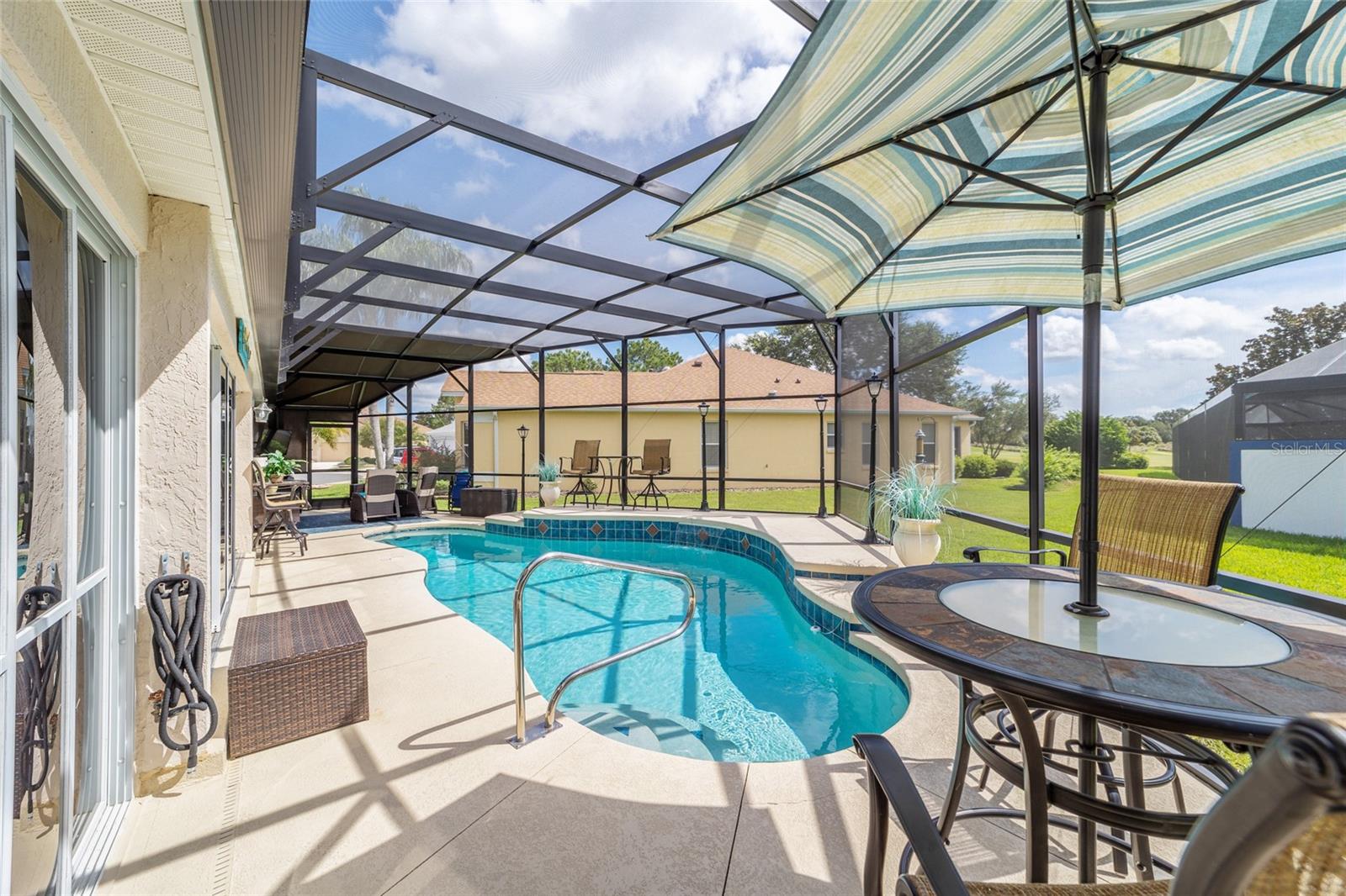 PROPRIETÁRIO MOTIVADO PARA OFERTAS! DENTRO RECÉM-PINTADO DE UMA LINDA COR NEUTRA, FOTOS EM BREVE! Bem-vindo a esta Gardenia Designer lindamente personalizada de 3 quartos e 2 banheiros (um sem armário), localizada na muito procurada vila de Winifred, a poucos minutos do Lago Sumter Landing e oferecendo uma vista rara do campo de golfe Championship Laurel Valley de Arnold Palmer - direto da sua sala de estar! Esta casa impressiona desde o momento em que você chega, com uma calçada personalizada, paisagismo maduro e um ambiente tranquilo sem saída. Garagem Ampliada + GARAGEM DE CARRINHO DE GOLFE, com piso em epóxi, escadas rebatíveis no sótão e prateleiras de armazenamento. Entre e você encontrará luxuosos pisos de pranchas de vinil em todas as principais áreas de estar, azulejos de cerâmica nos espaços úmidos e um layout aberto e arejado com tetos abobadados e PERSIANAS DE PLANTAÇÃO por toda parte. O coração da casa é o espaço ampliado, destacado por uma porta de vidro deslizante dupla personalizada que emoldura vistas deslumbrantes da sua PISCINA DE ÁGUA SALGADA, protegida em uma gaiola recentemente reformada. Relaxe à sombra sob a tela personalizada com conexão para TV ou acenda a churrasqueira na área coberta para churrasco ao ar livre - perfeitamente projetada para entretenimento durante todo o ano. A cozinha é o sonho de um chef com bancadas em CORIAN, backsplash de azulejos de bom gosto, GÁS NATURAL, eletrodomésticos mais novos e uma charmosa copa. LAVANDERIA INTERNA com pia. Outro toque especial, o LANAI ESTÁ FECHADO sob calor e ar adicionando espaço extra e possui um bar personalizado com um segundo acesso ao espaço externo para maior comodidade, criando um espaço ideal para receber amigos e familiares. A suíte principal é um verdadeiro retiro, oferecendo closets para ele e para ela, uma penteadeira dupla e um box amplo de azulejos atualizado. A planta dividida oferece privacidade aos hóspedes, com um quarto com cama embutida personalizada e escrivaninha embutida com armazenamento, e o outro aconchegante, espaçoso e cheio de luz natural. Destaques adicionais incluem: Substituição do telhado em 2023 HVAC e aquecedor de água quente atualizados Sem vínculo! Sistema de filtragem de água doméstica. Esta propriedade excepcional foi amada e mantida; verifica todos os requisitos em termos de conforto e estilo - não perca a chance de possuir um pedaço do paraíso em The Villages!