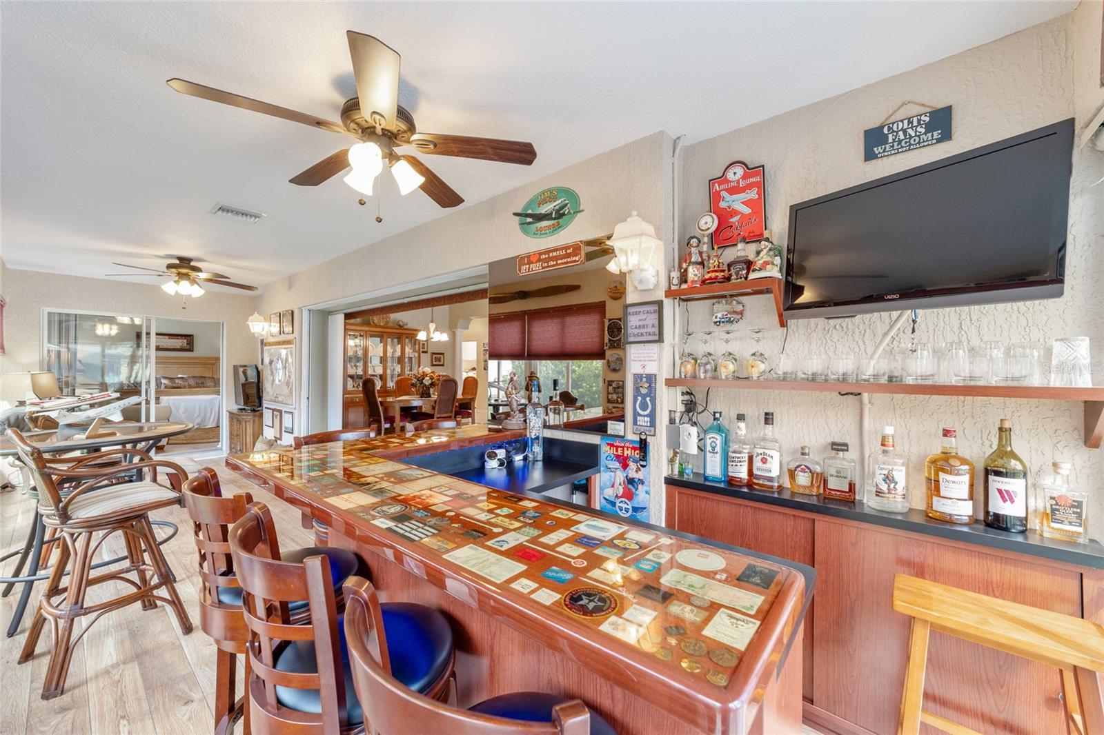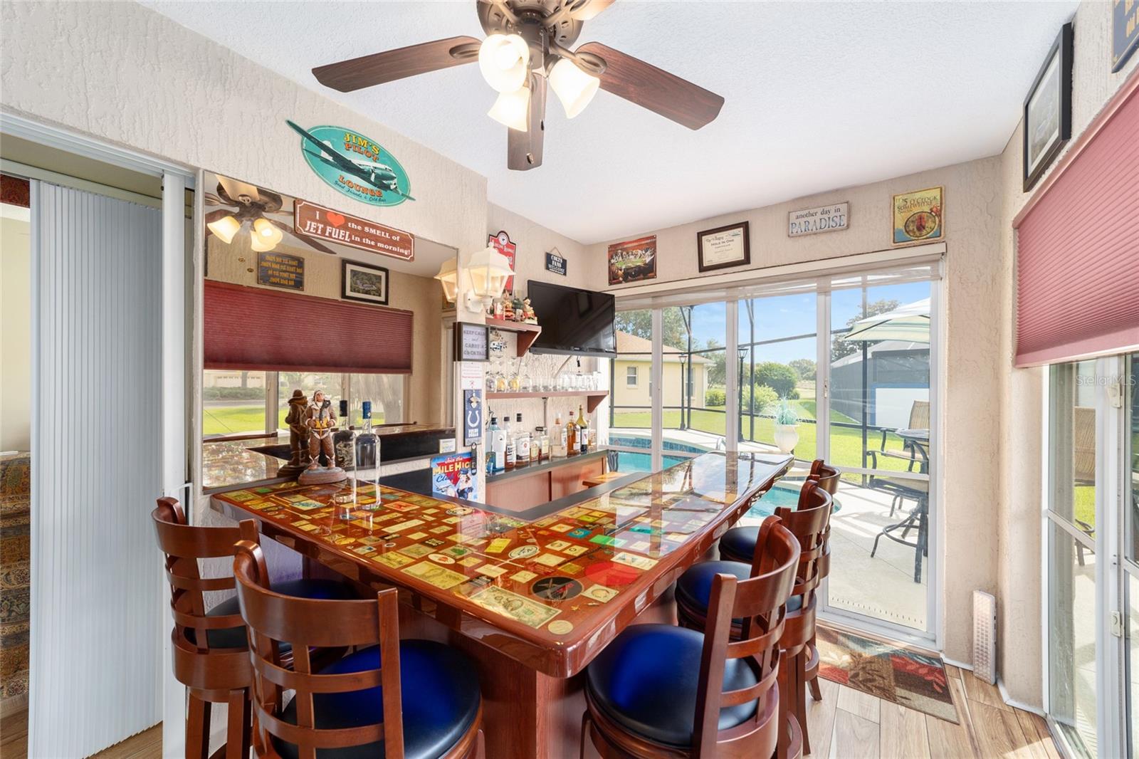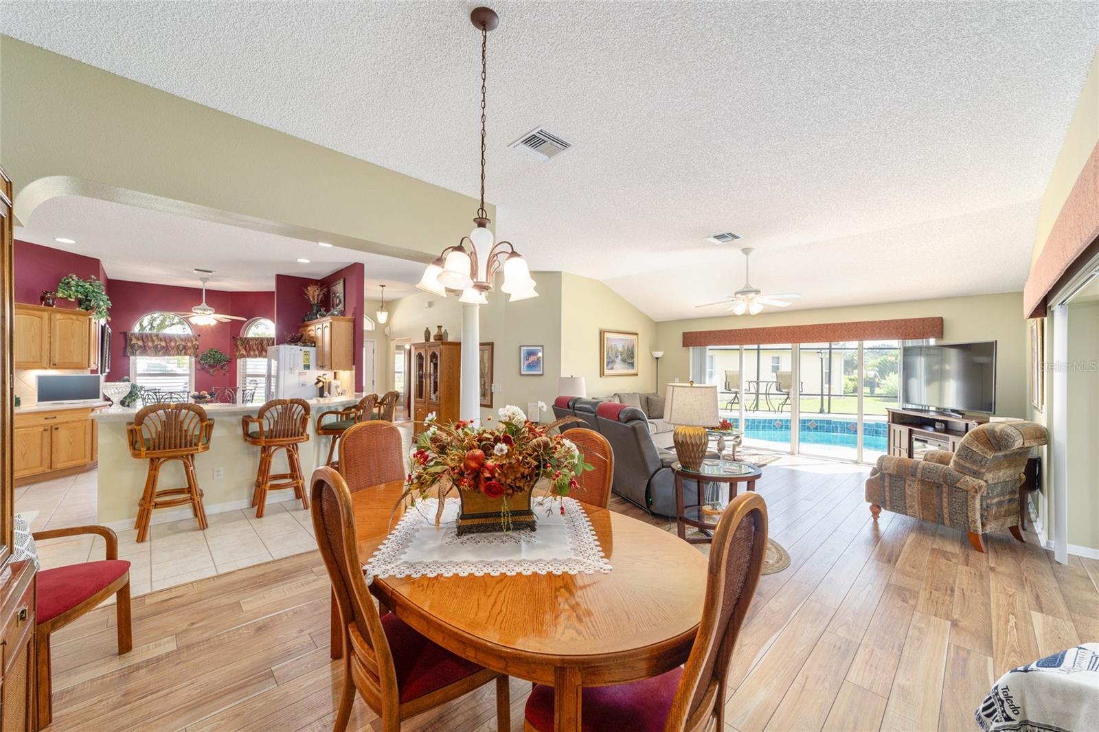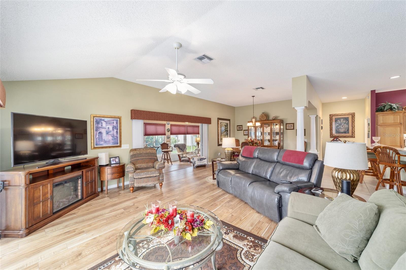 PROPRIETÁRIO MOTIVADO PARA OFERTAS! DENTRO RECÉM-PINTADO DE UMA LINDA COR NEUTRA, FOTOS EM BREVE! Bem-vindo a esta Gardenia Designer lindamente personalizada de 3 quartos e 2 banheiros (um sem armário), localizada na muito procurada vila de Winifred, a poucos minutos do Lago Sumter Landing e oferecendo uma vista rara do campo de golfe Championship Laurel Valley de Arnold Palmer - direto da sua sala de estar! Esta casa impressiona desde o momento em que você chega, com uma calçada personalizada, paisagismo maduro e um ambiente tranquilo sem saída. Garagem Ampliada + GARAGEM DE CARRINHO DE GOLFE, com piso em epóxi, escadas rebatíveis no sótão e prateleiras de armazenamento. Entre e você encontrará luxuosos pisos de pranchas de vinil em todas as principais áreas de estar, azulejos de cerâmica nos espaços úmidos e um layout aberto e arejado com tetos abobadados e PERSIANAS DE PLANTAÇÃO por toda parte. O coração da casa é o espaço ampliado, destacado por uma porta de vidro deslizante dupla personalizada que emoldura vistas deslumbrantes da sua PISCINA DE ÁGUA SALGADA, protegida em uma gaiola recentemente reformada. Relaxe à sombra sob a tela personalizada com conexão para TV ou acenda a churrasqueira na área coberta para churrasco ao ar livre - perfeitamente projetada para entretenimento durante todo o ano. A cozinha é o sonho de um chef com bancadas em CORIAN, backsplash de azulejos de bom gosto, GÁS NATURAL, eletrodomésticos mais novos e uma charmosa copa. LAVANDERIA INTERNA com pia. Outro toque especial, o LANAI ESTÁ FECHADO sob calor e ar adicionando espaço extra e possui um bar personalizado com um segundo acesso ao espaço externo para maior comodidade, criando um espaço ideal para receber amigos e familiares. A suíte principal é um verdadeiro retiro, oferecendo closets para ele e para ela, uma penteadeira dupla e um box amplo de azulejos atualizado. A planta dividida oferece privacidade aos hóspedes, com um quarto com cama embutida personalizada e escrivaninha embutida com armazenamento, e o outro aconchegante, espaçoso e cheio de luz natural. Destaques adicionais incluem: Substituição do telhado em 2023 HVAC e aquecedor de água quente atualizados Sem vínculo! Sistema de filtragem de água doméstica. Esta propriedade excepcional foi amada e mantida; verifica todos os requisitos em termos de conforto e estilo - não perca a chance de possuir um pedaço do paraíso em The Villages!