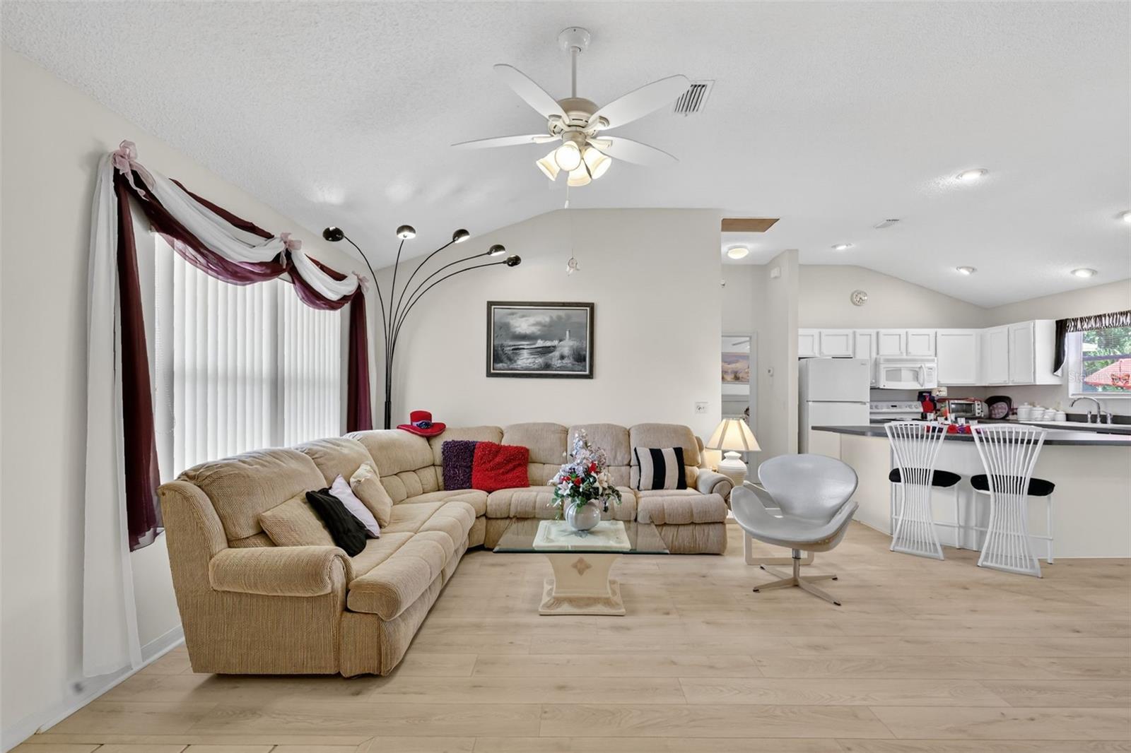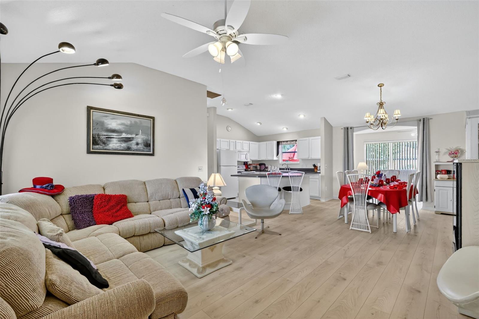 Fantástico e turvo (algumas exceções) 3/2 Carolina III (Amarillo) com espaçosa sala de bônus no ar e pátio traseiro - convenientemente localizado perto da Praça da Cidade de Spanish Springs e do Lake Sumter Landing na altamente procurada vila de Santo Domingo! Mudar -se pronto - basta trazer sua escova de dentes! Bond pago! Telhado (2021). HVAC (2019). Ao se aproximar desta linda casa, você será recebido por paisagismo em camadas e curvas com camas chapadas, unidade e passarelas pintadas e uma varanda pitoresca - o local perfeito para relaxar e desfrutar do sol da Flórida! Entre para descobrir a espetacular planta de piso conceito aberto das áreas de estar, jantar e cozinha. Tetos abobadados e piso de tábuas de vinil de luxo de madeira leve Grace A espaçosa área de estar principal. A Amazing Kitchen possui armários brancos com traços, bancadas elegantes de ébano, pisos de azulejos e uma ilha central de tamanho generoso com armários adicionais para armazenamento abundante. Logo na área de jantar, descubra uma sala fabulosa, multifuncional, abaixo do ar, com piso de tábua de vinil de luxo e uma porta francesa externa. Esta sala versátil oferece o espaço ideal para uma sala, sala de mídia ou escritório em casa. O pátio traseiro adjacente tem vista para um cenário parecido com um parque, oferecendo uma área privada de estar ao ar livre-perfeita para relaxar ou divertir em seu próprio retiro sereno no quintal! De volta para dentro, o quarto principal oferece um grande armário. Seu banheiro privativo possui armários brancos com vaidade de maquiagem, chuveiro e um armário de linho. Projetado para privacidade, a planta baixa cria uma asa de hóspedes separada com dois quartos adicionais em toda a casa, cada um com armários embutidos. O segundo banheiro é cuidadosamente designado com uma vaidade de madeira, combinação de banheira e chuveiro e um armário de linho para o corredor para maior armazenamento. Uma lavanderia interior localizada centralmente com armários adicionais fornece funcionalidade e conveniência. Diretamente da lavanderia, você encontrará uma espaçosa garagem de dois carros, oferecendo prateleiras de armazenamento e um acesso do sótão com escadas. Não perca a oportunidade de tornar este próprio lar incrível! A vila de Santo Domingo está convenientemente localizada perto da Praça da Cidade de Spanish Springs e do Lake Sumter Landing; Tierra del Sol e La Hacienda Centers, clubes de campo e campos de golfe; múltiplas piscinas e bola de picles; e 466 com compras abundantes, restaurantes, bancos, médicos e muito mais! Por favor, assista ao nosso vídeo passo a passo desta linda casa em um local incrível! Ligue hoje para agendar sua exibição privada ou turnê virtual!