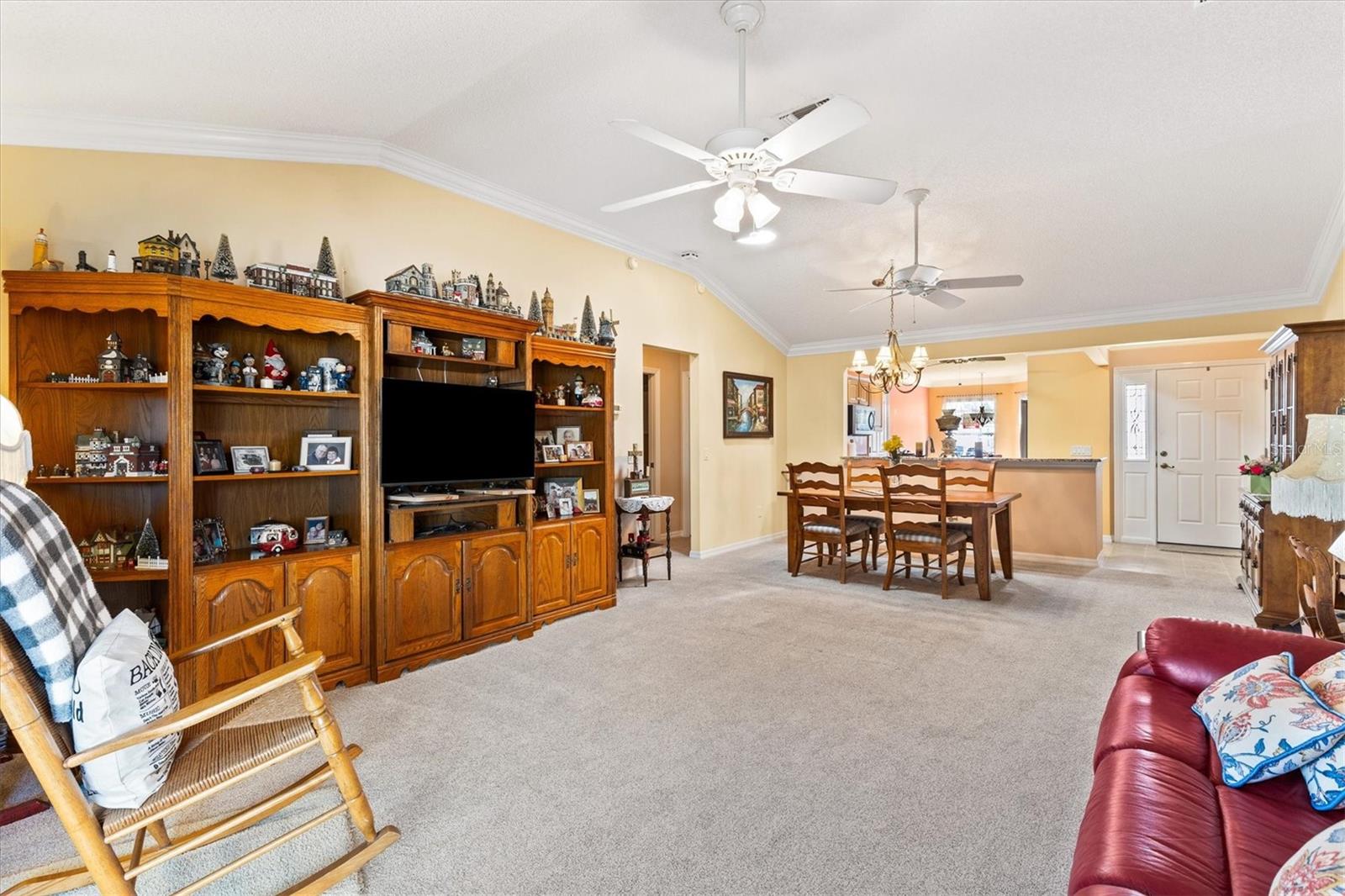 Descubra esta adorável casa de designer 3/2 Wisteria na altamente desejada vila de Sabal Chase - e o melhor de tudo, SEM VINCULAÇÃO! Com um telhado 2025, HVAC 2015 e aquecedor de água a gás 2024, as principais atualizações já foram feitas. Além disso, os serviços de controle de pragas já foram pagos durante o ano. Idealmente localizada a apenas 2,2 km do Lago Sumter Landing, esta casa oferece conforto e conveniência. Um pátio frontal lindamente atualizado com parede de tijolos, paisagismo rochoso de baixa manutenção e uma entrada coberta com porta de tela Phantom criam uma recepção calorosa. Entre para encontrar um charmoso painel lateral de vitral e um layout aberto e claro, aprimorado por dois tubos solares. A cozinha combina estilo e função, com eletrodomésticos de aço inoxidável, fogão a gás de 4 bocas, bancada de granito, armários extraíveis e despensa. Uma barra de café da manhã se abre perfeitamente para a área de estar principal, perfeita para refeições casuais e divertidas. Esta desejável planta de quarto dividido inclui sancas, ventiladores de teto e carpetes novos por toda parte. A suíte master oferece um closet espaçoso e um banheiro privativo inspirado em spa com chuveiro romano e pia dupla. Dois confortáveis quartos de hóspedes compartilham um banheiro completo com combinação de banheira/chuveiro. Desfrute de relaxamento durante todo o ano na varanda fechada e com temperatura controlada ou saia para a gaiola coberta por um dossel - um espaço convidativo para o café da manhã, reuniões noturnas ou uma vida tranquila ao ar livre. A garagem para dois carros agrega praticidade com kit de escada de sótão, armários embutidos, bancada de trabalho e sistema de filtragem de água de alta qualidade que só precisa de sal. A unidade de parede na sala de estar, duas TVs e o sofá lanai reclinável transmitem um valor extra. Localizada perto dos Centros Recreativos Bacall e Canal Street, das piscinas Largo e Sabal Chase, e perfeitamente posicionada entre Lake Sumter Landing e Brownwood Paddock Square, esta casa coloca você no coração de tudo o que The Villages tem a oferecer. Não deixe de assistir ao tour virtual e agende sua exibição privada hoje mesmo - o estilo de vida dos seus sonhos em Villages o aguarda!