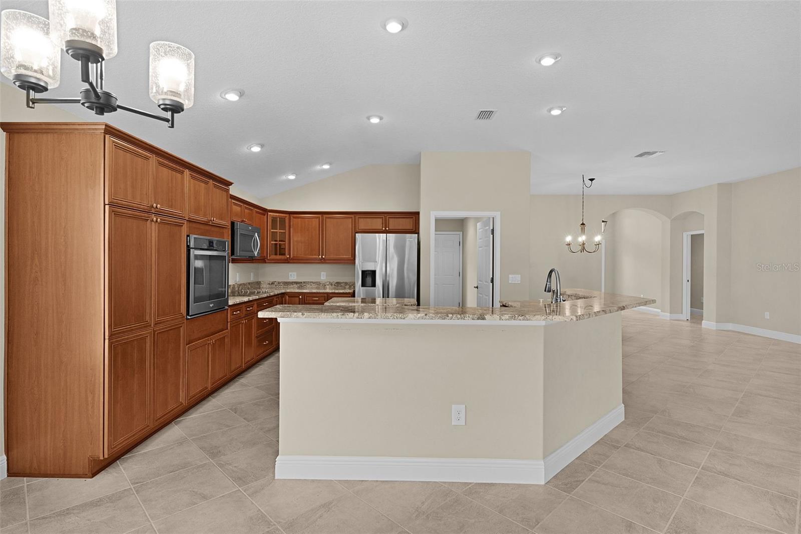 Uma ou mais fotos foram virtualmente encenadas. Bem-vindo a este deslumbrante modelo Ivy localizado na desejável vila de Lake Deaton, situado em um beco sem saída tranquilo, a aproximadamente 3 km da Praça da Cidade de Brownwood. A partir do momento em que você chega, a casa impressiona pela sua entrada convidativa e pela elegante porta frontal de vidro com chumbo. Entre para descobrir um layout espaçoso com 4 quartos e 2 banheiros, projetado para oferecer conforto e estilo. Observe os cantos arredondados em toda a casa; um adorável recurso de última geração que certamente impressionará. Há luz natural por toda parte, dando à casa um brilho aconchegante! Esta casa era uma segunda casa pouco usada (o uso total foi de 15 meses). O coração da casa é a cozinha, com bancadas de granito, eletrodomésticos de aço inoxidável, ilha separada, forno embutido e fogão elétrico - uma configuração perfeita para qualquer chef caseiro. Uma grande copa e uma sala de jantar formal oferecem muito espaço para refeições casuais ou entretenimento de convidados. Em todas as áreas de estar, você encontrará piso de cerâmica, enquanto os quartos apresentam carpetes novos para maior calor e conforto. A suíte master é um verdadeiro retiro, destacada por uma rara banheira de jardim, pias duplas de granito e uma área de banho cuidadosamente projetada - um luxo incomum em The Villages. Relaxe e descontraia-se na ampla varanda com tela, com amplo espaço para adicionar uma piscina, se desejar. As características adicionais incluem uma garagem estendida para 2 carros, além de uma garagem para carrinhos de golfe, oferecendo muito espaço de armazenamento e conveniência. Lake Deaton é um dos locais mais procurados de The Villages, situado ao norte da Highway 44 e perto da Brownwood Paddock Square, onde você poderá desfrutar de compras, restaurantes e entretenimento noturno. Esta casa combina elegância, espaço e localização - uma oportunidade excepcional para aproveitar ao máximo o estilo de vida do The Villages.