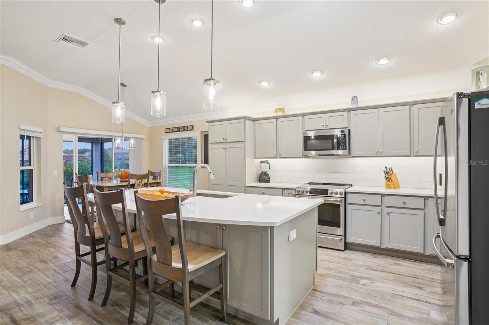 Este luxuoso modelo Iris de designer oferece três quartos e dois banheiros. A partir do momento em que você entra, você é recebido por uma entrada espaçosa com armário de casacos para os hóspedes. O piso de cerâmica adorna as principais áreas de estar e banheiros com acabamento aconchegante e neutro em madeira, enquanto os quartos apresentam carpete para maior conforto. A cozinha é uma delícia para o chef, contando com armários com gavetas extraíveis, armário inferior e iluminação indireta, além de uma grande ilha com pia. Cada quarto está equipado com um sistema de armários personalizado. O terceiro quarto serve como um confortável retiro para os hóspedes. A suíte principal é um verdadeiro santuário com teto de bandeja e janelas com vista para o sereno espaço verde. Seu banheiro oferece box amplo de azulejos e um notável armário convertido, projetado como um camarim luxuoso com penteadeira, guarda-sapatos, armários e gavetas forradas para joias. Esta casa é enriquecida com atualizações inteligentes e práticas, incluindo um mastro iluminado, calhas, cerca invisível para animais de estimação com porta para cães, amaciante de água Kinetico, protetor contra surtos para toda a casa, pára-raios e janelas escuras por toda parte. A luz natural entra através de três tubos solares, iluminando a cozinha, o banheiro de hóspedes e o armário principal. A garagem é tão funcional quanto refinada, com armários personalizados, pia, portas isoladas, escada suspensa de acesso a um sótão isolado com ventilador movido a energia solar e piso brilhante revestido de epóxi. Ao ar livre, o terreno com paisagismo profissional apresenta o gramado de Santo Agostinho com bordas de concreto e pedras de rio, complementado por uma variedade de árvores frutíferas - pêssego, limão ponderosa, laranja, amoreira, abacate e figo - bem como plantas com flores vibrantes, incluindo gardênia, camélia, lantana, plumeria, hibisco, escova de garrafa e ave do paraíso. Uma videira mandevilla saúda você na entrada com uma cascata de flores. A casa está voltada para um espaço verde tranquilo com uma ciclovia e uma trilha para caminhada que leva a trilhas sombreadas e lagoas tranquilas, perfeitas para passeios tranquilos e relaxamento. Sua localização é ideal - a poucos passos do Aviary Recreation Center com piscina familiar e a poucos minutos do Ezell Recreation Center, que oferece academia, piscina esportiva, bocha e pickleball. Nas proximidades, você também encontrará o Sawgrass Entertainment Market, com restaurantes e entretenimento ao vivo, além de acesso conveniente à Brownwood Square e à emergente Eastport Square, que contará com ainda mais opções de compras, restaurantes e entretenimento. O preço foi reduzido, os armários de escritório do terceiro quarto foram removidos, tornando-se um quarto e não um escritório.