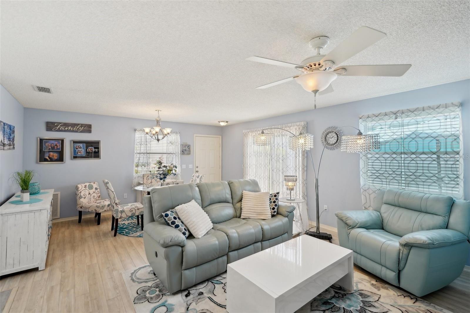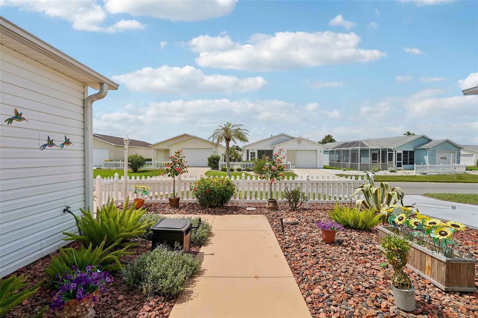 Novo sistema 2025 Trane HVAC com garantia de 10 anos.2015 telhado. Bond pago integralmente! Piso laminado impressionante em toda a casa! Uma localização privilegiada a poucos minutos de Sumter Landing e Spanish Springs para entretenimento, jantar, compras e curtir música ao vivo nas quadrados. As comodidades próximas incluem piscina e restaurante Tierra del Sol, juntamente com vários campos de golfe! Esta casa de 2 camas e 2 banheiros possui um layout aberto com jantar formal, sala de estar e cozinha com um bar de refeições. A cozinha grande possui armários extras, ótimo espaço de bancada e despensas com gavetas deslizantes para facilitar o acesso. O grande quarto principal tem uma enorme caminhada no armário e um banheiro com uma caminhada moderna no chuveiro com assentos atualizados. O segundo quarto tem uma mesa embutida com armários acima, além de um grande armário. O banheiro adjacente possui uma combinação de banheira e chuveiro que está em condição primitiva. As portas de vidro deslizantes na sala o levam a um grande pátio, que é privado devido ao quintal mantido, paisagismo maduro e sistema de irrigação de trabalho. As decorações do quintal combinam com o proprietário. A garagem se encaixa confortavelmente em um carro e um carrinho de golfe, tem uma pia de utilidade, lavadora e secadora, muitos armários embutidos para armazenamento e um sótão com uma escada para baixo. Ideal para investimento, com uma folha de análise de aluguel disponível e serviços de gerenciamento de propriedades oferecidos. Esta casa atualizada e convenientemente localizada não vai durar muito, então agende sua exibição hoje!