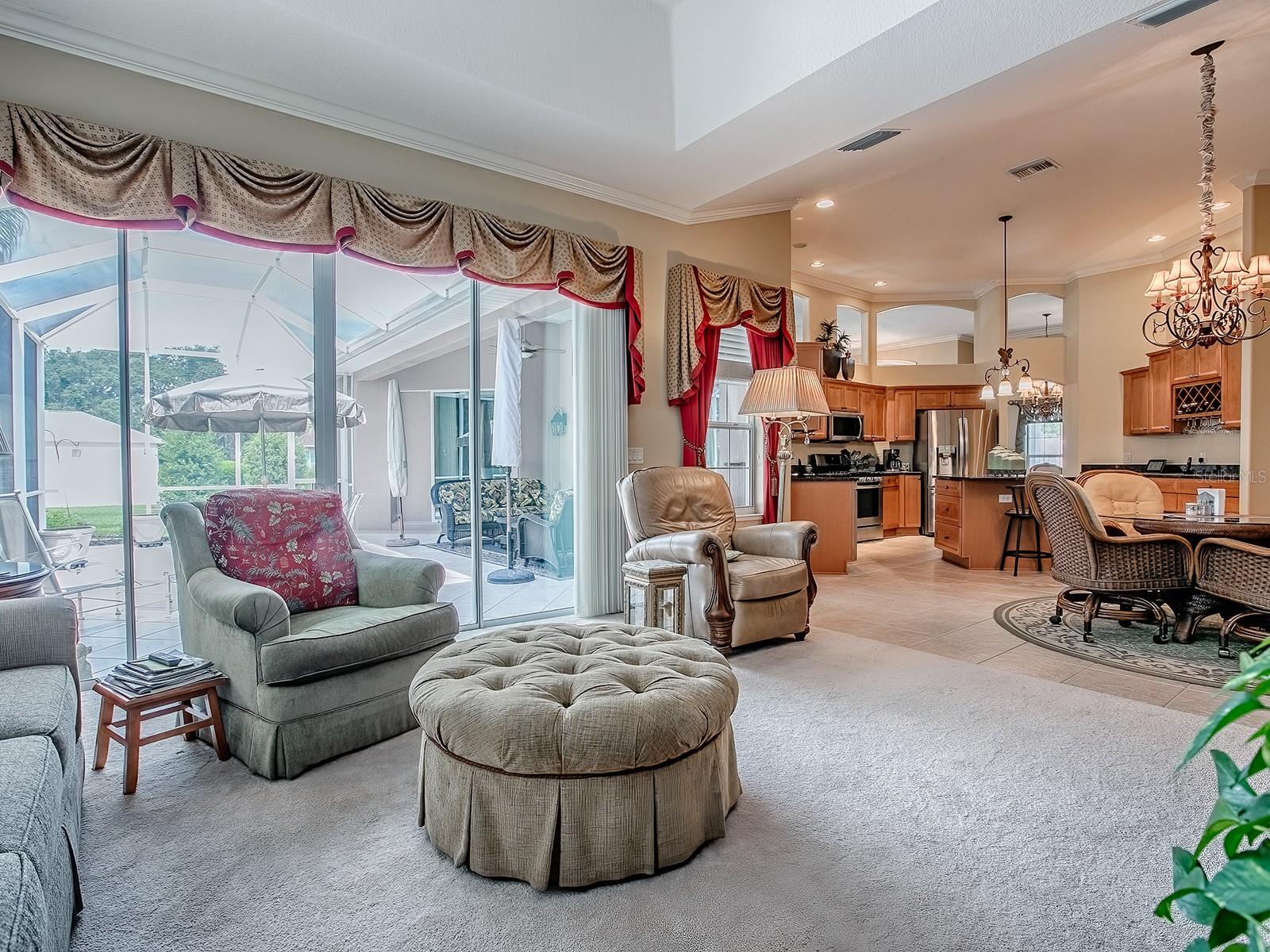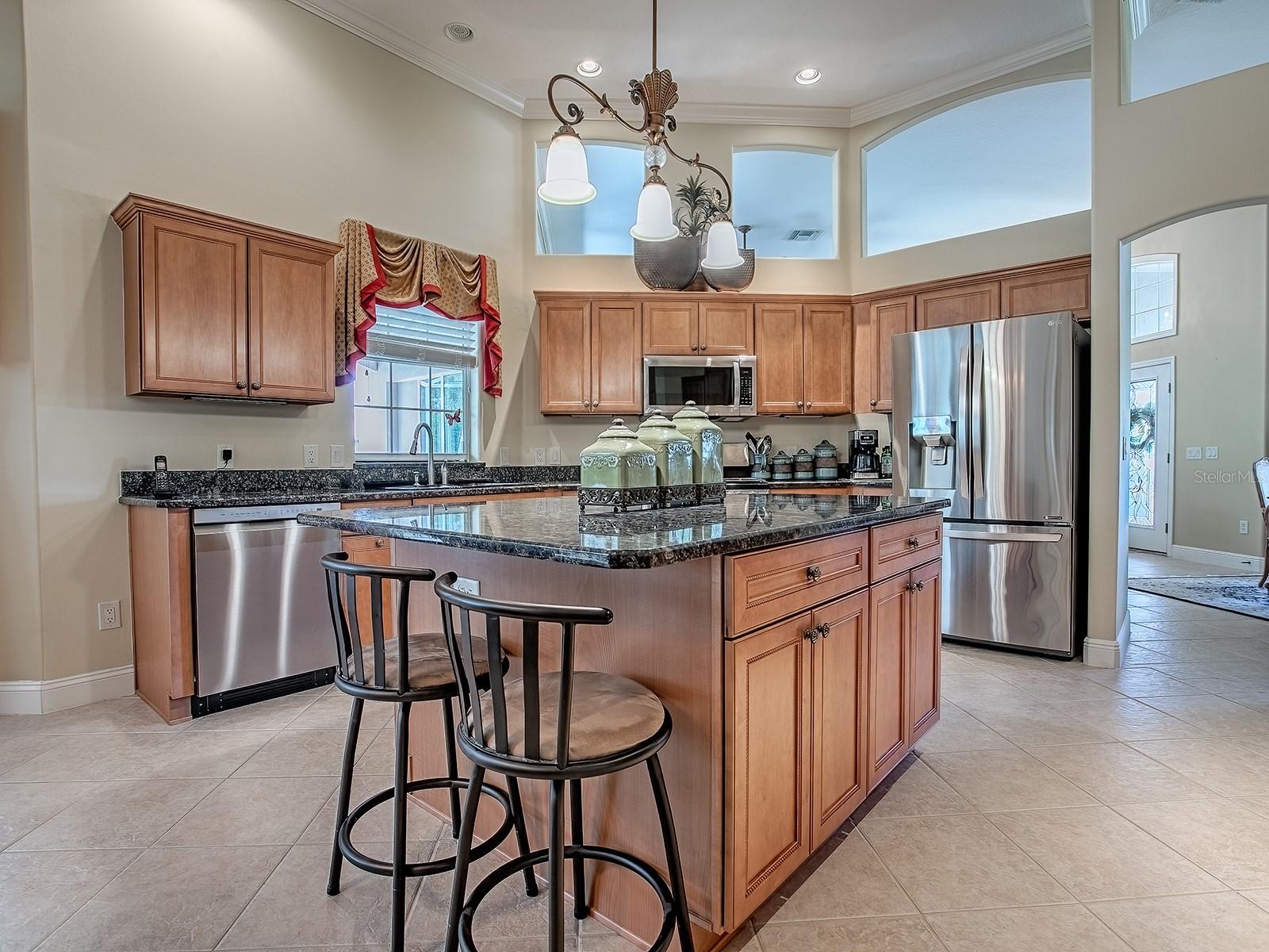 ADORÁVEL PERSONALIZADO 4 QUARTOS E 2 BANHEIROS ST. Casa SIMON PREMIER em GRANDE LOTE DE CANTO em CUL-DE-SAC com GARAGEM AMPLIADA PARA 2 CARROS + 2 CARRINHOS DE GOLFE LOCALIZADA na VILA de BRIDGEPORT NO LAKE SUMTER, bem na esquina do Lago Sumter Landing! Excelente apelo de meio-fio com paisagismo exuberante ao redor de toda a casa, uma grande varanda frontal e lindas portas dianteiras de vidro duplo com chumbo. Ao entrar, você encontrará piso de CERÂMICA no hall de entrada, sala de estar formal, sala de jantar, cozinha, área de jantar casual, lavanderia e corredores com atraente MADEIRA na sala bônus e no quarto principal. O TELHADO MAIS NOVO e o HVAC tornam esta linda casa ainda mais atraente! A área de estar principal, cozinha e sala familiar oferecem MOLDURA DE COROA e tratamentos de janela personalizados. A espaçosa cozinha tem ARMÁRIOS DE CEREJA claros, BANCADAS DE GRANITO, eletrodomésticos INOX, uma ilha, uma grande DESPENSA e uma passagem para a área de varanda e gaiola - tão conveniente para grelhar e se divertir. A sala de estar formal e a sala de família abrem com portas de vidro deslizantes para a varanda e para a área de estar ao ar livre. Se desejar, há muito espaço para piscina e muita PRIVACIDADE neste amplo terreno de esquina. O 4º quarto de 18'x16' está sendo usado para uma sala de artesanato e tem um armário muito grande e pode ser usado como escritório, escritório, etc. Esta planta dividida oferece a você e seus convidados muita privacidade com a suíte principal de um lado da casa e o convidado do outro. A suíte principal possui sancas, teto falso, 2 WALK-IN CLOSETS com BUILT-INS customizados, portas de correr de vidro que se abrem para a varanda e BANHEIRA NA SUÍTE! O banheiro oferece uma grande banheira de imersão, 2 pias, bancadas de GRANITO, chuveiro de azulejos e banheiro separado. Os quartos possuem carpete e armários grandes; o banheiro de hóspedes tem banheira/chuveiro e bancadas de granito. A lavanderia tem muito espaço extra no armário, iluminação sob o armário, uma pia e lavadora FRONT LOAD e NOVA SECADORA BOSCH FRONT LOAD que combinam com a casa. A garagem OVERSIZED para 2 carros tem uma grande extensão para permitir espaço para 2 carrinhos de golfe. Esta é uma casa LINDA numa excelente localização com casas rodeadas pela natureza e belos campos de golfe! Em poucos minutos você pode desfrutar de entretenimento, restaurantes, compras no LAKE SUMTER LANDING, vários CENTROS DE RECREAÇÃO e Arnold Palmer Legends Country Club com culinária requintada e CAMPO DE GOLFE DO CAMPEONATO. VENHA CONHECER TUDO QUE ESTA CASA E ZONA TEM PARA OFERECER!