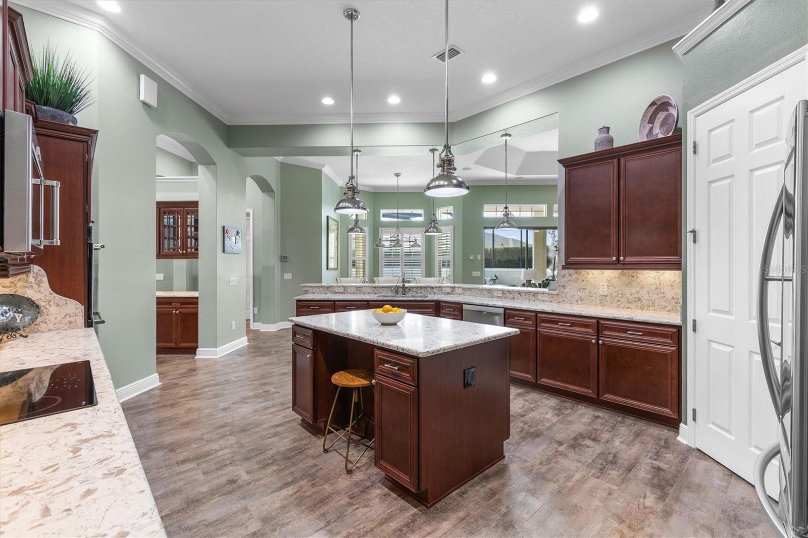 ESPETACULAR CASA PREMIER GRANDVIEW DE 4 QUARTOS E 2,5 BANHOS COM ENTRADA LATERAL 1196 pés quadrados GARAGEM PARA 3 CARROS + GARAGEM PARA CARRINHO DE GOLFE TANDEM, PISCINA INCRÍVEL COM CACHOEIRAS, BANHEIRA DE HIDROMASSAGEM, COZINHA DE VERÃO + ESCADAS MAJIC + ELEVADOR DE SÓTÃO situado no BAIRRO PREMIER de OSCEOLA HILLS AT PRESERVA DA ÁGUIA AUMENTANDO! A adorável apelação do meio-fio saúda você com EXTERIOR + LUMINÁRIAS recentemente pintadas, PAISAGEM ATUALIZADA + CURBING, sistema de sprinklers RACHIO, linda PORTA DIANTEIRA DE VIDRO COM CHUMBO com JANELA DE POPA que leva você a mais de 3.500 pés quadrados de espaço luxuoso com uma mistura perfeita de elegância e conforto. Esta planta baixa tem 2 ÁREAS DE ESTAR projetadas para relaxamento e entretenimento com TETOS de 12 pés + muitos recursos, incluindo LVP, PERSIANAS DE PLANTAÇÃO, MOLDURA DE COROA, BAR MOLHADO equipado com REFRIGERADOR DE BEBIDAS, PIA e RACK DE VINHO EMBUTIDO. A cozinha inclui bancadas de QUARTZO com BACKSPLASH DE QUARTZO + TOUCHLESS COZINHA TOQUE, ILHA grande com armários, eletrodomésticos de aço inoxidável MAIS NOVOS, geladeira LG "INSTAVIEW", iluminação SOB ARMÁRIO, FORNOS DE PAREDE DUPLA, iluminação pendente, gavetas extraíveis nos armários e DESPENSA WALK-IN com luz automática. O MEIO BANHO fica ao lado da cozinha e também tem uma porta que leva até a PISCINA! Saia para desfrutar do seu próprio OÁSIS PRIVADO. O amplo espaço ao ar livre tem um paisagismo meticulosamente projetado ao redor da casa, tornando-a ideal para PRIVACIDADE e entretenimento, completa com PISCINA DE ÁGUA SALGADA (o deck da piscina foi pintado recentemente), BANHEIRA DE HIDROMASSAGEM + uma área de COZINHA DE VERÃO coberta perfeita para entretenimento. A espaçosa suíte principal é um retiro privado com 2 grandes WALK-IN CLOSETS com luzes automáticas, chuveiro de azulejos ROMANO, pias SPLIT e uma porta com inserções cegas que dá para a PISCINA. Os 3 quartos de hóspedes ficam no lado oposto da casa. O 2º quarto de hóspedes está actualmente a ser utilizado como escritório, completo com COFRE NO CHÃO no armário. Os quartos 3 e 4 têm armários e o quarto 4 tem porta com persianas com acesso direto à zona da piscina. Se precisa de mais ESPAÇO DE GARAGEM + ESPAÇO DE SÓTÃO você encontrou! Grande é um eufemismo com esta garagem de 1.196 pés quadrados com piso EPÓXI + ARMÁRIOS DE ARMAZENAMENTO e as incríveis ESCADAS MAJIC + ELEVADOR DE SÓTÃO MAJIC. Também está incluída uma geladeira de garagem. Existem até venezianas na garagem. Recursos adicionais: Lavadora/secadora incluída, NOVA bomba de piscina + aquecedor, nova porta de vidro deslizante, novas luzes de piscina, churrasqueira externa limpa profissionalmente, sensores de luz de ocupação e sistema de amaciante de água. A vila de Osceola Hills em Soaring Eagle Preserve fica ao longo da margem leste do Lago Deaton, cercada pela área de vida selvagem que dá nome a este bairro aconchegante. O Centro Recreativo Burnsed Village está convenientemente localizado do outro lado da rua, oferecendo uma piscina e instalações recreativas modernas. Você também pode vislumbrar o sol nascendo no Tequesta Golf Course, parte do Belle Glade Golf & Country Club de 27 buracos que fica logo adiante. A poucos minutos ao sul, você pode desfrutar de tudo o que o Centro Recreativo Regional de Rohan tem a oferecer, bem como compras de supermercado, bancos, farmácia nas proximidades e aquelas conveniências que tornam a vida cotidiana muito fácil! Não se esqueça de assistir ao vídeo e ligar para agendar sua MOSTRA PRIVADA HOJE e experimentar o que há de melhor em The Villages!