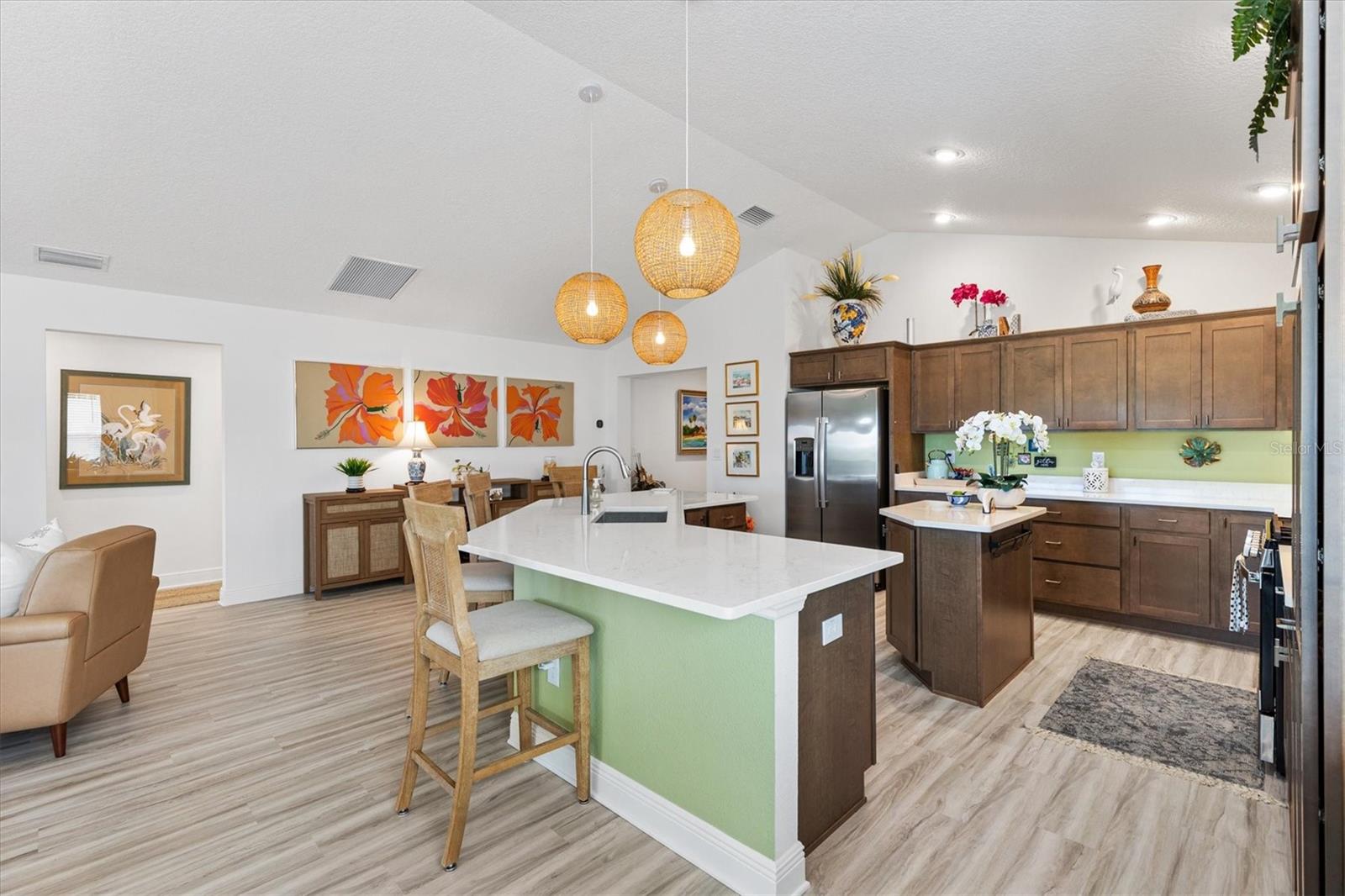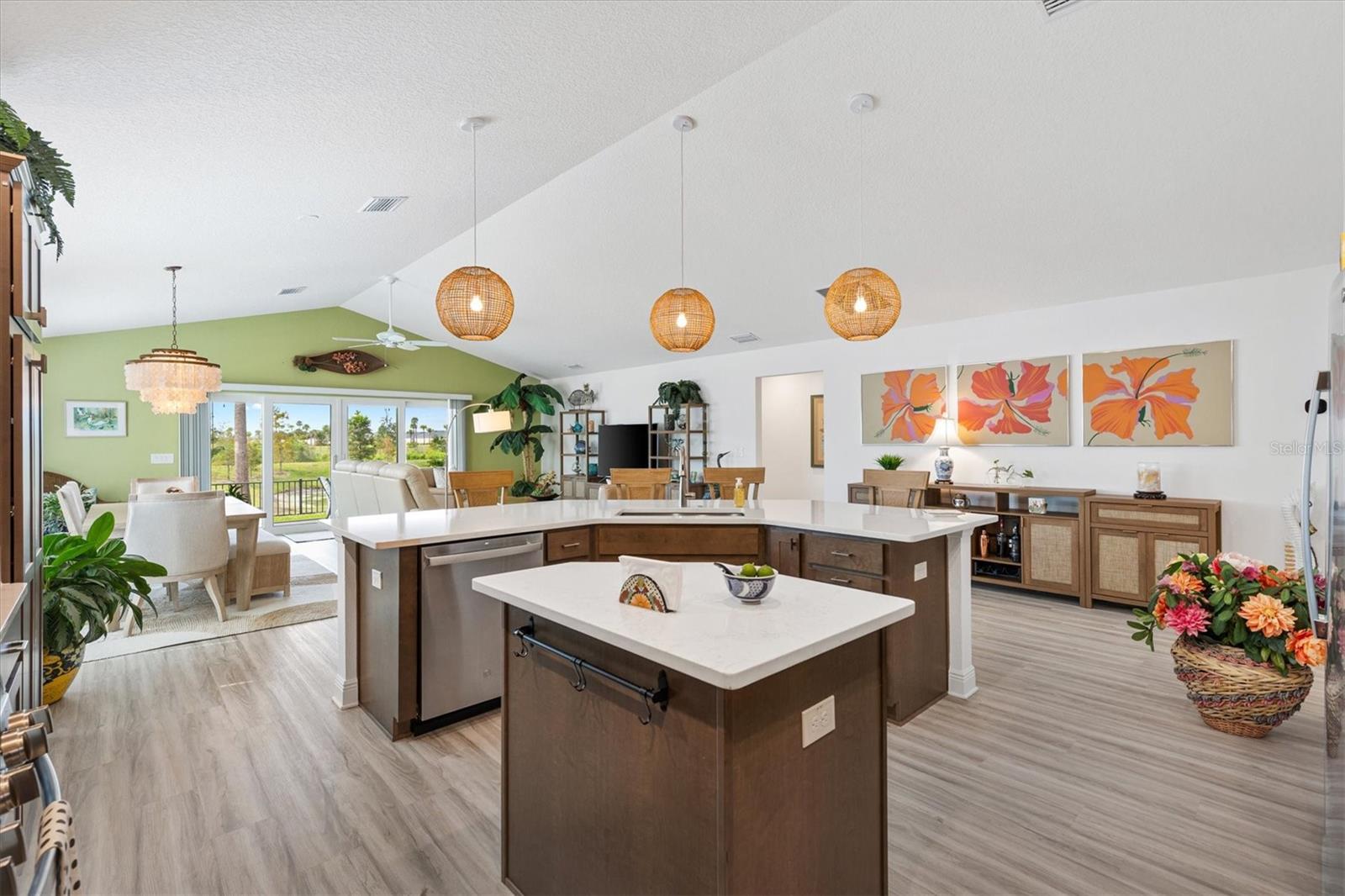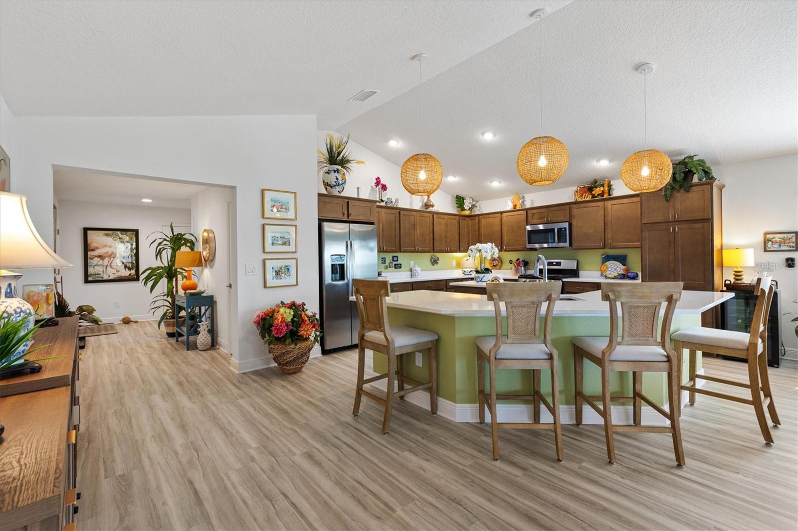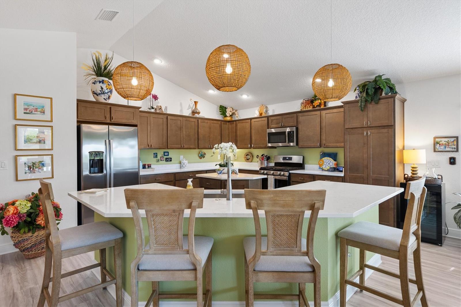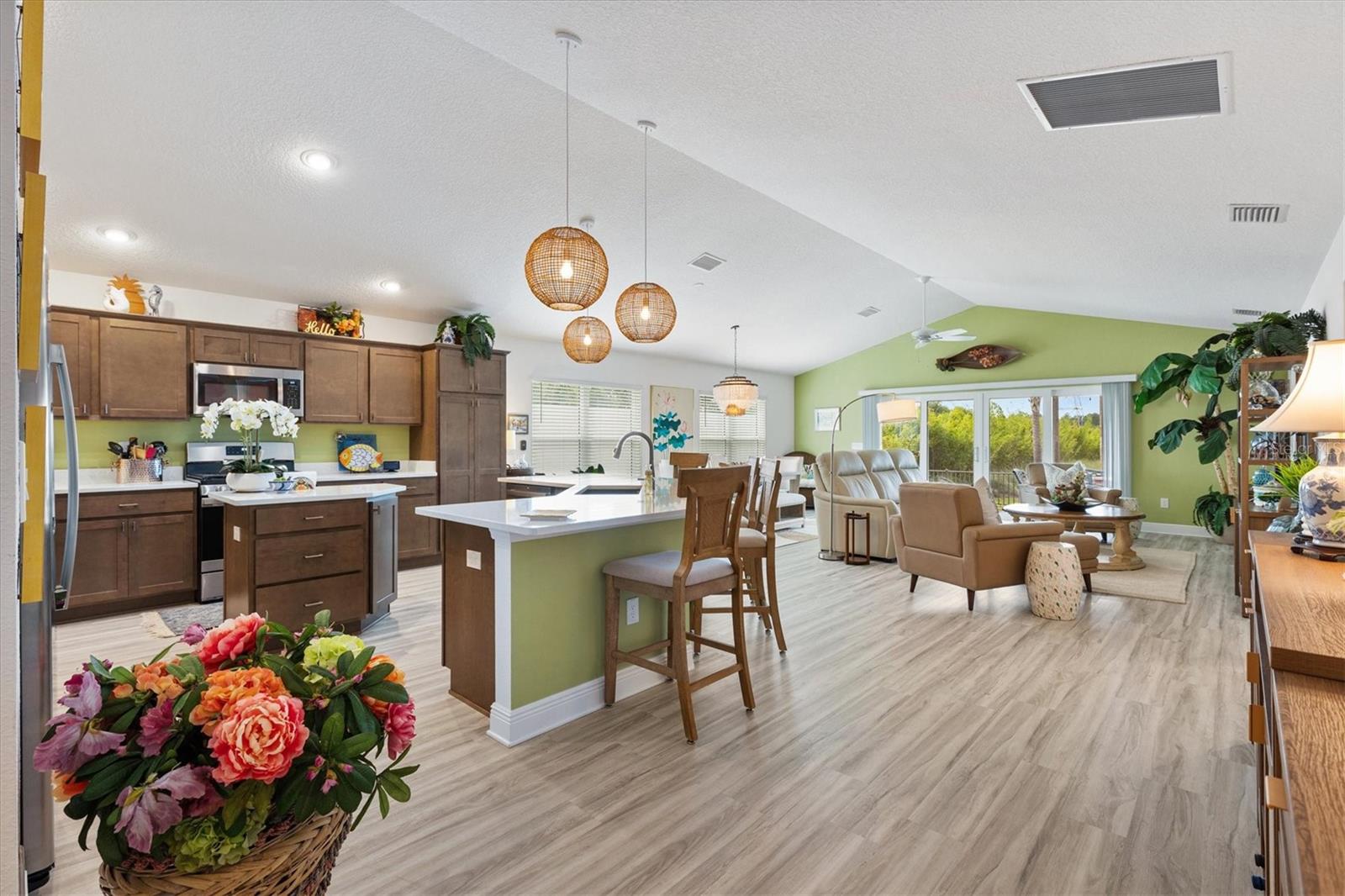 Villa na vila de Lake Denham/Sherman Villas Bem -vindo a esta construção de 2023 - 3/2/2.5 - Winslow 5 -C = Modelo 1970 SF Propriedade, esta é uma unidade final na lagoa, ninguém Atrás de você, mas uma vista relaxante/tranquila. Áreas de estar espaçosas: uma sala de estar e jantar em plano aberto com grandes janelas que inundam o espaço com luz natural. Apresentando pisos de vinil de tábua de luxo, 4 controles deslizantes de vidro que levam ao grande lanai, com vista para a água/lago. Cozinha moderna: Totalmente equipada com alcance de cozinha a gás, microondas, 2 ilhas, pia grande de fazenda, armários amplos, proporcionando gavetas macias e grandes de armazenamento e uma barra de café da manhã, ideal para refeições casuais e convidados divertidos. Quartos: quartos de tamanho generoso com armários embutidos, proporcionando muito armazenamento. Suíte primária com teto de bandeja, com vista para a água/lagoa e paisagismo exuberante acentuado pela placa náutica e na parede da cabeceira da cabeceira. Bathrooms: elegante, com acessórios e acabamentos contemporâneos para um toque de luxo. O banho primário apresenta uma caminhada em torno de um chuveiro com bancada embutida, bancada de pedra com vaidades duplas e espelhos elegantemente emoldurados. Closet privado de água e grande closet com organização/unidade de armazenamento incorporada. O segundo banho espaçoso possui teto alto, combinação de banheira/chuveiro com vaidade única com bancada de pedra e armário de linho. Lavanderia/sala de utilidade situada entre quartos com uma parede de telhado de sotaque e pia de lavagem de utilidade atualizada? Vanidade. Conexões para secador a gás/elétrico. (Lavadora e secadora não transmitem, os vendedores os levam) Espaços ao ar livre: rastreados grandes em Lanai e quintal particular com áreas de paisagem tropical exuberante. Pátio lateral tem passarela de concreto com jardins levando ao portão. Estacionamento: Inclui uma garagem de 2,5 grandes dimensões de garagem/carrinho de golfe (679 pés quadrados) e amplo estacionamento para os hóspedes. Esta é uma unidade final no final da rua, então traga todos os amigos/carrinhos de golfe. Localizado perto de Sawgrass Mill Square com restaurantes, vida noturna, jantar casual junto com golfe, bola de picles, shuffleboard, parques de centros de recreação, shopping centers, e transporte público. Fácil acesso às principais rodovias para uma rápida viagem para o centro e circundante áreas. Esta propriedade está pronta para mudar. Não perca a oportunidade de tornar esta casa maravilhosa sua Novo endereço!