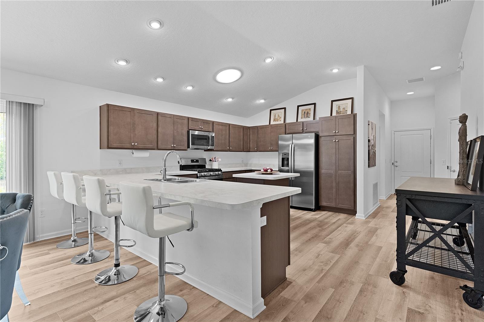 Bem -vindo à sua casa de sonho nas aldeias, FL, a maior comunidade de mais de 55 anos do mundo. Esta vila maravilhosamente mantida do Moonstone Patio está convenientemente localizada na altamente desejável vila de Richmond. Construído em 2022, esta espaçosa vila do pátio tem tetos altos que atraem seus olhos para a frente para o espaço principal. A paleta neutra e o piso lindo são a tela perfeita para você se imaginar vivendo sua melhor vida. A cozinha possui um novo tubo solar de 24 polegadas, permitindo que a luz inundasse o espaço, mantendo -a leve e brilhante. Aproveite o seu café da manhã ou desfrute de visitar os vizinhos da varanda da frente. Situado em um grande lote de canto, o paisagismo exuberante oferece grande apelo ao meio -fio e privacidade adicional. A poucos minutos da Brownwood Paddock Square coloca você no coração da ação, perto de entretenimento animado todas as noites, refeições e compras. Com proximidade com o Okahumpka Recreation Center, Richmond Pitch & Putt, The Water Lily Bridge, The Hogeye Reserve e o sempre popular Edna's On the Green a uma curta viagem de distância via carrinho de golfe, você estará imerso em opções, atividades e diversão! Esta casa está sendo oferecida como curva para que você possa começar a viver o estilo de vida fácil e emocionante com o qual o sonhou. O carrinho de golfe está disponível separadamente.