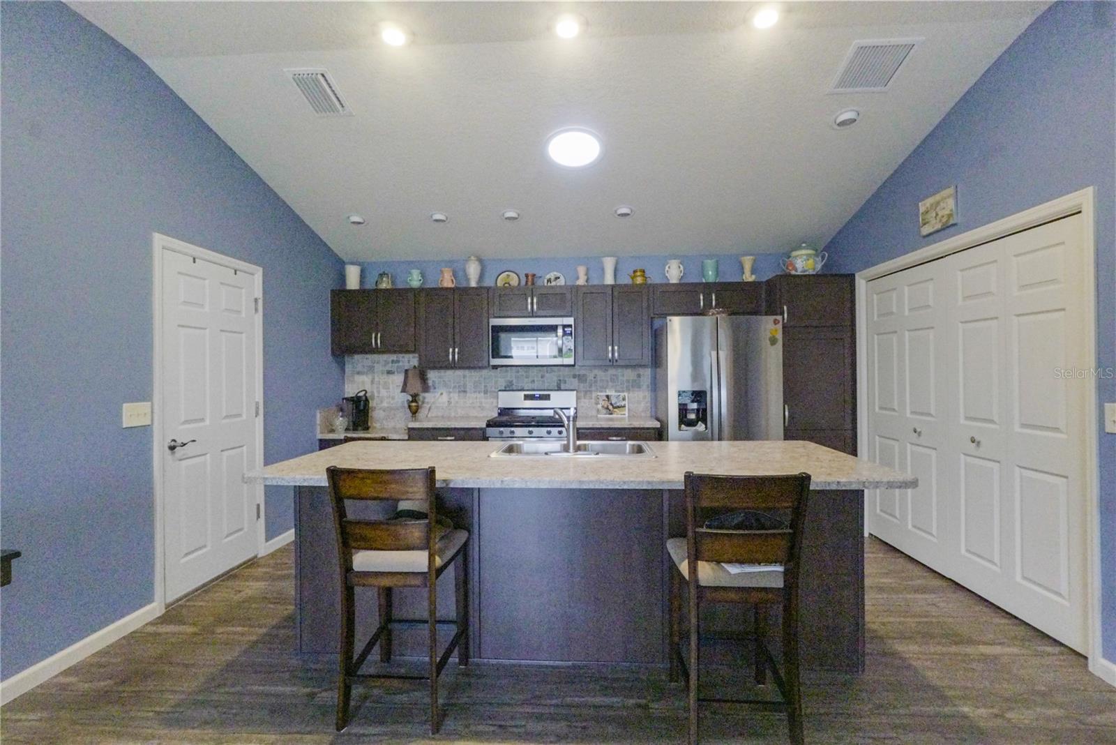 Bem -vindo para casa nesta impressionante villa do Patio do Topázio! Situado em um lote de canto desejável, esta vila está cheia de luz natural e oferece uma sensação brilhante e arejada graças aos tetos de volume por toda parte. A cozinha se destaca com armários de cereja ricos, utensílios de aço inoxidável, incluindo uma geladeira de porta francesa e uma linha de gás, além de um tubo solar que adiciona luz ainda mais natural. A casa possui pisos de tábuas de vinil de luxo por toda parte - sem carpete - por beleza e fácil manutenção. Uma das raras características deste modelo é a garagem completa de 2 carros, proporcionando amplo espaço para veículos, carrinhos de golfe e armazenamento. As atualizações adicionais incluem um aquecedor de água quente sem tanques para eficiência e conveniência. Esta villa está idealmente posicionada entre a Brownwood Paddock Square e a futura Eastport Square, oferecendo fácil acesso a entretenimento, refeições e recreação. Você também está perto do Magnolia Plaza Shopping Center com Publix, Golf, Pools e todas as comodidades de estilo de vida pelas quais as aldeias são conhecidas. Não perca esta villa brilhante e convidativa - schedule sua exibição hoje!
