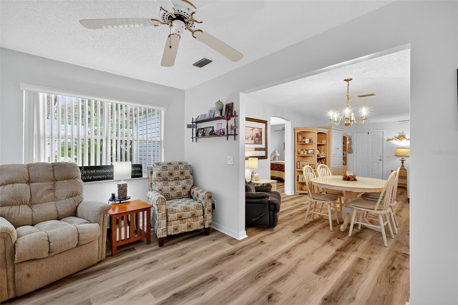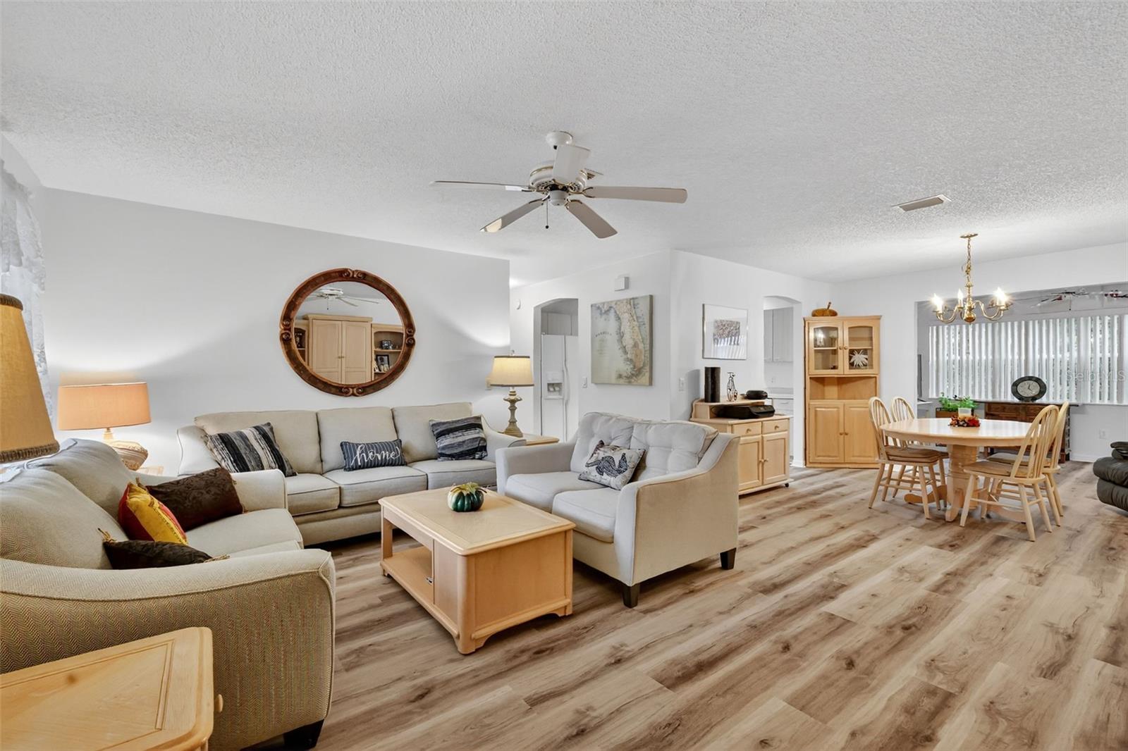 LINDO, CHAVE NA MÃO, CONCEITO ABERTO 2/2 Corpus Christi apresentando uma MARAVILHOSA SALA DE BÔNUS AÉREA e PAVER LANAI em um GRANDE LOTE DE CANTO na pitoresca vila de Mira Mesa! CONVENIENTEMENTE LOCALIZADO a apenas MINUTOS da Praça da Cidade de Spanish Springs e do Lago Sumter Landing. TÍTULO PAGO! Uma adorável varanda frontal, calçada e entrada de automóveis PINTADAS e paisagismo MADURO contribuem para o charme exterior desta casa INCRÍVEL! Entre na ESPAÇOSA PLANTA ABERTA de estar, jantar e cozinha apresentando piso de LUXO DE PRANCHA DE VINIL EM TODA e TRÊS TUBOS SOLARES para luz natural ABUNDANTE! A cozinha EAT-IN possui armários leves e uma área DINETTE de canto. Ao lado da sala de jantar há uma SALA DE BÔNUS MULTI-FUNCIONAL E AO AR, com uma infinidade de janelas. Esta SALA VERSÁTIL oferece o espaço ideal para um escritório, sala de mídia ou home office. Uma porta lateral, fora desta área, permite fácil acesso à LANAI adjacente com piso PAVER e persianas rolantes. Este FANTÁSTICO ESPAÇO AO AR LIVRE é cercado por um paisagismo exuberante e MADURO, oferecendo muita PRIVACIDADE - perfeito para relaxar tranquilamente ou receber familiares e amigos! Lá dentro, o quarto principal possui piso LVP e um generoso closet WALK-IN. Seu banheiro privativo possui armários BRANCOS com penteadeira, armário de LINHO e chuveiro WALK-IN. Uma planta dividida com um quarto adicional e um segundo banheiro garante uma ala de hóspedes PRIVADA. O quarto dois oferece piso LVP, janelas DUPLAS e armário embutido. O segundo banheiro possui uma penteadeira BRANCA, uma combinação de banheira e chuveiro de TILED e um armário de LINHO no corredor. A LAVANDERIA INTERIOR possui armários ADICIONAIS com DESPENSA embutida para armazenamento extra. Ele leva você à garagem para dois carros com piso PINTADO, armários, rack de armazenamento suspenso, ventilador de teto e MUITO espaço para estacionamento! NÃO PERCA A OPORTUNIDADE DE FAZER DESTA CASA INCRÍVEL SUA! A vila de Mira Mesa está convenientemente localizada entre Spanish Springs Town Square e Lake Sumter Landing; Perto do Tierra Del Sol Country Club e do campo de golfe profissional; Campo de Golfe Executivo Mira Mesa; Centro Recreativo Regional da Fazenda; Centro Recreativo Chula Vista; várias piscinas, golfe e picles; Hospital Regional das Aldeias; e 466 com muitas lojas, restaurantes, bancos, serviços médicos e muito mais! ASSISTA NOSSO VÍDEO PASSADO DESTA LINDA CASA CHAVE NA MÃO e ligue hoje mesmo para agendar sua exibição privada ou tour virtual!