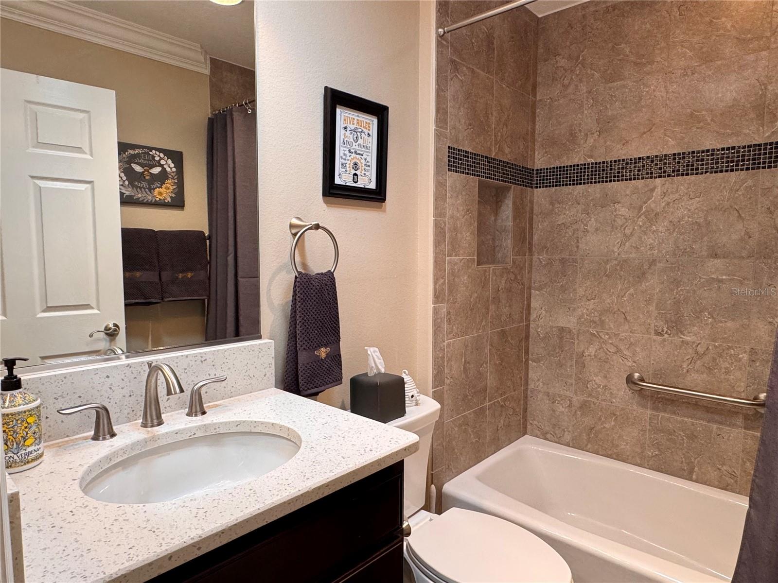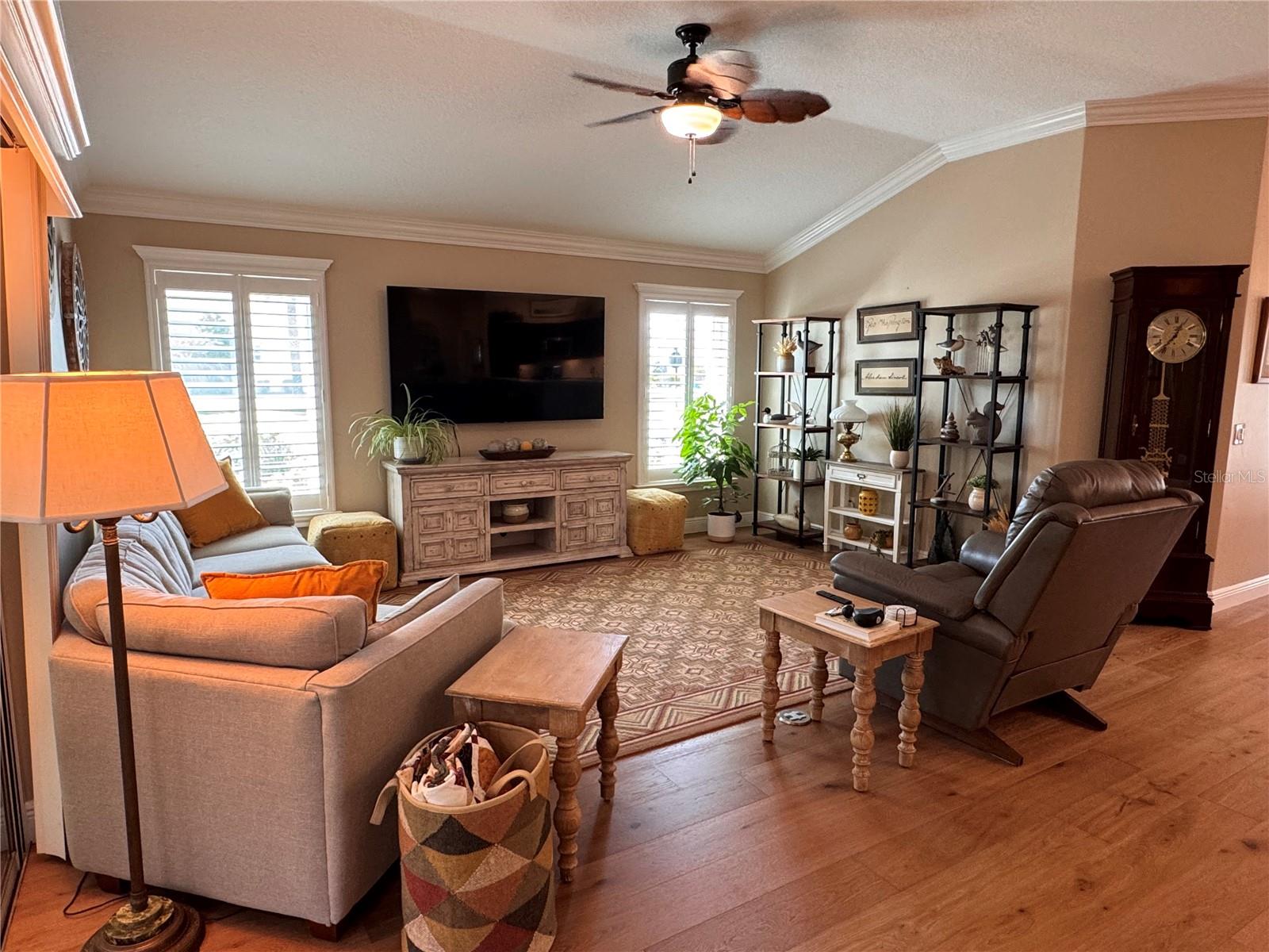 Prepare-se para ficar impressionado com este lindo modelo expandido de Gardenia, perfeitamente situado em um grande terreno de esquina em um dos locais mais convenientes do The Villages. Esta casa excepcional está repleta de atualizações e toques de design elegantes. A planta aberta é aprimorada pela largura expandida da casa, fazendo com que as salas de estar e de jantar pareçam ainda mais espaçosas e ideais para entretenimento. O piso de carvalho francês projetado flui pelas principais áreas de estar, enquanto os azulejos acrescentam praticidade e estilo aos espaços úmidos. A cozinha para refeições é realmente um empecilho, com armários escalonados com sancas, bancadas de quartzo, eletrodomésticos de aço inoxidável, uma grande ilha com iluminação pendente, um balcão para café da manhã e um recanto aconchegante para refeições casuais. A suíte do quarto principal é grande e convidativa, com uma bandeja no teto, armários duplos e um luxuoso banheiro privativo com duas pias, armazenamento abundante, chuveiro romano e água privativa armário. A suíte de hóspedes da frente oferece seu próprio banheiro privativo com chuveiro e um espaçoso closet - perfeito para visitar a família ou amigos. No final do corredor, fica o terceiro quarto com teto abobadado e banheiro de hóspedes completo. Esta área é privada por uma porta de correr e fica no lado oposto do quarto principal da casa. A Lanai é envidraçada com piso de cerâmica e uma unidade de ar condicionado split dedicada, criando um retiro confortável durante todo o ano. As portas deslizantes telescópicas da sala de estar abrem-se totalmente para este espaço, oferecendo um fluxo interno-externo contínuo. A lavanderia está convenientemente localizada fora da cozinha e possui armários e uma pia para maior funcionalidade. Recursos adicionais incluem persianas por toda parte, três tubos solares, janelas de popa em vários quartos e sancas profundas que dão à casa uma verdadeira sensação personalizada. A espaçosa garagem para dois carros e a garagem para carrinhos de golfe oferecem muito estacionamento e espaço de armazenamento. O exterior é igualmente impressionante, com paisagismo profissional que inclui bordas de pedra empilhadas, palmeiras exuberantes e uma fonte acolhedora na entrada - tudo criando um belo apelo ao meio-fio. A localização desta casa é ideal, perto de lojas, campos de golfe, recreação, piscinas e caixas de correio. Esta casa meticulosamente mantida e cuidadosamente atualizada oferece elegância, conforto e conveniência, tudo em um. Lanai tem 270 pés quadrados e está incluída na metragem quadrada total acabada. Agende sua exibição privada hoje - você ficará feliz por ter feito isso!