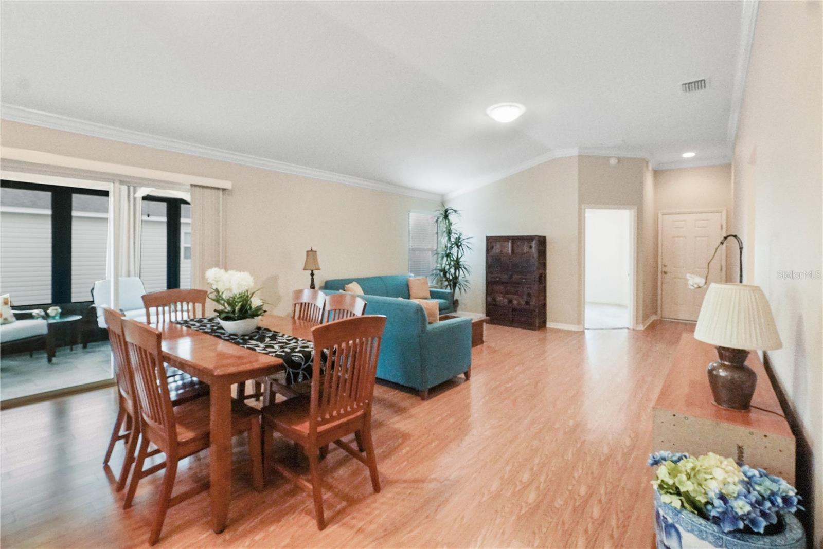 Bem-vindo a esta popular planta At Ease no The Village of Charlotte com 3 quartos, 2 banheiros e uma garagem para 2 carros. Projetada com um layout aberto e tetos volumosos, esta casa oferece uma sensação luminosa e espaçosa por toda parte. As principais áreas de estar - incluindo sala de estar, sala de jantar e cozinha - apresentam lindo piso laminado de madeira para fácil manutenção e estilo. Aproveite o conforto de uma varanda fechada e revestida de azulejos, voltada para a lateral da casa para total privacidade - perfeita para relaxar com seu café da manhã ou receber convidados. Atualizações cuidadosas incluem sancas, janelas Low E de painel duplo, porta frontal contra tempestades e calhas, agregando função e valor. O HVAC foi substituído em 2025. Localizada em uma área altamente desejável, esta casa fica a poucos minutos do Colony Shopping Plaza, do Neighborhood Wal-Mart e da Brownwood Paddock Square, oferecendo acesso conveniente a lojas, restaurantes e entretenimento. Não perca a chance de fazer deste modelo At Ease lindamente conservado sua próxima casa em The Villages!