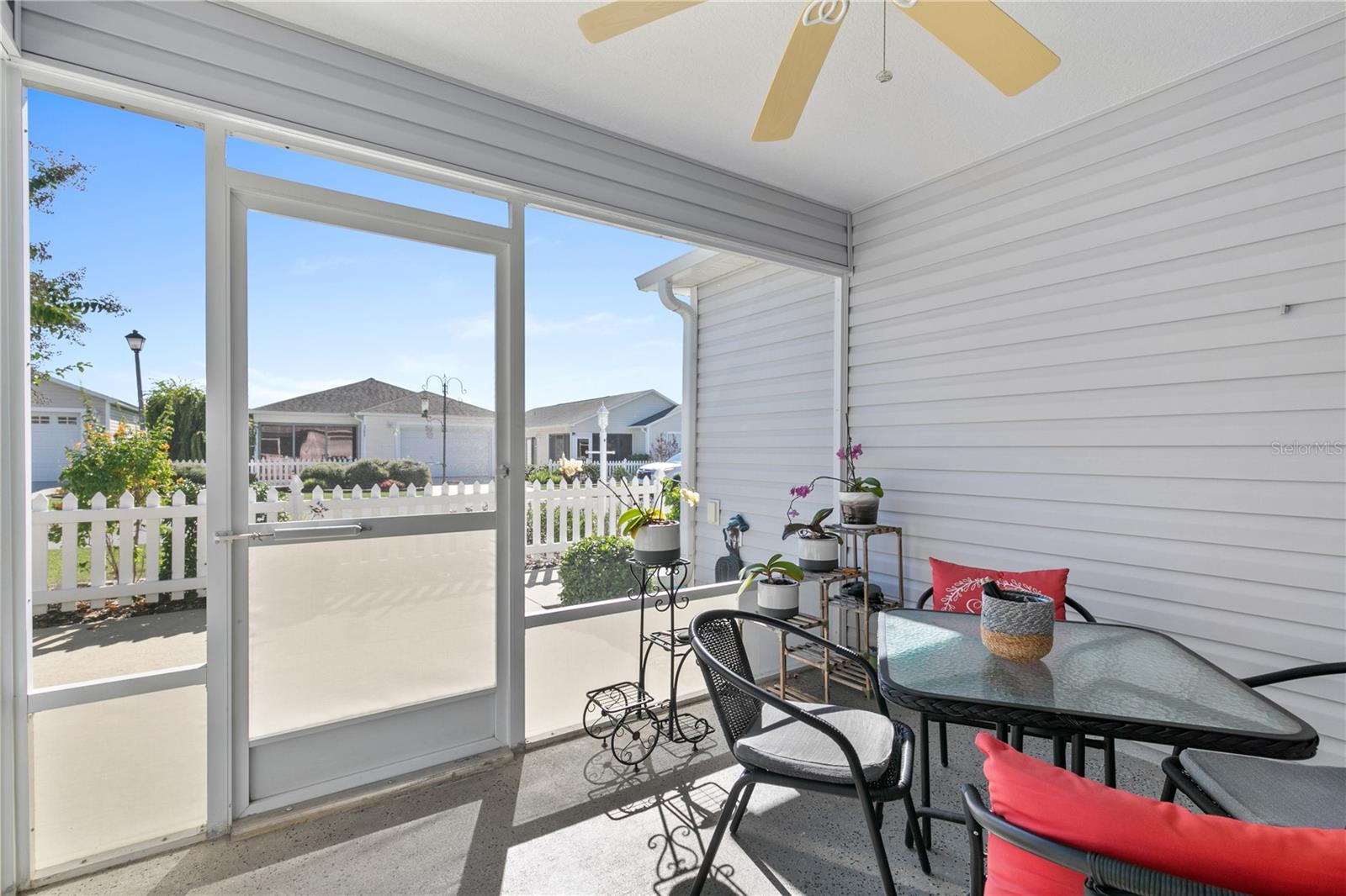 TURN KEY BOKEELIA VILLA NA VILA DE FERNANDINA - CARRINHO DE GOLFE INCLUÍDO! Entre e comece a viver o estilo de vida The Villages nesta Villa Pátio modelo Colony lindamente decorada, localizada na procurada Vila de Fernandina. Esta casa de 2 quartos e 2 banheiros é totalmente pronta para uso - tudo o que você precisa é fornecido, incluindo seu próprio carrinho de golfe! Configuração completa para aluguel de curto prazo ou fácil mudança. PAINÉIS SOLARES PARA CASA INTEIRA ECONOMIZAM NAS CONTAS DE ELÉTRICA. SEM CONTAS DE ELÉTRICA. Entre em uma planta aberta e iluminada, onde a cozinha tem vista para as áreas de jantar e de estar - perfeita para entreter ou relaxar com a família e amigos. A cozinha possui armários de madeira, bancadas espaçosas, um grande armário de despensa, balcão para café da manhã e uma conveniente lavanderia interna com lavadora e secadora. Da sala de estar, portas de vidro deslizantes abrem para um pátio lateral privado, ideal para refeições ao ar livre ou reuniões noturnas. Aproveite seu café da manhã na Lanai, apreciando o nascer do sol e a tranquila brisa da Flórida. A suíte principal oferece cama king-size, closet grande e banheiro privativo com chuveiro embutido. O quarto de hóspedes é igualmente convidativo, com cama queen size e fácil acesso ao segundo banheiro completo. Perfeitamente localizado entre Brownwood Paddock Square e Lake Sumter Landing, você terá fácil acesso a lojas, restaurantes e entretenimento noturno ao vivo. O Centro Recreativo Bradenton, nas proximidades, oferece natação, pickleball, tênis, bilhar e muito mais. Você também está cercado pelos Evans Prairie e Bonifay Country Clubs, todos a uma curta viagem de carrinho de golfe. A Vila Fernandina não é apenas um lugar para viver — é um estilo de vida de diversão, comunidade e recreação sem fim!