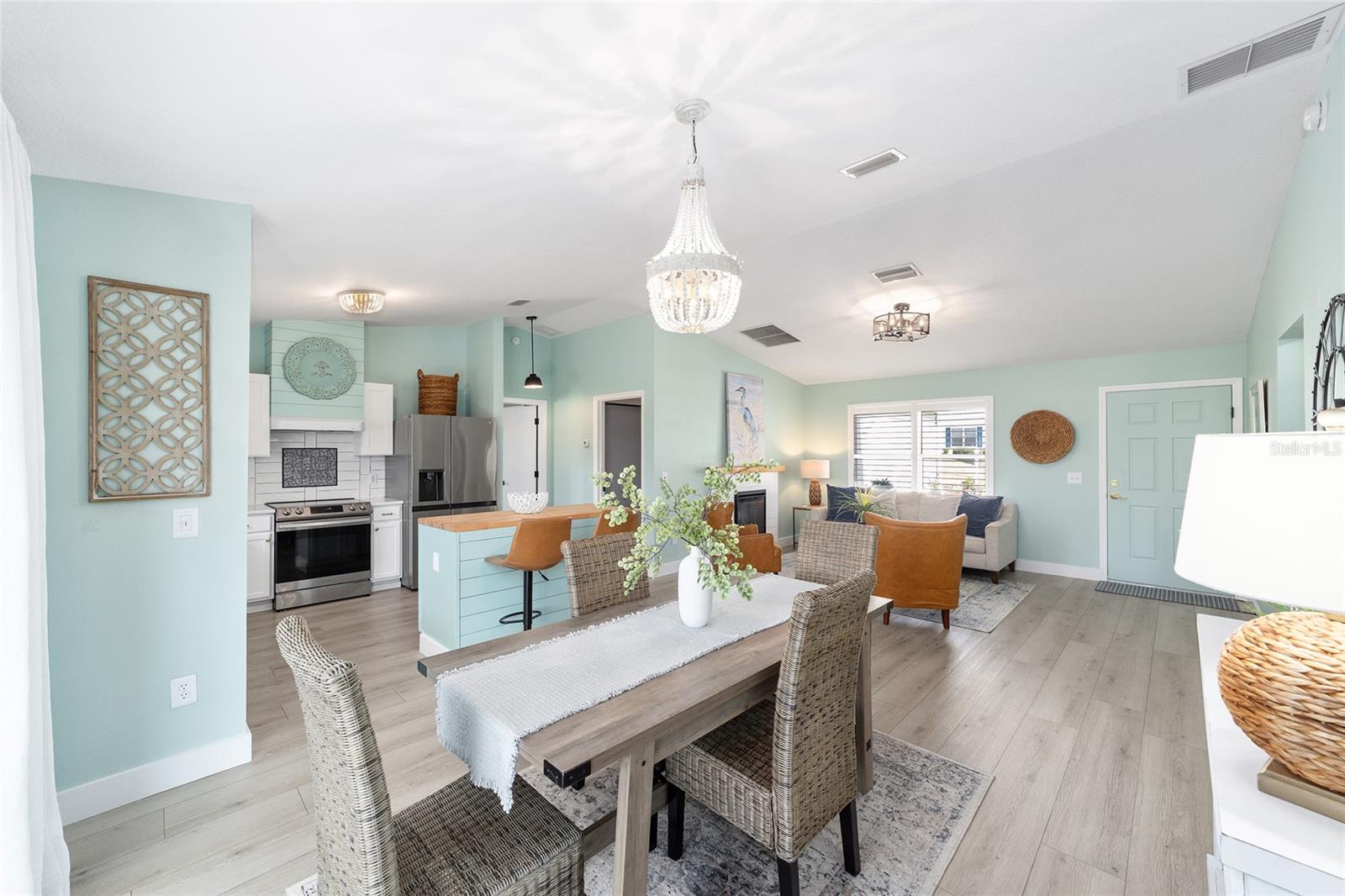 Amarillo de inspiração costeira em localização privilegiada de Amelia! Entre neste charmoso modelo Amarillo no altamente desejável Village of Amelia - perfeitamente posicionado a meio caminho entre Brownwood Paddock Square e Lake Sumter Landing, e a poucos minutos das mercearias, bancos, restaurantes e conveniências do dia a dia do Colony Plaza. TELHADO NOVO CHEGANDO! Esta casa de 3 QUARTOS e 2 BANHOS é iluminada e arejada com uma PLANTA ABERTA, LUZ NATURAL abundante e TETOS ABOBADOS com textura moderna (sem pipoca). O luxuoso piso de pranchas de vinil flui por toda parte, complementado por luminárias atualizadas para uma aparência limpa e elegante. A cozinha se destaca pelos eletrodomésticos em aço inoxidável, modernas prateleiras abertas, bancadas de quartzo, ILHA com tampo de BLOCO DE AÇOUGUEIRO, exaustor shiplap e BACKSPLASH DE TELHA. O QUARTO PRIMÁRIO oferece privacidade generosa, enquanto o BANHEIRO DA SUÍTE possui BANCADA DE GRANITO, PISO DE AZULEJO e CHUVEIRO DE BAIXA MANUTENÇÃO. Os hóspedes irão apreciar o banheiro ATUALIZADO com balcões de QUARTZO e detalhes em azulejos. Desfrute de LAVANDERIA INTERIOR na sala de lama, uma GARAGEM PARA 2 CARROS para armazenamento e veículos, e uma LANAI FECHADA COM TELA SEM “varandas de beijo” para maior PRIVACIDADE. Localizado a menos de um minuto de duas piscinas do bairro e a poucos passos do Centro de Recreação Familiar ODell, que oferece PICKLEBALL, TÊNIS, BOCHA, BILHAR, PISCINA FAMILIAR e muito mais. Uma casa lindamente decorada em um local imbatível - ideal para qualquer pessoa pronta para mergulhar no estilo de vida The Villages por um valor inteligente! Saldo baixo de títulos de $ 10.898. AC 2020, esquentador original.
