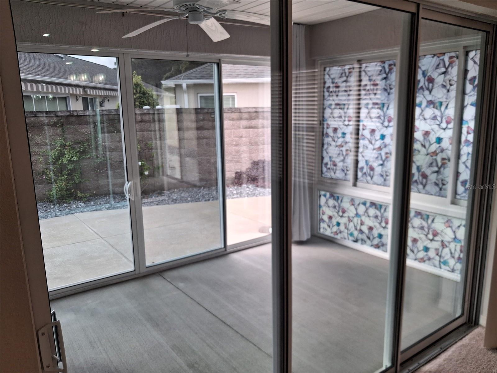 Pátio, calhas de chuva, calçada, portas deslizantes, armazenamento