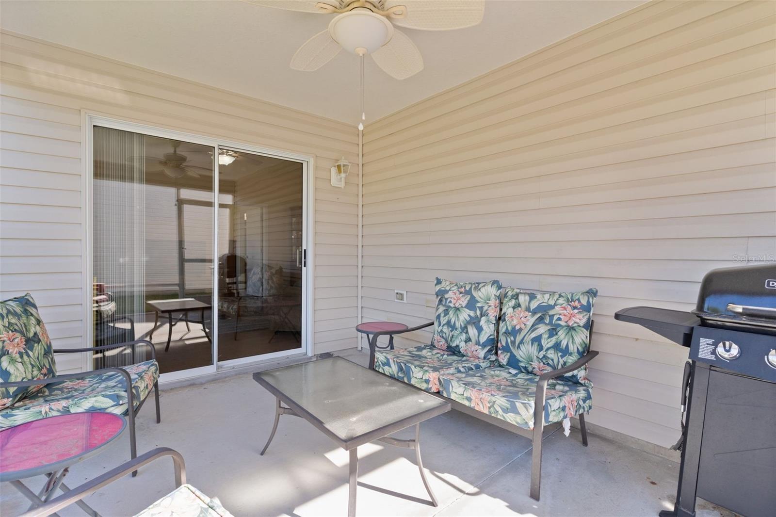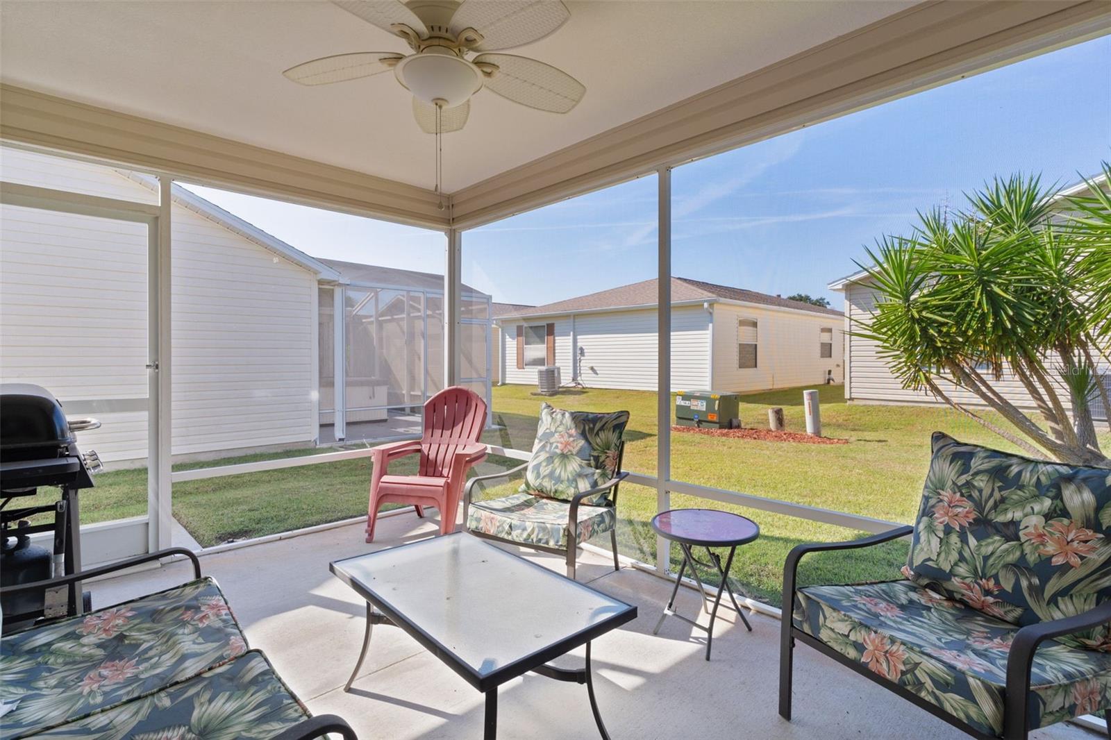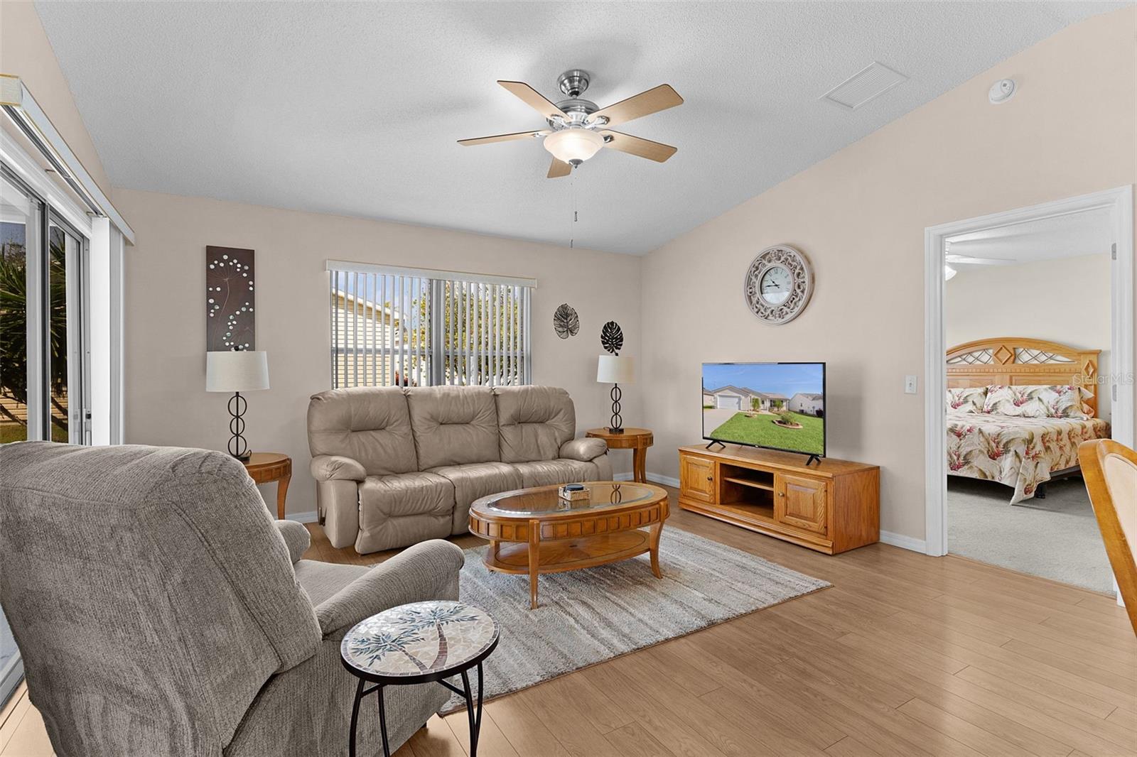 Esta casa está localizada na Vila de Caroline, uma das Aldeias mais próximas do Lago Sumter Landing, que é uma das praças mais populares da cidade. Propriedade bem conservada tem telhado novo 2025, novo esquentador a gás 2025. O ar condicionado é inspecionado regularmente. O proprietário está oferecendo uma garantia residencial. O título está pago. A casa vem pronta para uso e um carrinho de golfe Yamaha a gás 2014 está incluído. As baterias do carrinho têm apenas 2 anos. O paisagismo foi renovado com plantações e as palmeiras têm uma nova borda de pedra. Esta casa em planta aberta possui piso laminado na área de estar da casa e azulejos nas áreas úmidas, como cozinha e banheiros. Uma planta aberta dá uma sensação de espaço com portas de vidro deslizantes que levam à varanda da área de estar. A cozinha tem fogão elétrico liso, mas há gás disponível nesta área. Também possui um balcão para café da manhã. Existem 2 banheiros completos. O banheiro de hóspedes tem uma combinação de banheira e chuveiro. A suíte principal é espaçosa e possui closet. A suíte tem um chuveiro de bom tamanho com 2 bancos e um degrau baixo para facilitar a entrada. Esta poderia ser uma excelente propriedade de investimento, já que a renda de aluguel durante os horários de pico rendeu US$ 4.500/mês.