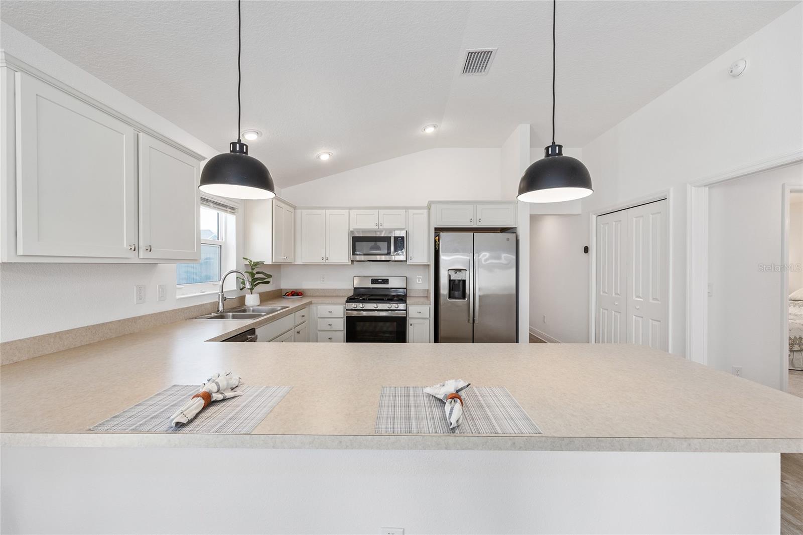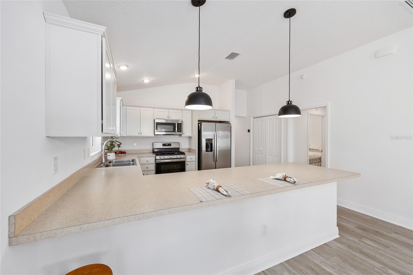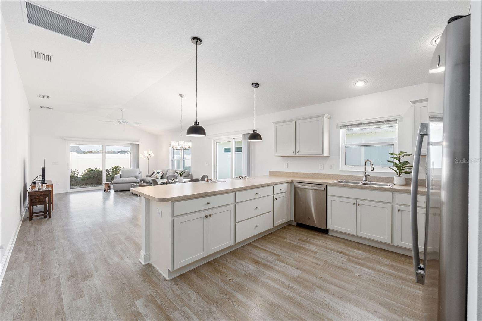 GARAGEM RARA PARA 2 CARROS! Esta CHARLOTTE COURTYARD VILLA lindamente mantida na procurada VILLAGE OF LAKE DENHAM oferece quase 1.500 pés quadrados de vida aberta e confortável em uma das áreas de crescimento mais rápido de The Villages. No interior, encontrará uma PLANTA DE CONCEITO ABERTO, luminosa e luminosa, com uma cozinha moderna com ACABAMENTOS DE ALTA QUALIDADE e uma ligação perfeita às espaçosas áreas de estar e jantar. A SUÍTE DO PROPRIETÁRIO oferece um retiro tranquilo com BANHEIRO PRIVATIVO e DOIS ARMÁRIOS. Dois quartos adicionais têm flexibilidade ideal para ESPAÇO DE HÓSPEDES, HOBBIES ou HOME OFFICE. Esta casa também inclui um SISTEMA DE FILTRAGEM DE ÁGUA ATUALIZADO para maior comodidade. Saia para desfrutar do seu santuário privado ao ar livre - um QUINTAL FECHADO perfeito para relaxar, fazer jardinagem ou se divertir. O PAISAGEM ROCK-ENHANCED adiciona um belo apelo ao meio-fio, enquanto o LANAI TELADO oferece um local tranquilo para desfrutar da vida na Flórida durante todo o ano. Localizado na desejável área de LAKE DENHAM, você estará perto de centros recreativos, trilhas para caminhada, golfe e dos populares restaurantes e entretenimento do SAWGRASS GROVE. LOCALIZAÇÃO PREMIER PERTO DO NOVO CENTRO DE ESTILO DE VIDA DE EASTPORT Uma vantagem notável desta vila é sua proximidade com EASTPORT, o mais novo distrito à beira-mar de The Villages, com os próximos RESTAURANTES, LOCAIS DE ENTRETENIMENTO, COMODIDADES À BEIRA DO LAGO, EVENTOS AO AR LIVRE e muito mais. Esta área está rapidamente se tornando um dos locais mais desejáveis em The Villages – tornando esta casa uma oportunidade incrível. Com sua GARAGEM PARA 2 CARROS, design de baixa manutenção e acesso às mais novas comodidades em The Villages, esta casa foi construída para uma vida fácil e moderna na Flórida. Não perca a chance – agende sua exibição privada hoje mesmo!
