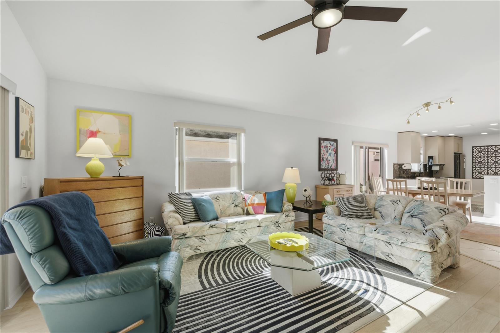 SEM VÍNCULO! Entre nesta linda e aconchegante Courtyard Villa modelo Baha modificada, localizada no bairro muito procurado de De La Mesa, com sua própria piscina comunitária privada exclusiva para residentes de De La Mesa. Esta deslumbrante vila de 2 quartos / 2 banheiros em bloco e estuque é oferecida totalmente pronta para uso e ainda inclui um carrinho de golfe Yamaha recém-mantido. A cozinha foi inteligentemente modificada para criar uma planta baixa mais aberta, apresentando atualizações cuidadosas, como bancadas de mármore, pia profunda de pia única, armários modernos e elegantes e eletrodomésticos de qualidade - incluindo uma máquina de lavar louça Bosch. A cozinha apresenta lindos azulejos diagonais, com luxuoso piso de pranchas de vinil em todo o resto da casa. A cozinha se abre para uma espaçosa área de jantar e de estar com tetos altos, dando à casa uma sensação luminosa e arejada. Sem teto de pipoca! O espaçoso quarto principal inclui ventilador de teto e porta deslizante de acesso ao pátio coberto. O banheiro principal totalmente atualizado oferece balcões de quartzo elegantes, box amplo e azulejos modernos por toda parte. O segundo quarto tem um tamanho generoso e está convenientemente localizado próximo ao banheiro de hóspedes atualizado. Saia para a varanda coberta, o local perfeito para aproveitar o sol da Flórida. O pátio privado apresenta paisagismo rochoso para fácil manutenção. A garagem acomoda um carro e um carrinho de golfe e vem equipada com ferramentas básicas, equipamentos de jardinagem e até um conjunto de tacos de golfe para que você esteja pronto para a próxima partida. Inclui um telhado de 2016 e um esquentador de 2019. A uma curta caminhada de distância, você encontrará o Parque Comunitário Privado De La Mesa, completo com trilha para caminhada, mirante e piscina aquecida de água salgada. Esta casa está convenientemente localizada a pouco mais de dois quilômetros - a poucos minutos de carrinho de golfe - da Praça da Cidade de Spanish Springs e a apenas 3,2 quilômetros do Lago Sumter Landing. Você também estará perto de lojas, instalações médicas, recreação e restaurantes. Não perca a oportunidade de possuir esta elegante villa pronta para uso que captura perfeitamente a essência do estilo de vida do The Villages. Venha ver você mesmo - agende uma visita hoje mesmo e experimente o charme e o conforto desta linda casa.
