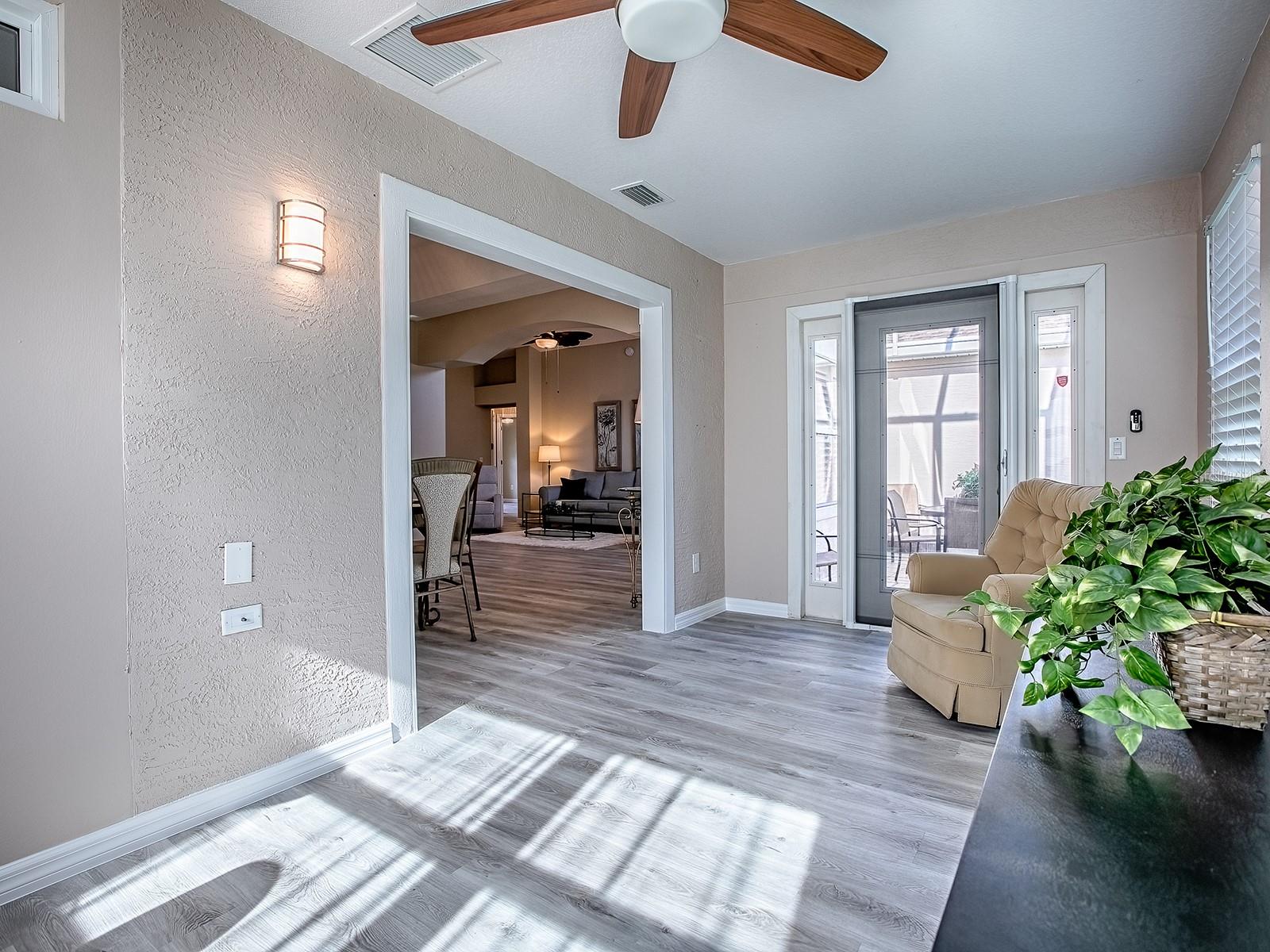 ADORÁVEL CASA DE DESIGNER 3/2 ATUALIZADA - MODELO STUCCO OLEANDER - LOCALIZADA NA VILA DE MALLORY, MUITO PRÓXIMA DA PRAÇA DO MERCADO DO LAGO SUMTER! TELHADO 2022, HVAC 2015. O MODELO OLEANDER oferece temas arquitetônicos atemporais com estilo moderno para criar uma CASA verdadeiramente LINDA. Interior RECÉM-PINTADO, NOVO PISO VINIL DE LUXO por toda parte com AZULEJO nas áreas úmidas. UMA GRANDE ÁREA DE ESTAR ABERTA, COM MUITAS JANELAS, PERSIANAS DE PLANTAÇÃO e TETOS VOLUMES criam uma CASA LEVE E BRILHANTE. A sala de jantar designada flui perfeitamente da área de estar principal e tem passagem para a cozinha. A cozinha EAT-IN possui armários BRANCOS, balcões de QUARTZO, eletrodomésticos INOX (gama a gás), grande ilha de cozinha e venezianas. Ao lado da cozinha você encontrará uma sala multifuncional exclusiva - criando um ótimo escritório doméstico ou sala de artesanato! Há um QUARTO FLÓRIDA de bom tamanho criando espaço adicional! Acesse a LANAI TELA da SALA FLÓRIDA quando quiser aproveitar o ar livre. As portas francesas se abrem para um GRANDE BANHEIRO PRIMÁRIO, TETOS DE BANDEJA ALTA, ARMÁRIOS DUPLOS E VAIDADE DUPLA COM BANCADA DE QUARTZO. Projeto de PLANTA SPLIT FLOOR com os QUARTOS DE HÓSPEDES na parte frontal da casa. O espaçoso banheiro de hóspedes inclui combinação de banheira/chuveiro e penteadeira grande com bancadas de quartzo. O Village of Mallory Square oferece lindas casas e diversas opções de lazer neste bairro tão especial. O Mallory Hill Country Club está situado entre 27 buracos de um fabuloso campeonato de golfe. Existem vários cursos executivos nas proximidades também. QUE LUGAR FANTÁSTICO PARA CHAMAR DE CASA!! ** BÔNUS - OS MÓVEIS FIQUEM COM A CASA SE DESEJAR **