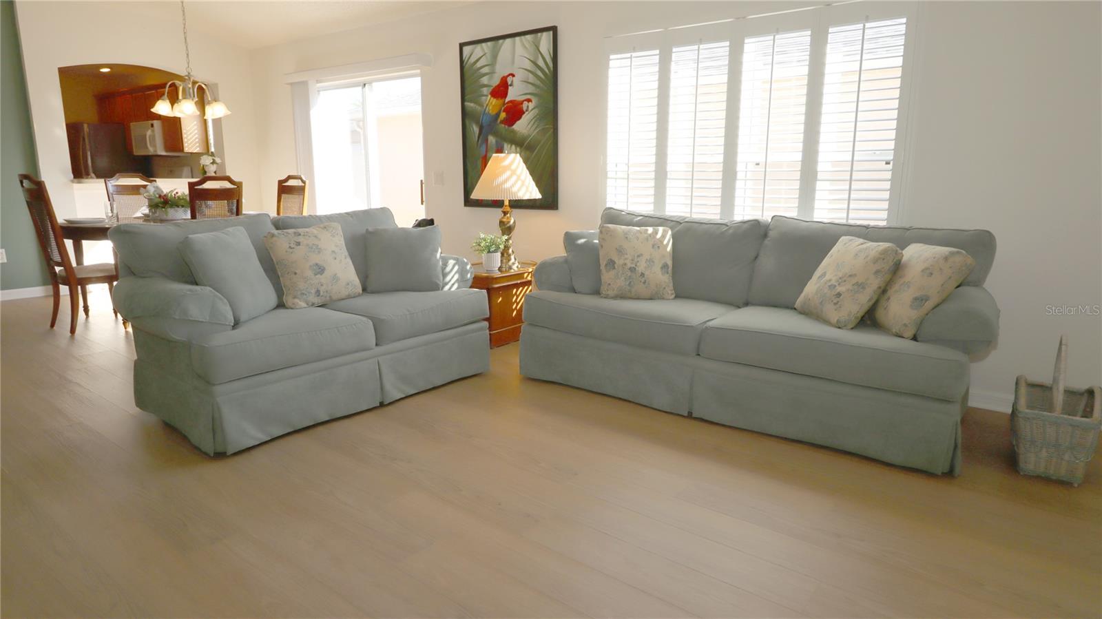 De volta ao mercado e melhor do que nunca! O comprador teve que desistir por causa de problemas de saúde. Este lindo bloco e estuque Beauregard pátio Villa está localizado em uma vila muito procurada de Virginia Trace nas Still Water Villas. Você está a poucos quarteirões da praça da cidade de Sumter Landing. O bairro é todo quarteirão e estuque. Este é um 2/2 com uma varanda fechada e um belo pátio nos fundos. O piso é todo em tábuas de vinil de luxo, exceto os banheiros que são de azulejos. As venezianas proporcionam uma bela aparência às janelas e todas as ripas nas verticais de vinil foram substituídas. Alguns móveis estão incluídos nesta casa e ela está pronta para ser usada. Ao entrar na casa, você vê a cozinha com bancadas laminadas brilhantes. A geladeira é 2024 e os demais eletrodomésticos são originais. O alcance é a gás. Há uma despensa arrumada na cozinha. A garagem tem 1 1/2 e tem máquina de lavar e secar roupa. Existem escadas rebatíveis para arrumação, piso e luz. Este plano de conceito aberto possui uma bela sala de jantar com mesa e 4 cadeiras. Há almofadas de mesa e duas folhas também. A sala tem uma poltrona e um sofá e uma mesa de canto com abajur. A imagem do Papagaio fica assim como a pantera e os patos. O quarto principal tem uma cama queen-size, duas mesas de cabeceira, um armário de canto e uma cômoda. O banheiro principal tem pias duplas e um belo chuveiro. O grande closet tem muito espaço. O quarto de hóspedes tem espaço para uma cama queen size e um armário. O banheiro de hóspedes tem uma combinação de banheira e chuveiro e piso de cerâmica. Telhado 2023, HVAC 2025 (novo) e Esquentador 2025 (recém instalado). O banheiro principal foi totalmente refeito. Há um pequeno título restante nesta casa $ 4.057,10, Manutenção $ 299,20 Ano, Incêndio $ 320,71 Ano, Título pmt Ano $ 486,96.