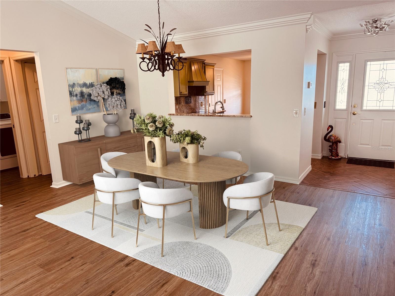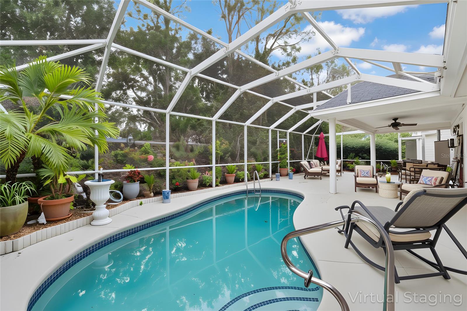 ~NO BOND POOL HOME~ Impressionante Modelo 3/2 JASMINE com PISCINA na Aldeia Altamente Desejável de SANTO DOMINGO! NOVO piso vinílico recém-instalado na sala, lavanderia e corredor. Bem-vindo a esta propriedade lindamente mantida que oferece apelo excepcional com uma calçada de concreto estampado, detalhes paisagísticos de tijolos, arbustos bem cuidados e uma elegante porta frontal de vidro com chumbo. Entre e experimente um layout claro e fluido com linhas de visão claras através de portas deslizantes de 4 painéis para o oásis da sua piscina privada. As principais áreas de estar apresentam piso de cerâmica e sancas para uma sensação refinada e coesa. Um tubo solar nas áreas de estar e de jantar enche a casa de luz natural, tornando-a ideal para a vida quotidiana ou para entretenimento. A cozinha do chef impressiona com piso de porcelanato, bancadas e backsplash de granito, eletrodomésticos de aço inoxidável, venezianas, um segundo tubo solar e uma espaçosa área de café da manhã. A suíte principal inclui piso de madeira, um grande closet, parede com detalhes em beadboard e um banheiro privativo com espelhos duplos, bancadas de granito, chuveiro com azulejos e armazenamento abundante. Os hóspedes poderão desfrutar de dois quartos adicionais (um com persianas) e um banheiro completo com lindas paredes de azulejos. A conveniência continua com uma lavanderia interna com lavadora e secadora Samsung, tanque de lavanderia e prateleiras. Saia para o seu oásis privado no quintal - uma linda piscina cercada por uma gaiola, oferecendo total privacidade com árvores e arbustos maduros. A varanda coberta oferece o espaço perfeito para grelhar, jantar ou relaxar à beira da piscina. A piscina tem um filtro e uma bomba mais novos e foi reformada no ano passado. As características adicionais incluem garagem para 2 carros com arrecadação no sótão e escadas, portão de garagem isolado, TELHADO (2017), HVAC (2013) e Aquecedor de Água Quente (2018). Esta localização ideal coloca você a poucos minutos da Praça da Cidade de Spanish Springs e do Lago Sumter Landing, com fácil acesso a restaurantes, lojas, instalações médicas e entretenimento noturno. O Tierra Del Sol Country Club e o El Santiago Rec Center estão próximos para jogar golfe, natação, pickleball e muito mais. Uma linda casa pronta para morar, SEM GARANTIA e PISCINA - esta verifica todas as caixas!