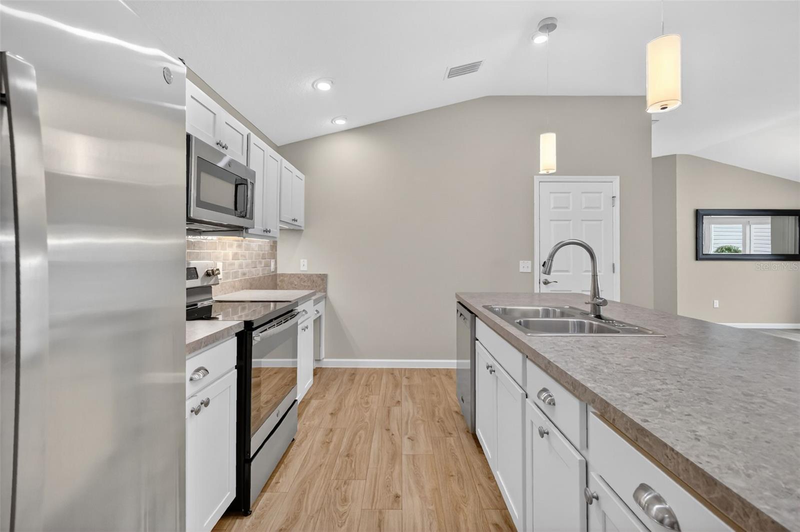 Uma ou mais fotos foram virtualmente encenadas. Fabulosa villa Esmeralda de 3 quartos e 2 banheiros com GARAGEM DE CARRINHO DE GOLFE e um QUINTAL PRIVADO TRASEIRO - escondida nas belas Julia Villas da vila de Chitty Chatty, um dos bairros mais procurados de todas as vilas! Esta localização privilegiada coloca você a APENAS MINUTOS do Lake Deaton Shopping Plaza e SR-44, oferecendo acesso a novas opções de compras (incluindo o novo Super Walmart), restaurantes, bancos, serviços médicos e muito mais - tudo o que você precisa, na ponta dos dedos! O ROHAN REC CENTER fica a apenas 5 MINUTOS de carrinho de golfe. Construída em 2020, esta casa quase NOVA oferece luxo de baixa manutenção, acabamentos contemporâneos e a tranquilidade que você procura. Diretamente atrás da casa, você terá acesso imediato a quilômetros de trilhas panorâmicas para caminhadas e ciclismo com vistas pitorescas da reserva, criando um estilo de vida verdadeiramente de férias todos os dias! Um exterior lindamente cuidado com camas de paisagismo forradas de pavimentação e uma elegante porta frontal de VIDRO COM CHUMBO causam uma primeira impressão impressionante. Entre em um layout convidativo de CONCEITO ABERTO, onde tetos altos e abobadados criam uma atmosfera ampla e arejada que parece iluminada e acolhedora desde o momento em que você entra. Esta casa está repleta de atualizações, incluindo PISO DE TÁBUAS DE VINIL EM TODA A PARTE, um sistema de filtragem de água para toda a casa Nova e um sistema de iluminação de emergência para maior comodidade. A cozinha do chef IMPRESSIONANTE é uma verdadeira peça central, apresentando armários WHITE SHAKER modernos com EXTENSÕES, bancadas NEUTRAS, backsplash GREIGE TILE, eletrodomésticos INOX, DESPENSA E MESA EMBUTIDAS, e uma GRANDE ISAND CENTRAL com uma barra de café da manhã EAT-IN - perfeita para reuniões e jantares casuais. Portas de vidro deslizantes da área de jantar se abrem para um PÁTIO LATERAL ESPAÇOSO E PRIVADO - um maravilhoso oásis ao ar livre durante todo o ano, ideal para manhãs tranquilas, leitura à tarde ou reuniões noturnas. De volta ao interior, a luxuosa suíte principal possui um teto abobadado, amplo closet e um banheiro privativo lindamente decorado com pias DUPLAS, armários WHITE SHAKER, chuveiro WALK-IN, armário de LINHO e vaso sanitário separado. O quarto dois oferece teto abobadado e armário embutido. O segundo banheiro possui uma penteadeira WHITE SHAKER e uma combinação de banheira e chuveiro. O terceiro quarto tem armário embutido e fica próximo ao hall de entrada oferecendo um espaço ideal para um home office tranquilo ou área de dormir adicional. UM ARMÁRIO DE LAVANDERIA INTERIOR CONVENIENTE possui prateleiras adicionais e um recanto para necessidades de ARMAZENAMENTO EXTRA. Uma das características de destaque são DUAS garagens separadas - um ACHADO RARO na vida em uma villa! Uma garagem para um carro e meio de 14'x21' e uma garagem para carrinho de golfe com carga lateral de 11'x10' com pia fornecem armazenamento, opções de hobby/espaço de trabalho e espaço para veículos, carrinhos de golfe e equipamentos. Esta é a vida da Flórida no seu melhor - uma casa lindamente projetada em uma LOCALIZAÇÃO PRIVILEGIADA, perto de tudo o que você ama em The Villages, com a privacidade e a tranquilidade que você deseja! A vila de Chitty Chatty está IDEALMENTE LOCALIZADA entre Saw Grass Grove e Brownwood Paddock Square, com entretenimento noturno ao vivo, compras e restaurantes! Chitty Chatty possui sua própria piscina de bairro e centro recreativo; Também nas proximidades estão os Complexos Recreativos Regionais Rohan, Ezell e Everglades; e campo de golfe profissional Southern Oaks. NÃO PERCA A OPORTUNIDADE de tornar esta IMPRESSIONANTE VILLA SUA - ASSISTA NOSSO VÍDEO PASSADO E LIGUE HOJE para agendar sua exibição privada ou tour virtual!