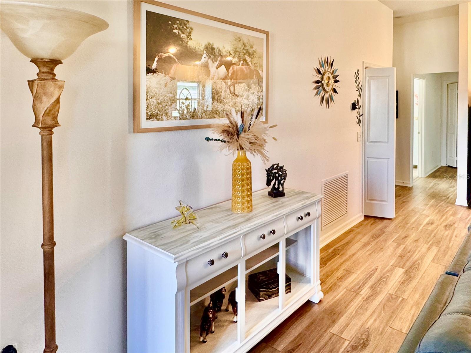 A partir do momento de sua chegada, esta casa recebe você com um charme charmoso, um terreno amplo e uma varanda coberta que convida você a desacelerar e aproveitar o bairro. No interior, o layout aberto apresenta tetos abobadados, piso aconchegante com aparência de madeira e luz natural que flui facilmente pelas áreas de estar e de jantar. A cozinha aberta e bem iluminada oferece armários brancos, eletrodomésticos de aço inoxidável e uma conexão perfeita com a área de estar principal - perfeita para a vida cotidiana ou entretenimento descontraído. Os quartos oferecem retiros confortáveis com carpetes macios, ventiladores de teto e janelas em estilo de plantação. Uma garagem limpa e bem organizada que permite estacionamento para carros e carrinhos de golfe e um layout cuidadoso refletem uma casa que está realmente pronta para morar. Desfrute de uma localização imbatível a apenas 5 minutos de Eastport, 2 minutos do Saluki Recreation Center, 1 minuto do Shady Brook Neighborhood Pool and Mail Center e 3 minutos do Moultrie Creek Recreation Center - colocando você no coração do estilo de vida The Villages. Ligue para um agendamento hoje!