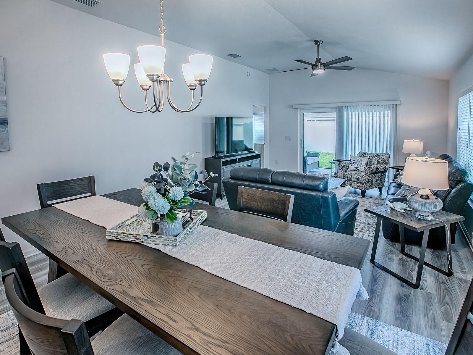 Você está pronto para começar a viver o Village Lifestyle em seu lindo modelo Charlotte pronto para uso, com um quintal privativo para relaxar. Esta casa possui espaço para um spa de natação, piscina) ou uma área de reunião fechada com tela expandida para uma vida ao ar livre ampliada. Você tem centros recreativos adjacentes, várias praças e inúmeras trilhas naturais de tirar o fôlego e oportunidades de exercícios ao ar livre. Sua localização no paraíso permite que você suba em sua bicicleta ou carrinho de golfe enquanto percorre caminhos intermináveis, nade em piscinas em centros recreativos próximos e coma algo ou ouça música em Eastport, Sawgrass Grove e nos restaurantes repletos de praças de Middleton. Ao entrar em sua nova casa, você encontrará um paisagismo encantador que leva à sua varanda mobiliada com cadeiras e mesa para momentos relaxantes de café ou coquetéis com os vizinhos. Ao entrar, você encontrará uma planta dividida lindamente decorada com 3 quartos e 2 banheiros, completa com luxuoso piso de vinil em todas as áreas ativas e carpete nos quartos. A cozinha possui bancadas de quartzo, armários cinza de design e eletrodomésticos de aço inoxidável e uma mesa de jantar para 6 pessoas ou para comer no bar. Na parte de trás, com vista para o seu quintal espaçoso e privado, fica o seu quarto principal lindamente decorado, com uma cama king-size, cômoda, mesinhas de cabeceira duplas e um grande closet. O banheiro principal tem box amplo aberto, pias duplas e toalete privativo. Há uma grande lavanderia com máquina de lavar e secar roupa incluída. Relaxe na sua varanda enquanto aproveita o lindo clima da Flórida. O quintal cercado oferece privacidade ou amplo espaço para jogos e espaço para bebês peludos brincarem e um pátio lateral para churrasco localizado ao lado da cozinha através de uma grande porta de vidro deslizante com verticais resistentes e laváveis. A garagem possui muito espaço de armazenamento para todas as suas necessidades. Agende agora sua exibição privada!