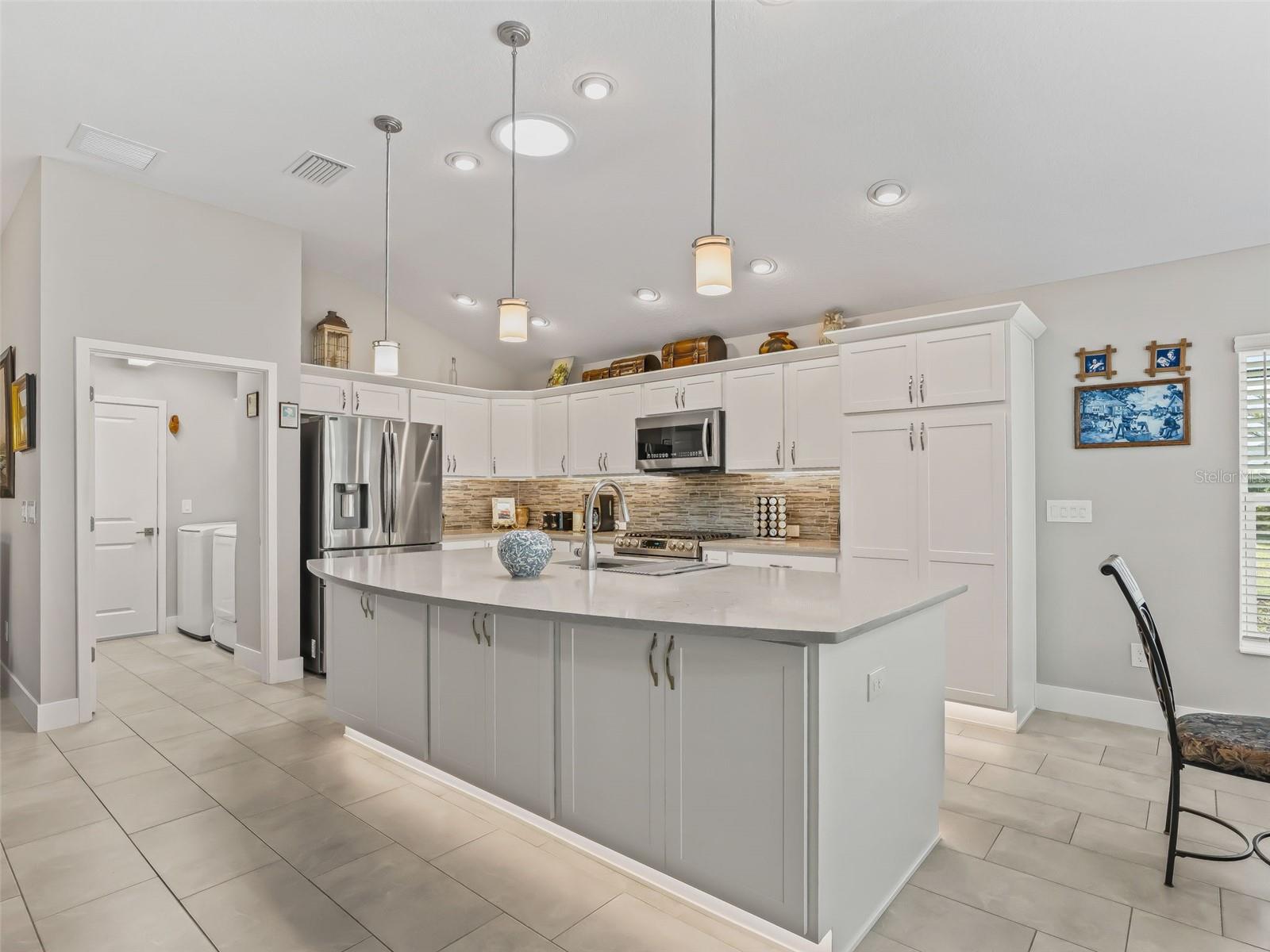 SEM VÍNCULO!! Situada em uma enorme área residencial sem saída com amplo espaço para uma futura piscina, esta residência impecavelmente mantida de três quartos, três banheiros e garagem para três carros oferece elegância refinada, atualizações atenciosas e uma vida interna e externa excepcional. Uma calçada de pavimentação de pedra, iluminação externa aprimorada e canteiros de pedra e pedras lindamente projetados criam um apelo impressionante ao meio-fio. A imponente entrada frontal é destacada por colunas arquitetônicas e uma elegante porta frontal de vidro, recebendo você em um gracioso hall de entrada adornado com piso alongado de cerâmica que flui por toda a casa. Tubos solares estrategicamente posicionados banham ambientes selecionados com luz natural. Projetada para entretenimento e conforto diário, a combinação formal de sala de estar e sala de jantar faz uma transição perfeita para o coração da casa. A cozinha inspirada no chef é uma verdadeira peça de exibição, apresentando uma grande barra de café da manhã com iluminação pendente, backsplash de designer, ricas bancadas de pedra e um pacote premium de eletrodomésticos de aço inoxidável, incluindo um fogão a gás de seis bocas. Armários personalizados com sancas, gavetas extraíveis, despensa atualizada e iluminação superior, inferior e de piso completam este espaço excepcional. Uma encantadora copa com portas de vidro deslizantes se abre para a marquise climatizada. A espaçosa sala possui portas quádruplas de vidro deslizantes, criando uma conexão impressionante com a área de estar externa e permitindo a entrada de luz natural abundante. A luxuosa suíte principal é um retiro privado, com teto falso, porta de entrada, amplo closet e banheira tipo spa com chuveiro romano exibindo uma janela de bloco de vidro e chuveiros duplos. Vaidades duplas com pias quadradas, torneiras atualizadas e armários em torre proporcionam elegância e armazenamento generoso. Um banheiro privativo oferece conforto e privacidade com closet, penteadeira de altura confortável e chuveiro de azulejos com divisória de vidro. O terceiro quarto está convenientemente localizado próximo ao terceiro banheiro, que inclui banheira de hidromassagem, ideal para relaxamento e acessibilidade. Os destaques adicionais incluem uma lavanderia bem equipada com armários extras e uma enorme garagem para três carros com acabamento no mesmo piso de cerâmica da casa, telas de garagem automáticas em ambas as portas e uma pia. A sala fechada da Flórida é perfeita para diversão o ano todo, completa com dois ventiladores de teto, seu próprio aparelho de aquecimento e ar condicionado com controle remoto e persianas personalizadas. A varanda/marquise climatizada NÃO está incluída na metragem quadrada aquecida. Além disso, desfrute de uma gaiola com tela e um pátio de concreto, ideal para entretenimento ao ar livre. Abundam as atualizações premium, incluindo um termostato inteligente Ecobee, persianas automáticas, ventiladores de teto atualizados, luz UV HVAC, ventilador de sótão, escadas rebatíveis de sótão e amplo armazenamento por toda parte. Meticulosamente mantida e ricamente decorada, esta casa extraordinária oferece luxo, conforto e apelo atemporal em um ambiente excepcional. SEM VÍNCULO!