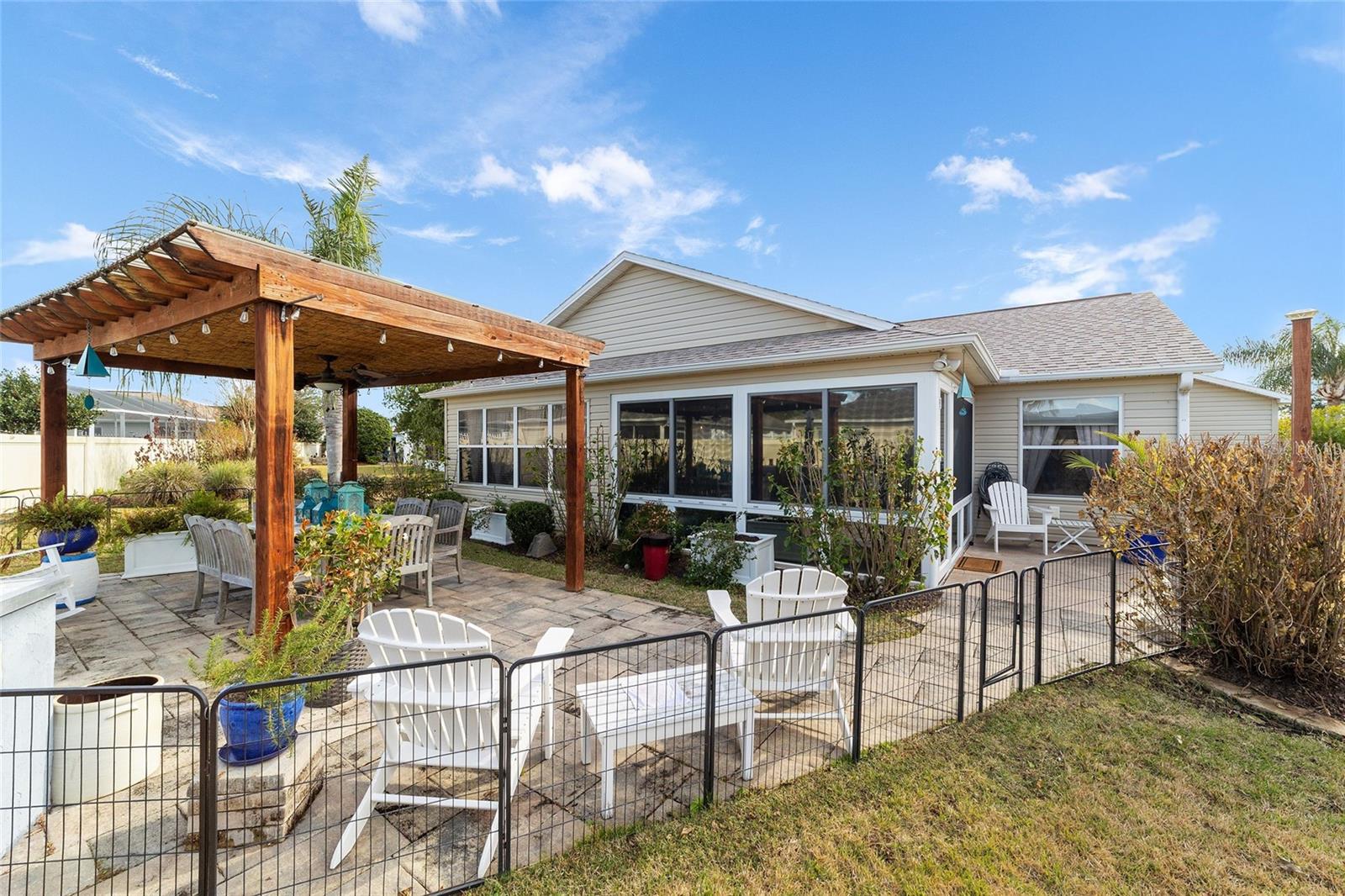 1647 Scotch Pine Way: O retiro definitivo para diversão, relaxamento e estilo -The Villages tem tudo a ver com entretenimento e estar em uma excelente localização. Convenientemente localizado entre os “6's” e a poucos passos do golfe, centros recreativos e muitas lojas na Hwy 466A atingem este alvo! Este conceito aberto, quarto dividido expandido Amarillo é uma verdadeira joia. Aqui está o que torna esta casa especial: lote de esquina, ampla entrada de automóveis com garagem para carrinhos de golfe, paisagismo de parede elevada, sala de estar ampliada, ilha central de quartzo e backsplash personalizado na cozinha atualizada, varanda fechada de vidro com ventilação A/C, uma incrível cozinha ao ar livre com muitos lugares sentados. Uma grande pérgula irá protegê-lo do sol da Flórida! Tudo isso em um amplo terreno privado com um muro distante atrás. Há ainda muito espaço para uma piscina. Dentro das atualizações adicionais incluem piso de tábuas de luxo em toda a casa, uma abundância de sancas, venezianas, belas paredes no quarto principal e na sala de jantar, além de uma despensa com gavetas. Um espaçoso quarto principal com banheiro atualizado oferece seu próprio santuário privado. Telhado 2024, aquecedor de água 2025, eletrodomésticos de cozinha de aço inoxidável mais recentes estão todos incluídos! A linha de baixo saldo de títulos - imposto inclui pagamento de títulos e nenhuma isenção de bem de família. Faça desta casa o seu melhor espaço de retiro para você!