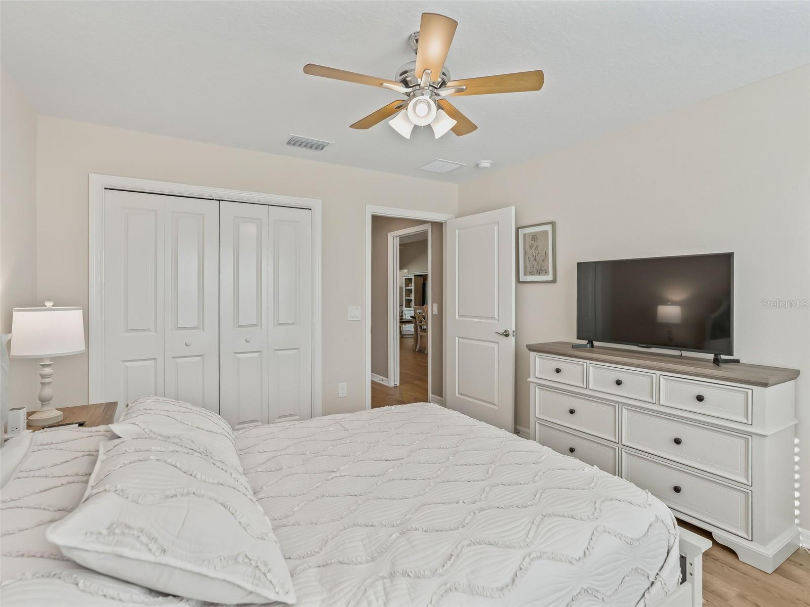 Bem-vindo a esta deslumbrante casa de estuque de blocos de concreto, totalmente MOBILIADA e verdadeiramente CHAVE NA MÃO, com móveis de design NOVOS por toda parte. Idealmente localizada em The Villages of Southern Oaks, esta residência imaculada fica a uma curta distância a pé da nova Eastport Town Square e oferece privacidade excepcional, sem vizinhos traseiros, sem varandas para beijar e com uma parede de PRIVACIDADE. O interior cuidadosamente projetado apresenta piso laminado de madeira, bancadas de QUARTZO, tetos altos, ventiladores de teto, portas de correr e uma parede de portas deslizantes de vidro ao longo da parte traseira da casa, criando um layout de conceito aberto claro e arejado - perfeito para entretenimento. Um hall de entrada acolhedor com um lindo lustre se abre para uma grande sala espaçosa, completa com TV de 65 polegadas e sofá reclinável. A área de jantar adjacente acomoda facilmente uma grande mesa e buffet para receber familiares e amigos. A cozinha do chef possui armários brancos com prateleiras ROLL-OUT, armazenamento abundante, eletrodomésticos de aço inoxidável com fogão a GÁS, iluminação PENDENTE e uma impressionante ilha e bar cinza contrastante. Totalmente abastecida com todos os itens essenciais prontos para uso, esta cozinha é elegante e funcional. A suíte principal é um verdadeiro retiro, com teto TRAY, portas de VIDRO deslizantes para a varanda com tela, um luxuoso box amplo de azulejos com banco e janela, pias para ele e ela, um vaso sanitário privativo e um closet PERSONALIZADO com prateleiras e gavetas INCORPORADAS. O segundo quarto e o banheiro estão convenientemente localizados e incluem box amplo de vidro com azulejos e penteadeira de altura confortável. O terceiro quarto e o banheiro oferecem uma penteadeira confortável e uma combinação banheira/chuveiro, ideal para os hóspedes. Destaques adicionais incluem: Lavandaria com armários extras para arrumação; Garagem para 2 carros e carrinho de golfe com piso ACABADO EM EPÓXI; Varanda privada com ventilador de teto; Vários armários e armazenamento abundante por toda parte. Esta casa está repleta de atualizações e é TOTALMENTE CHAVE NA MÃO, incluindo móveis novos, TVs em todos os quartos, câmeras circulares, termostato Ecobee Wi-Fi e um sistema de irrigação automática. Se você está procurando uma casa de luxo imaculada e pronta para morar em uma bela área perto de comodidades de primeira linha, esta marca todas as caixas. Agende sua exibição privada hoje mesmo – esta casa excepcional não durará.