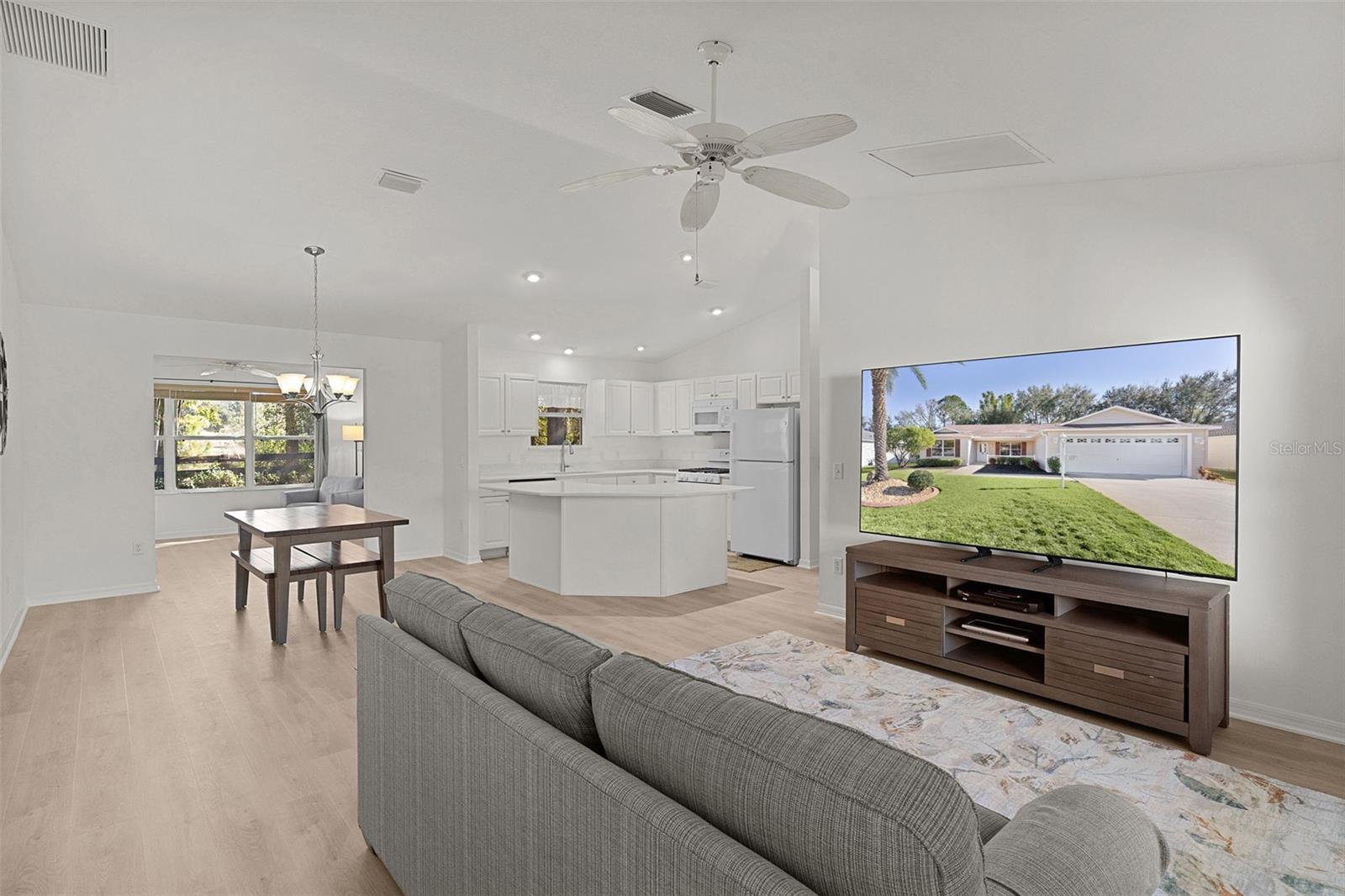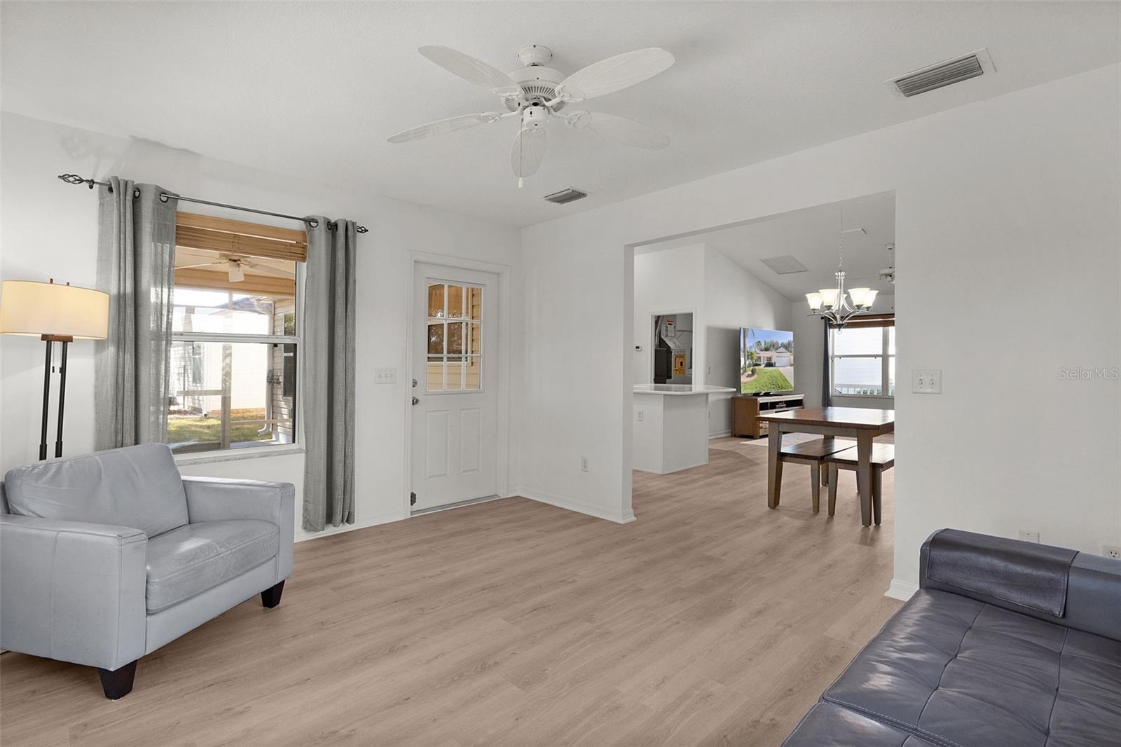 ~NO BOND~ ~FARM / PRESERVE-LIKE VIEW~ ~180sf FLORIDA ROOM~ Bem-vindo a este deslumbrante modelo AMARILLO na muito procurada vila de AMELIA (“ENTRE OS 6'S”), com VISTAS DE FAZENDA e PRESERVE-LIKE que criam um ambiente tranquilo e PRIVADO. Esta casa lindamente conservada apresenta um paisagismo atualizado, aumentando a atratividade do meio-fio. Entre e seja recebido por TETOS ABOBADOS ALTOS que realçam a sensação aberta e arejada, enquanto o PISO DE TÁBUAS DE VINIL DE LUXO flui por toda a casa para uma aparência limpa e moderna. A sala de estar inclui ventilador de teto e a sala de jantar tem teto abobadado, tornando-a ideal para entretenimento. A cozinha inspirada no chef brilha com bancadas de QUARTZO, uma nova máquina de lavar louça, geladeira e fogão a GÁS - tornando a preparação das refeições um prazer. A espaçosa suíte principal possui ventilador de teto, 2 closets e um banheiro privativo lindamente atualizado com chuveiro walk-in de azulejos, bancadas de QUARTZO e pias NOVAS. Dois quartos adicionais oferecem ventiladores de teto e armários embutidos. O banheiro de hóspedes inclui uma combinação banheira/chuveiro, bancadas de QUARTZO e um armário de linho. Desfrute de relaxamento o ano todo no QUARTO FLORIDA, totalmente integrado à casa e com piso em LVP e ventilador de teto. A área INTERNA DA LAVANDERIA está equipada com eletrodomésticos SAMSUNG, e a varanda blindada com piso de concreto oferece o lugar perfeito para relaxar e apreciar as vistas serenas. Telhado 2014, sistema Trane HVAC 2008 (com manutenção regular pela Munns) e um aquecedor de água quente 2008. Esta casa pronta para morar combina conforto, estilo e um ambiente excepcional. A poucos minutos do Odell Rec Center e da Hadley Pool, bem como do Havana Country Club e do Mallory Hill Country Club. Uma curta viagem de carrinho de golfe até Lake Sumter Landing e Brownwood Paddock Square. Perto de lojas e restaurantes na CR466 e na CR466A. Esta casa oferece o equilíbrio perfeito entre atualizações, design inteligente e uma localização fantástica. Não perca a chance de torná-lo seu!
