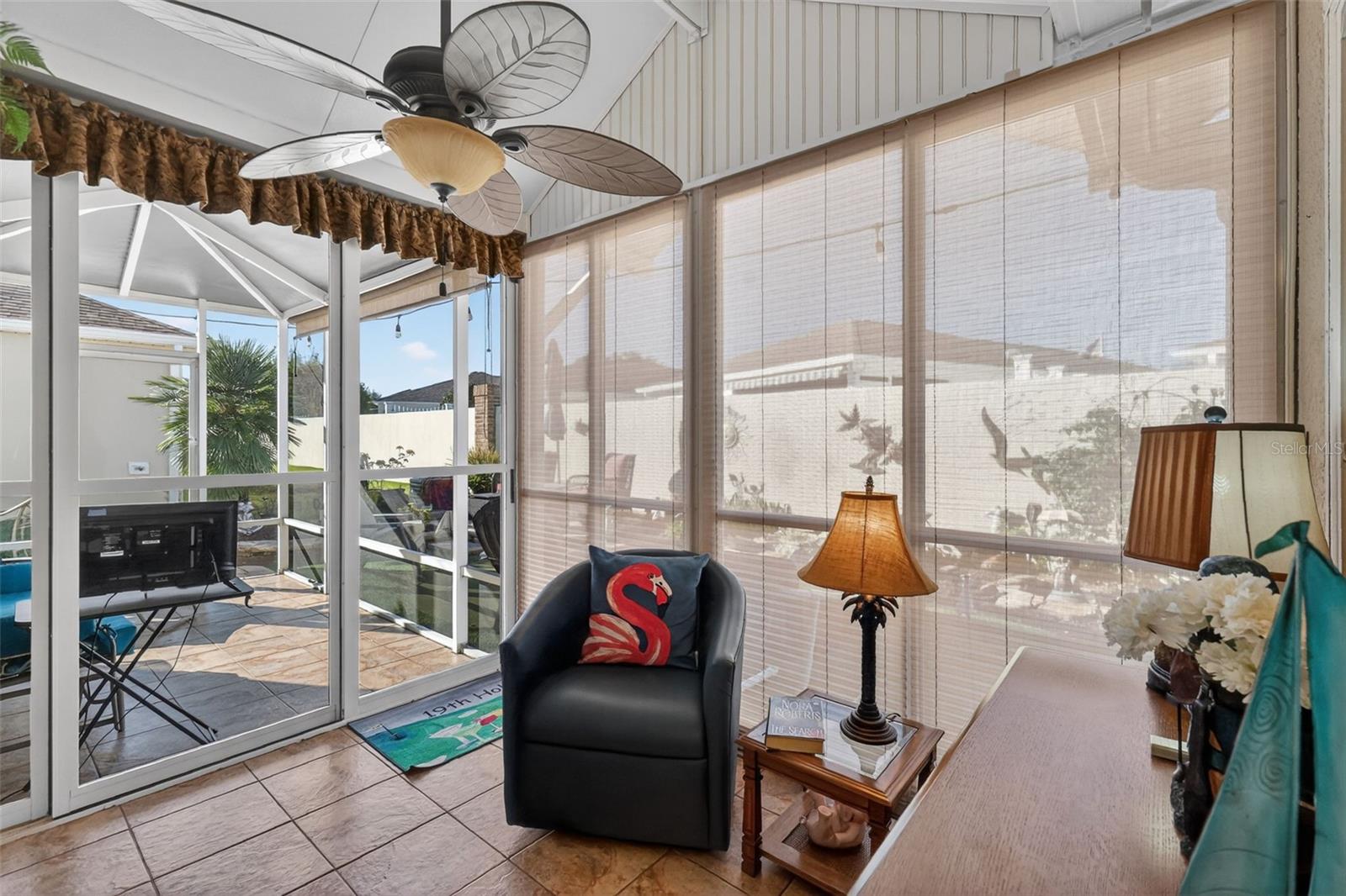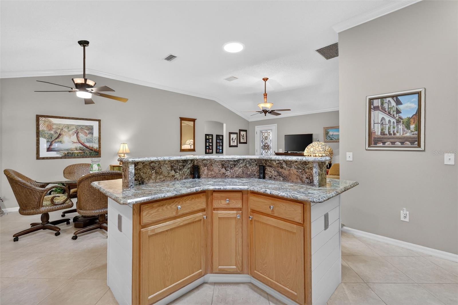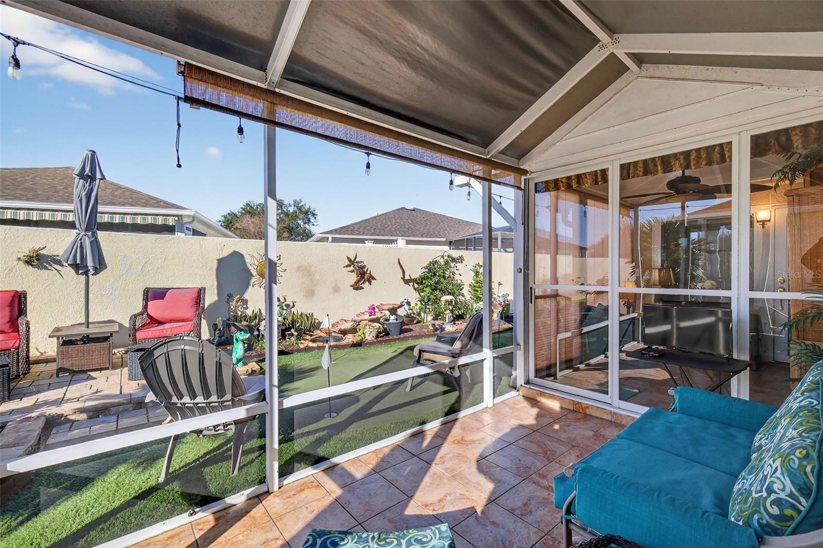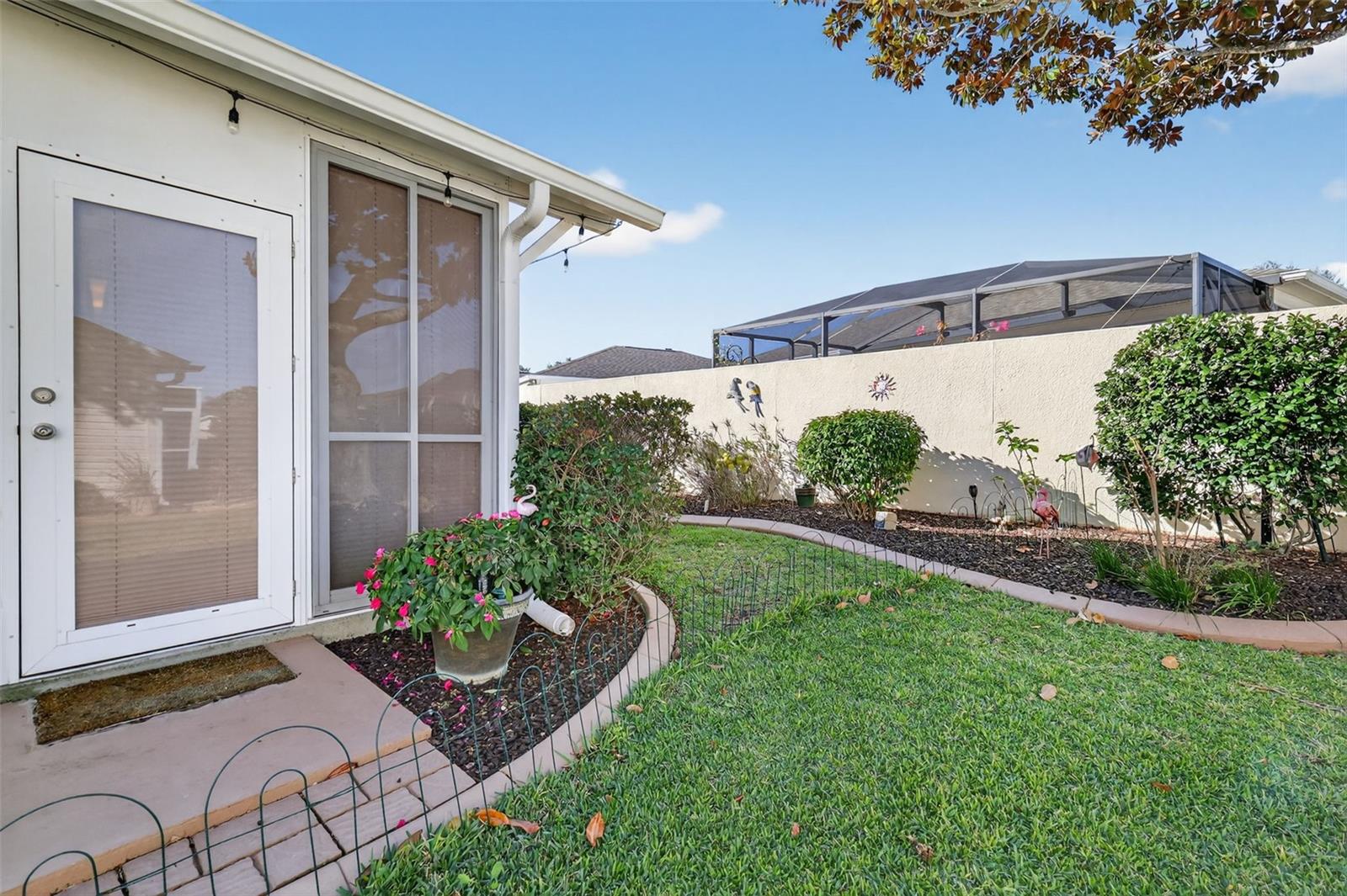 IMPRESSIONANTE e METICULOSA manutenção de 3/2 quarteirões e estuque ampliado AZALEA com garagem para 2 carros + garagem para carrinhos de golfe na Vila do Piemonte em um terreno sem saída e oferece privacidade traseira - a casa fica apoiada em um muro de privacidade. BOND PAIOD, TELHADO 2023, HVAC 2022. Tremenda atratividade com calçada e passarela de concreto pintado. Pintura externa mais recente 2023, paisagismo profissional e entrada frontal coberta com uma elegante porta de vidro com chumbo e porta de tela retrátil e oculta. O conceito aberto Azaleas e a planta dividida com 3 tubos solares acentuam a espaçosa área de estar, sala de jantar e cozinha com bancadas Cambria, tornando esta casa perfeita para uma vida confortável e receber amigos e familiares. Esta casa bem equipada possui um putting green de 5 buracos com área de observação, sancas, tetos abobadados, uma sala Florida e uma sala com ar condicionado que pode ser usada como escritório ou escritório. Além disso, há uma sala de estar e uma gaiola externa com pátio externo com mesa e churrasqueira. Há também fontes de água nesta propriedade para sua diversão relaxante