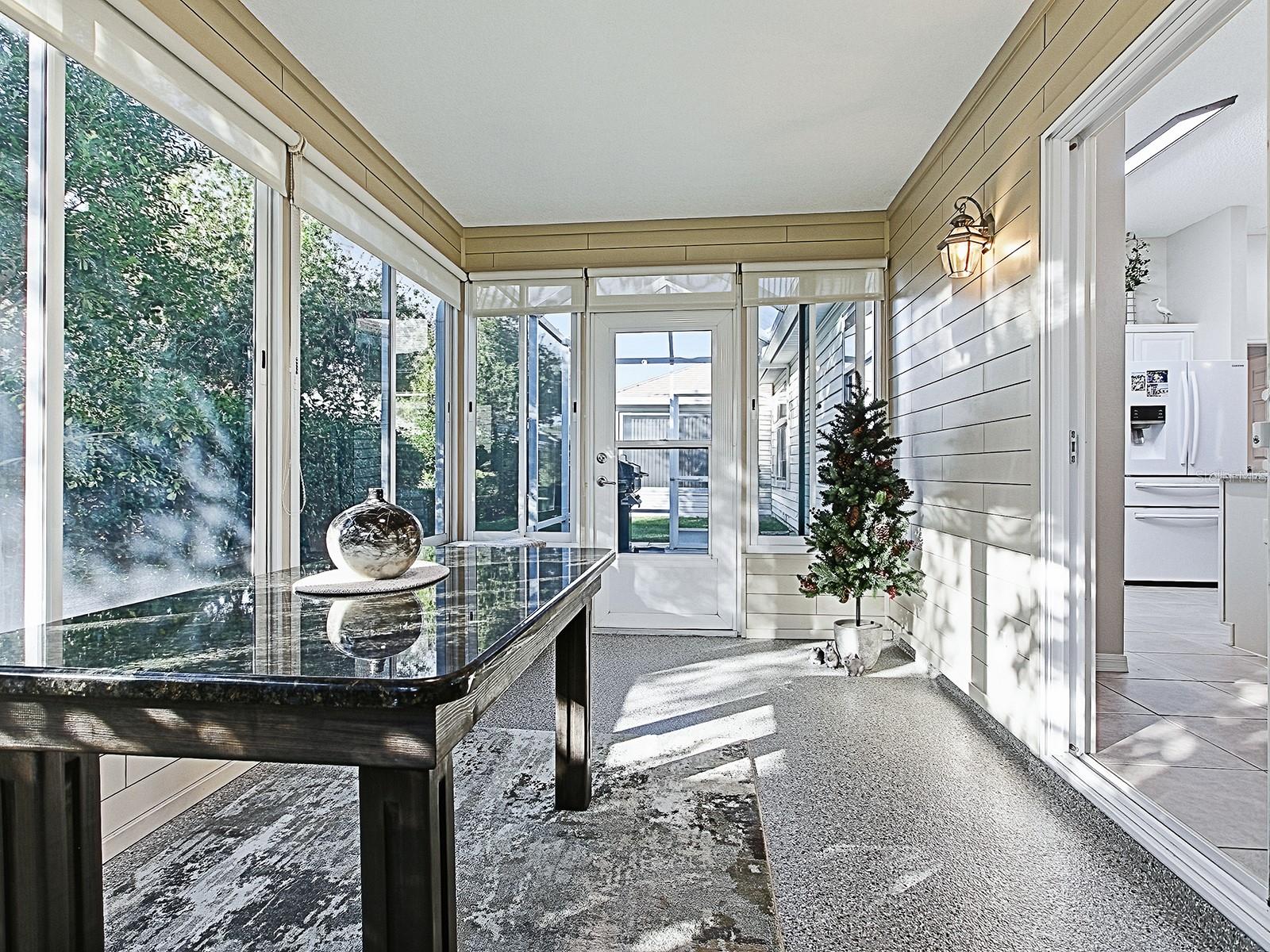 LINDA, ATUALIZADA E IMPECÁVELMENTE MANTIDA - Casa de 2 quartos/2 banheiros com uma espaçosa GARAGEM PARA 2 CARROS - Convenientemente localizada entre 466 e 466A na VILA DE LYNNHAVEN, a poucos MINUTOS DE LAKE SUMTER LANDING. TELHADO 2021, HWH 2021, AC ATUALIZADO EM 2016. Ao chegar, você notará uma grande atratividade do meio-fio com calçada e passarela de pavimentação, paisagismo incrível e uma fonte Zen de 'baixa manutenção'! A planta baixa de Abilene oferece um conceito ABERTO LEVE E BRILHANTE com tetos volumosos, tubos solares e quartos divididos. Há uma espaçosa cozinha branca (com fogão a gás, uma ilha central, bastante armário/balcão) que ancora a sala de jantar e o espaço de estar. Piso cerâmico em toda a sala principal e banheiros com piso laminado nos quartos. A LANAI FECHADA DE VIDRO oferece amplo espaço de convivência, possui piso em epóxi e é cercada por SHRUBS DE PRIVACIDADE. Uma gaiola de tamanho generoso está localizada fora da varanda para grelhar e jantar ao ar livre. Alguns recursos e atualizações adicionais: persianas de plantação, recentemente pintadas, novas portas deslizantes de vidro Lanai, novas luminárias, ventiladores, luminárias de banheiro, espelhos, ferragens, gavetas de cozinha, pisos de epóxi - Lanai e garagem, detectores de fumaça, Seco adquiriu protetores contra surtos de garantia de 15 anos, etc. A vila de Lynnhaven é conhecida por sua proximidade com golfe, natação e recreação. O destaque do centro recreativo do bairro é uma piscina para adultos, enquanto o Centro Recreativo Churchill Downs Village abriga uma das piscinas familiares da região, perfeita para quando os mais jovens vierem nos visitar. Se você gosta de bocha, shuffleboard, ferraduras, pickleball ou tênis, há muito para encontrar - a apenas uma curta viagem de carro de golfe. Os golfistas apreciam o Arnold Palmer Legends Country Club, completo com restaurante, driving range, loja profissional e academia de golfe. Três cursos executivos nas proximidades: Pimlico, Churchill Downs e Belmont - completam a diversão que você pode ter nos links do bairro. **Pacote pronto para uso e/ou móveis disponíveis separadamente, também há um carrinho de golfe Yamaha 2013 disponível separadamente**