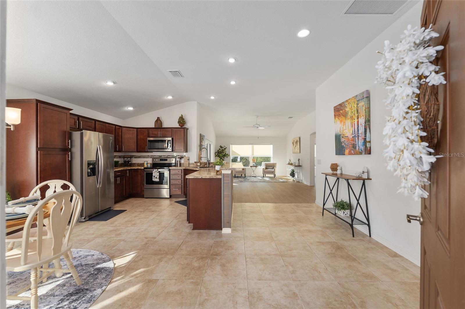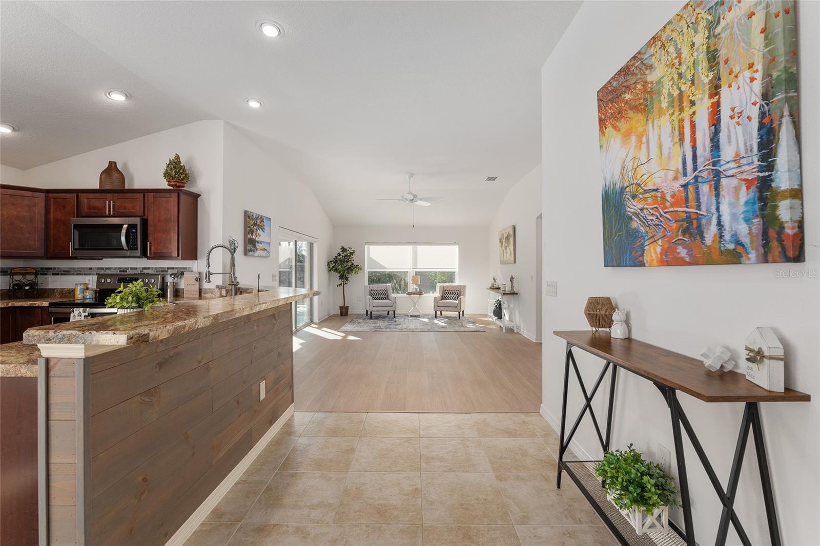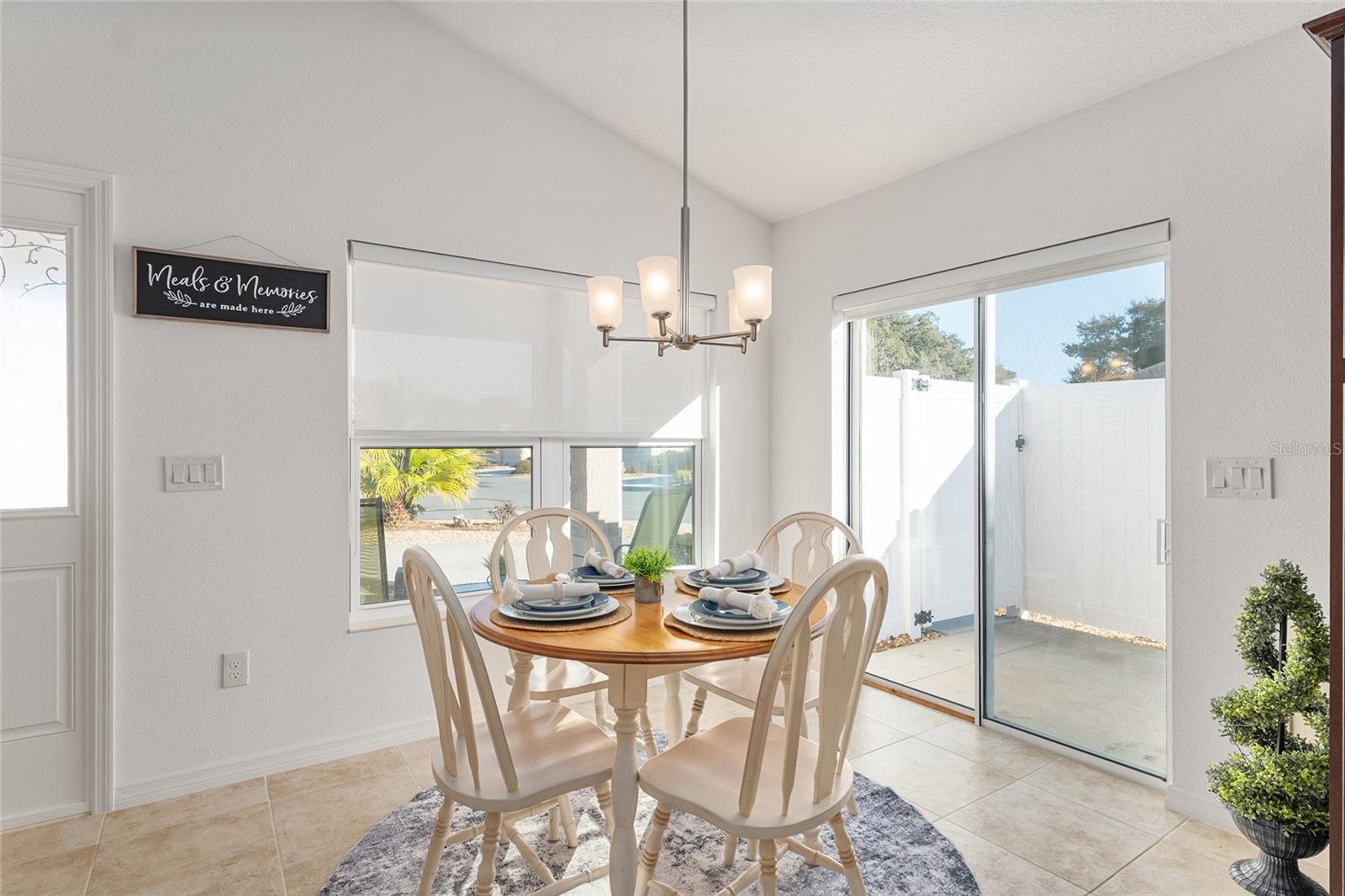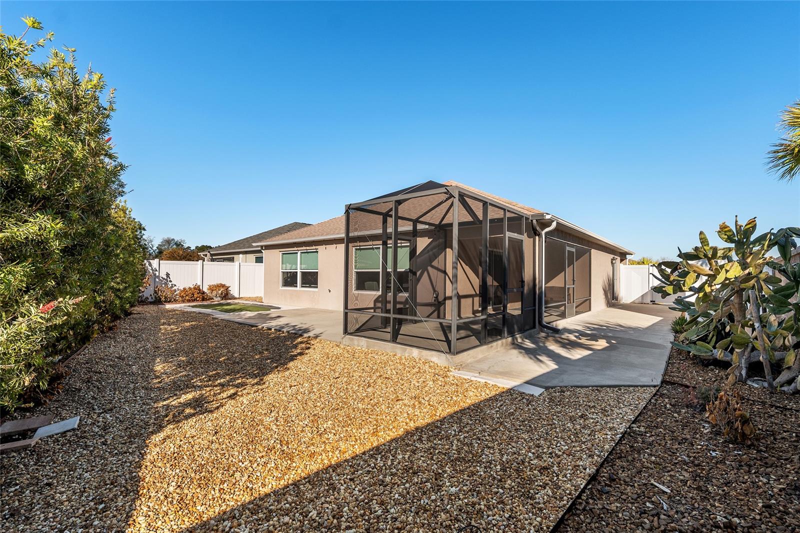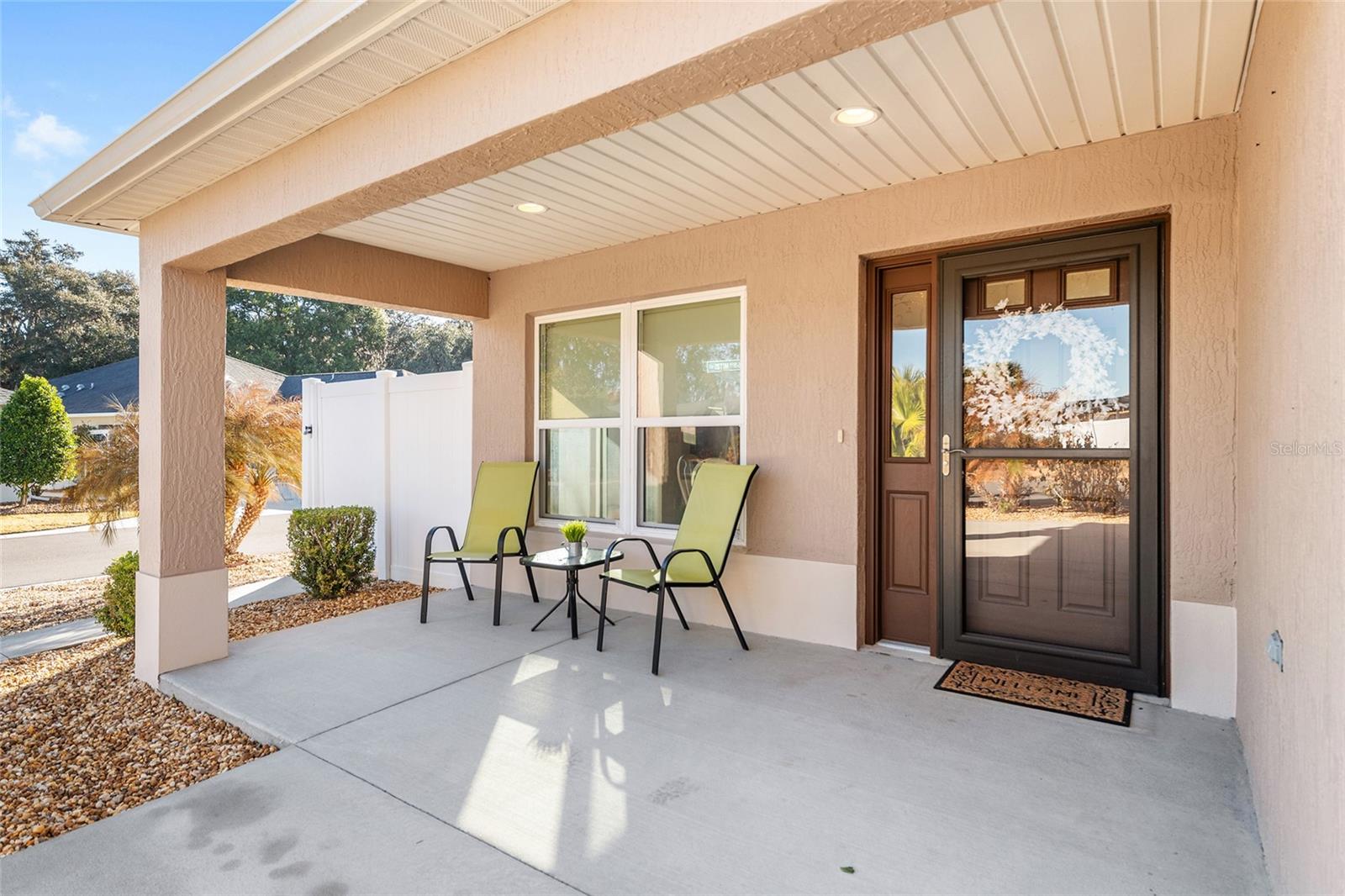 Melhor que NOVO sem vínculo! Localizada nas desejáveis Soulliere Villas em The Villages, esta Villa Avondale Courtyard Villa de 3 quartos e 2 banheiros oferece privacidade, conveniência e BAIXA MANUTENÇÃO em um espaçoso LOTE DE CANTO. Desfrute de um paisagismo livre de manutenção com superfícies de pedra e concreto e sem grama para cuidar. Uma acolhedora varanda frontal leva a um interior luminoso com TETOS ABOBADOS e um conceito de LAYOUT ABERTO. As principais áreas de estar e o quarto principal apresentam NOVO piso LAMINADO, enquanto os quartos possuem carpete. A cozinha tem muitos armários MAPLE, bancadas LAMANITE de alta definição, recursos de armazenamento extraíveis, eletrodomésticos de AÇO INOXIDÁVEL, despensa, balcão para café da manhã e uma copa casual com vista para a área de estar e de jantar. A suíte principal inclui TETO DE BANDEJA, closet e banheiro privativo com pias DUPLAS, chuveiro de estilo romano e vaso sanitário privativo. Desfrute de uma LANAI ESTENDIDA com tela que adiciona um valioso espaço ao ar livre para relaxar ou se divertir. Com espaço para sentar e jantar, funciona como uma extensão privada da casa. Facilmente acessado através de portas de vidro deslizantes, melhora o fluxo interno-externo e aproveita ao máximo a vida na Flórida. Os destaques adicionais incluem uma LAVANDERIA INTERIOR com lavadora e secadora empilhadas, além de uma garagem 24 x 18 com espaço para um carro e dois carrinhos de golfe. A casa fica a poucos passos da piscina do bairro Soulliere e a poucos minutos das lojas e restaurantes do dia a dia. Idealmente localizado perto do Centro de Recreação de Primeiros Respondentes, Nancy Lopez Legacy e Glenview Championship Country Clubs, Centro de Recreação Mulberry Grove, Calumet Grove Pool e Savannah Center, com fácil acesso a golfe executivo e de campeonato, trilhas de fitness, hospital VA e corredor CR 42 para compras, restaurantes e serviços diários!