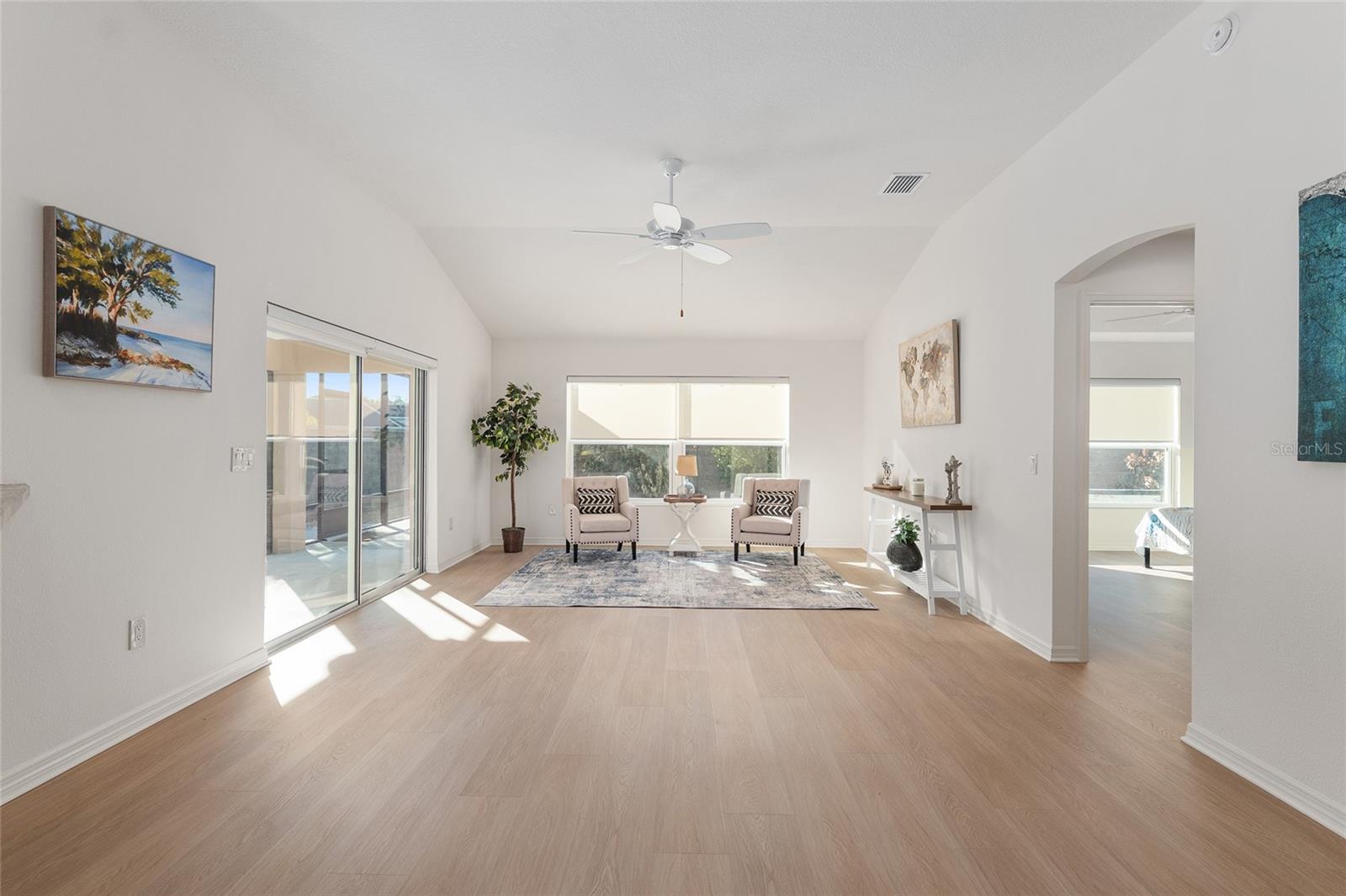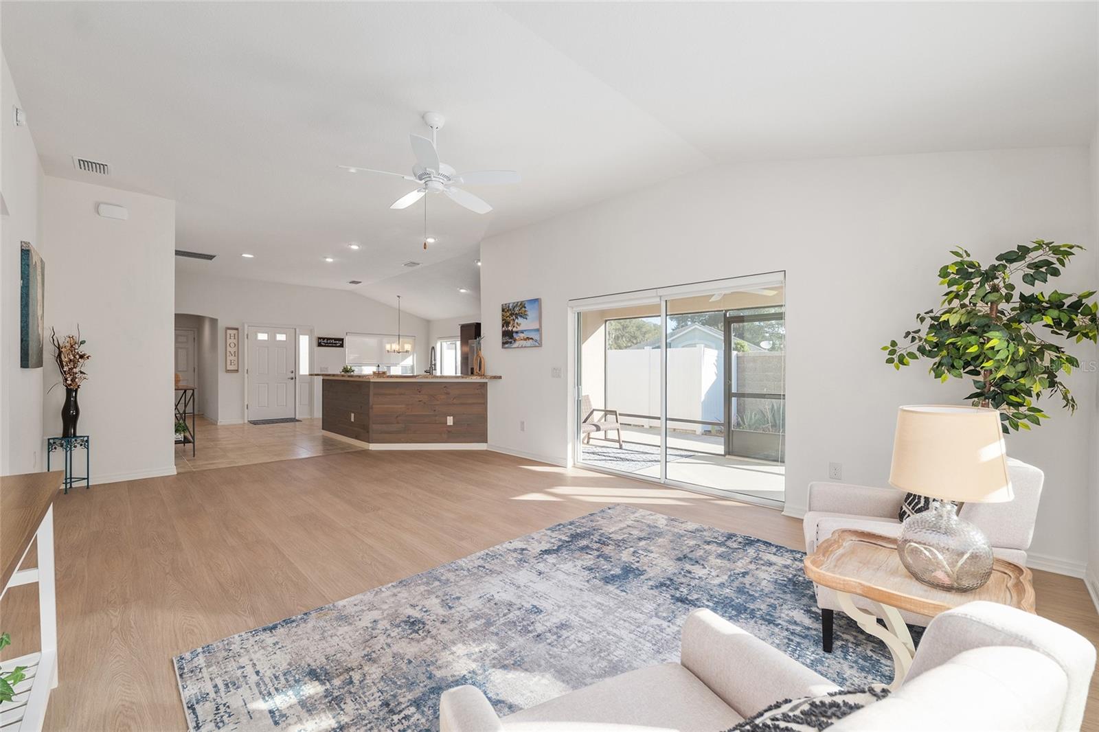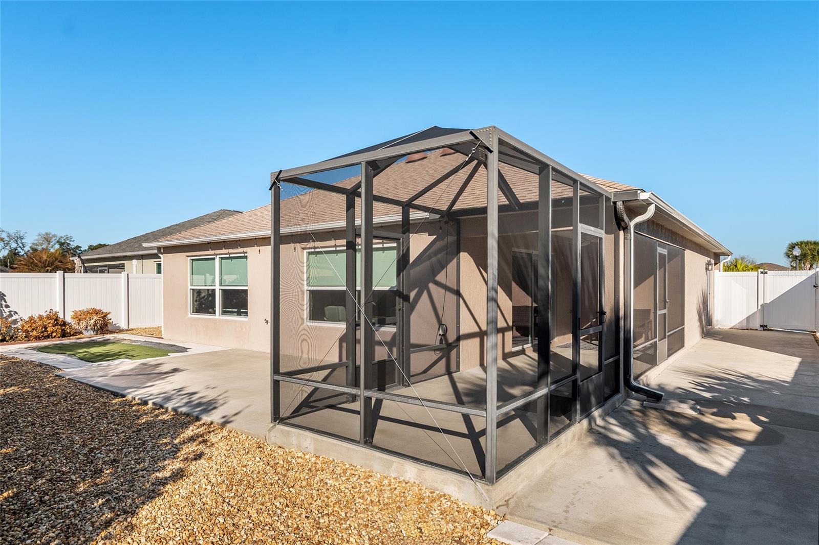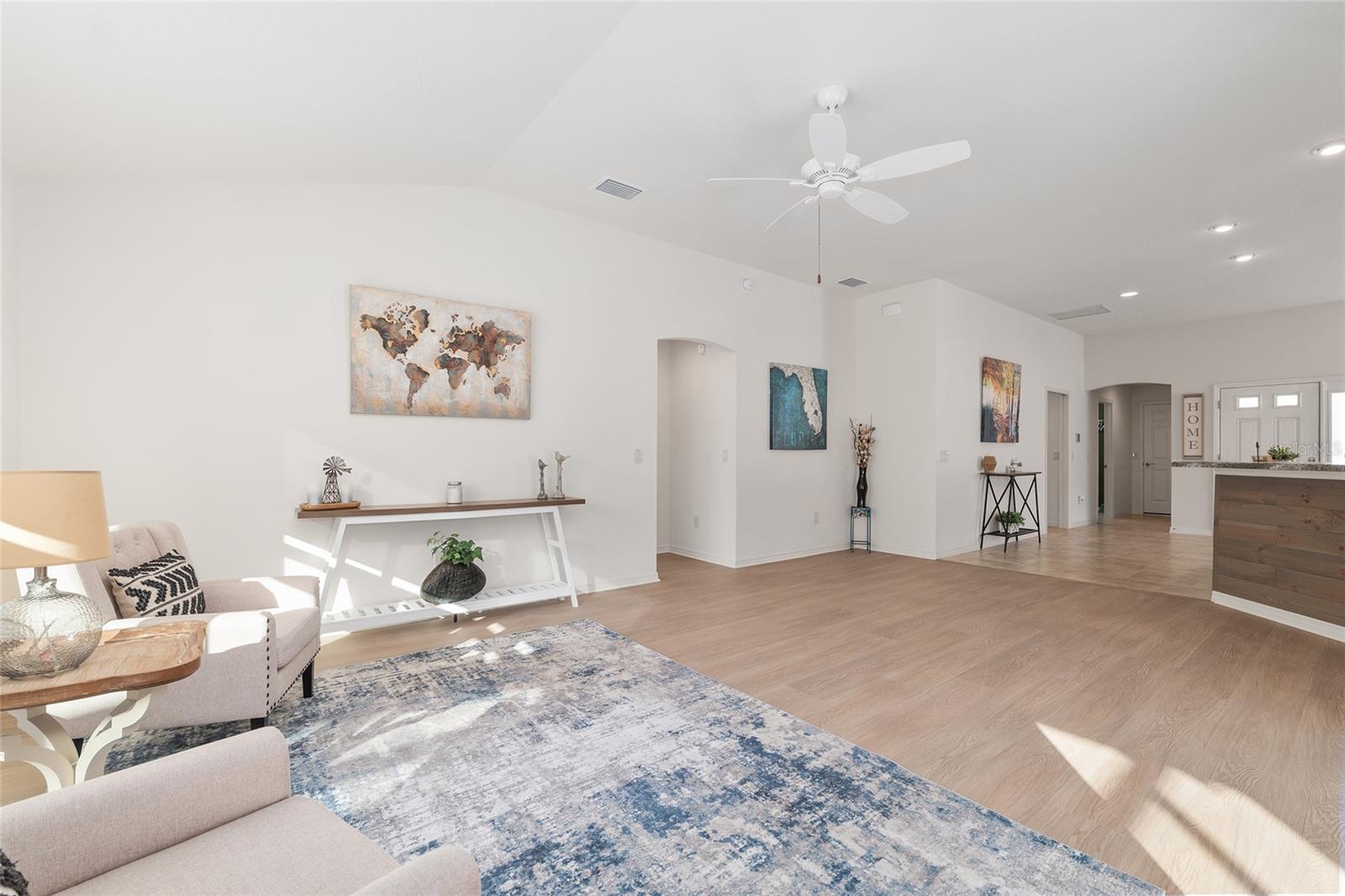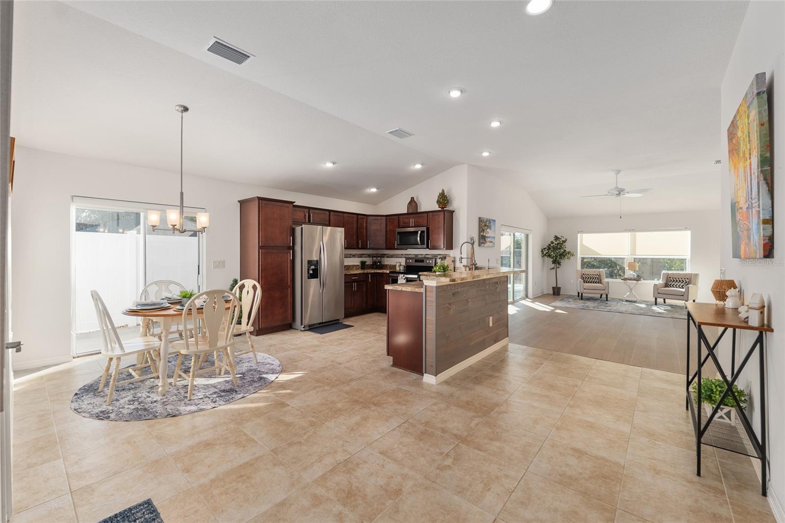 Melhor que NOVO sem vínculo! Localizada nas desejáveis Soulliere Villas em The Villages, esta Villa Avondale Courtyard Villa de 3 quartos e 2 banheiros oferece privacidade, conveniência e BAIXA MANUTENÇÃO em um espaçoso LOTE DE CANTO. Desfrute de um paisagismo livre de manutenção com superfícies de pedra e concreto e sem grama para cuidar. Uma acolhedora varanda frontal leva a um interior luminoso com TETOS ABOBADOS e um conceito de LAYOUT ABERTO. As principais áreas de estar e o quarto principal apresentam NOVO piso LAMINADO, enquanto os quartos possuem carpete. A cozinha tem muitos armários MAPLE, bancadas LAMANITE de alta definição, recursos de armazenamento extraíveis, eletrodomésticos de AÇO INOXIDÁVEL, despensa, balcão para café da manhã e uma copa casual com vista para a área de estar e de jantar. A suíte principal inclui TETO DE BANDEJA, closet e banheiro privativo com pias DUPLAS, chuveiro de estilo romano e vaso sanitário privativo. Desfrute de uma LANAI ESTENDIDA com tela que adiciona um valioso espaço ao ar livre para relaxar ou se divertir. Com espaço para sentar e jantar, funciona como uma extensão privada da casa. Facilmente acessado através de portas de vidro deslizantes, melhora o fluxo interno-externo e aproveita ao máximo a vida na Flórida. Os destaques adicionais incluem uma LAVANDERIA INTERIOR com lavadora e secadora empilhadas, além de uma garagem 24 x 18 com espaço para um carro e dois carrinhos de golfe. A casa fica a poucos passos da piscina do bairro Soulliere e a poucos minutos das lojas e restaurantes do dia a dia. Idealmente localizado perto do Centro de Recreação de Primeiros Respondentes, Nancy Lopez Legacy e Glenview Championship Country Clubs, Centro de Recreação Mulberry Grove, Calumet Grove Pool e Savannah Center, com fácil acesso a golfe executivo e de campeonato, trilhas de fitness, hospital VA e corredor CR 42 para compras, restaurantes e serviços diários!