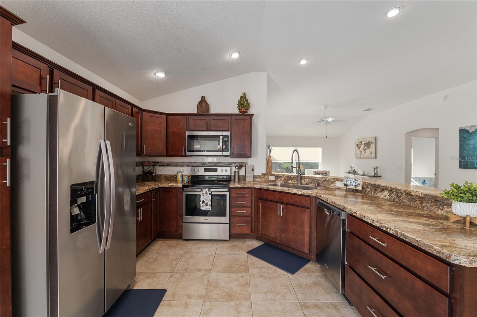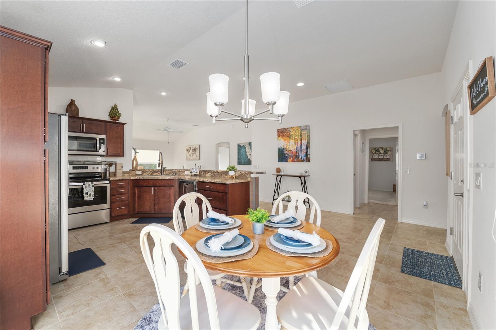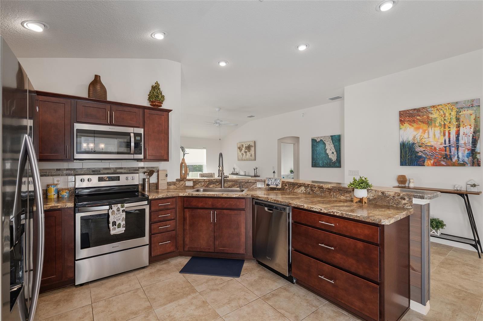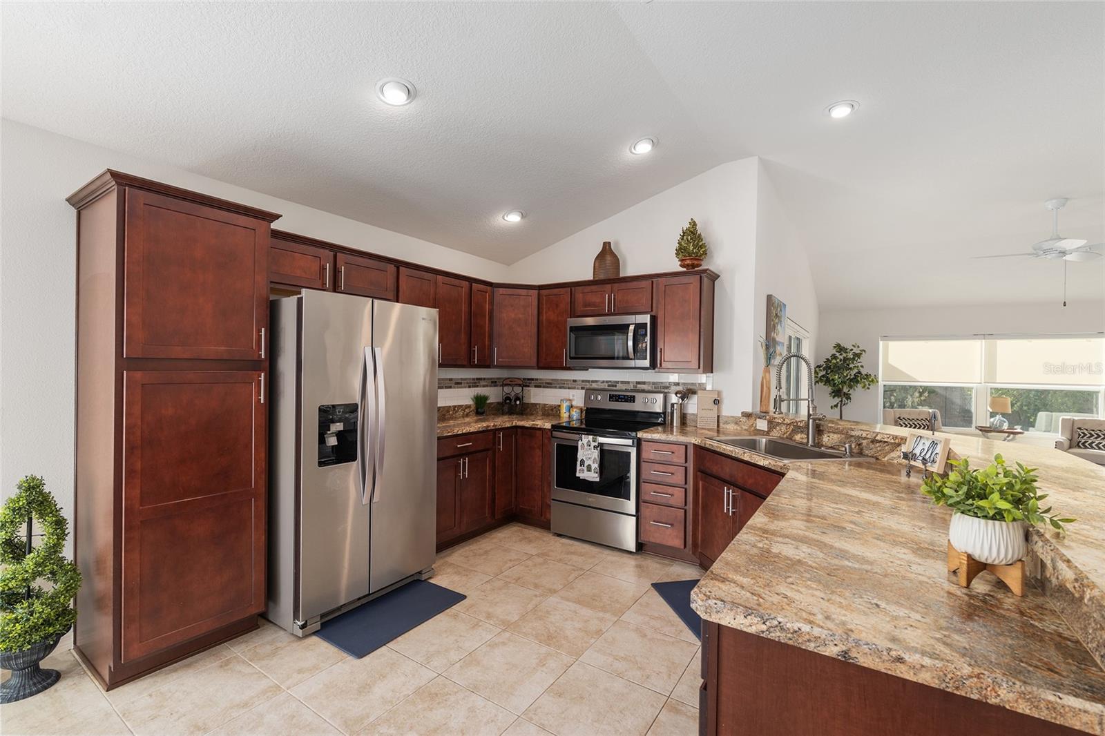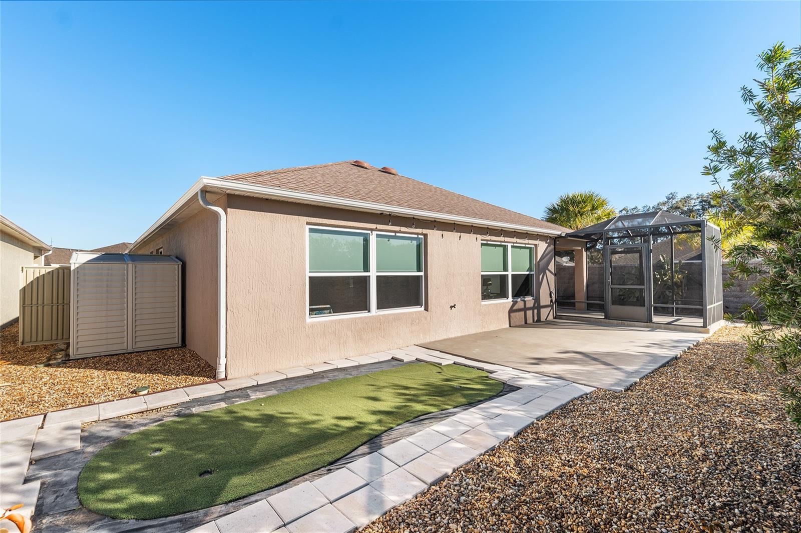 Melhor que NOVO sem vínculo! Localizada nas desejáveis Soulliere Villas em The Villages, esta Villa Avondale Courtyard Villa de 3 quartos e 2 banheiros oferece privacidade, conveniência e BAIXA MANUTENÇÃO em um espaçoso LOTE DE CANTO. Desfrute de um paisagismo livre de manutenção com superfícies de pedra e concreto e sem grama para cuidar. Uma acolhedora varanda frontal leva a um interior luminoso com TETOS ABOBADOS e um conceito de LAYOUT ABERTO. As principais áreas de estar e o quarto principal apresentam NOVO piso LAMINADO, enquanto os quartos possuem carpete. A cozinha tem muitos armários MAPLE, bancadas LAMANITE de alta definição, recursos de armazenamento extraíveis, eletrodomésticos de AÇO INOXIDÁVEL, despensa, balcão para café da manhã e uma copa casual com vista para a área de estar e de jantar. A suíte principal inclui TETO DE BANDEJA, closet e banheiro privativo com pias DUPLAS, chuveiro de estilo romano e vaso sanitário privativo. Desfrute de uma LANAI ESTENDIDA com tela que adiciona um valioso espaço ao ar livre para relaxar ou se divertir. Com espaço para sentar e jantar, funciona como uma extensão privada da casa. Facilmente acessado através de portas de vidro deslizantes, melhora o fluxo interno-externo e aproveita ao máximo a vida na Flórida. Os destaques adicionais incluem uma LAVANDERIA INTERIOR com lavadora e secadora empilhadas, além de uma garagem 24 x 18 com espaço para um carro e dois carrinhos de golfe. A casa fica a poucos passos da piscina do bairro Soulliere e a poucos minutos das lojas e restaurantes do dia a dia. Idealmente localizado perto do Centro de Recreação de Primeiros Respondentes, Nancy Lopez Legacy e Glenview Championship Country Clubs, Centro de Recreação Mulberry Grove, Calumet Grove Pool e Savannah Center, com fácil acesso a golfe executivo e de campeonato, trilhas de fitness, hospital VA e corredor CR 42 para compras, restaurantes e serviços diários!