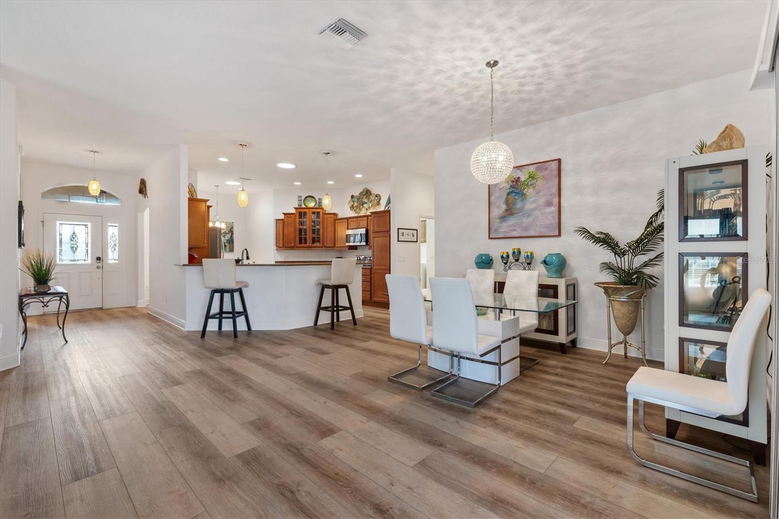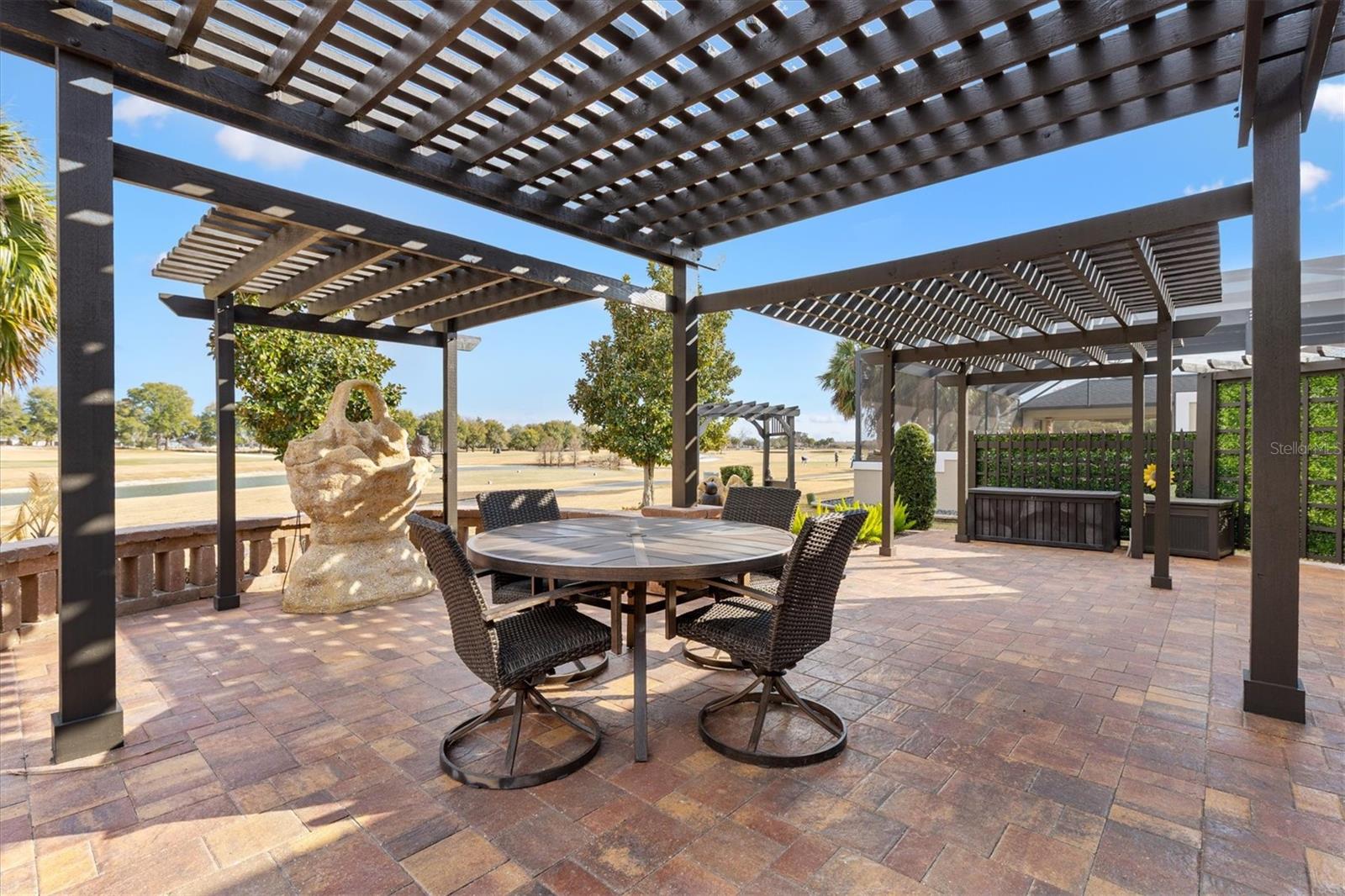 Designer Begonia com vista para o golfe e a água • Retiro externo voltado para o leste • Garagem para carrinho de golfe • Desejável campo de golfe profissional • Piso de pranchas de vinil de luxo 2025. Você ficará maravilhado e se sentirá em casa quando chegar a esta casa de designer Begonia de 3 quartos / 2 banheiros, lindamente conservada, que oferece golfe profissional e vista para a água com uma vista deslocada do 8º tee no Seminole Nine no campo de golfe profissional Belle Glade em The Villages, Flórida. A exposição traseira voltada para o leste captura o nascer do sol tranquilo da manhã e um ambiente sereno, criando uma experiência de vida ao ar livre excepcional. A partir do momento em que você chega, a ampla calçada pavimentada, o paisagismo detalhado e a varanda frontal com tela estabelecem um apelo convidativo ao meio-fio e uma entrada confortável. No interior, o novo piso de pranchas de vinil de luxo de 9 polegadas, instalado no final de 2025, percorre continuamente toda a casa, criando uma aparência moderna e coesa. A planta dos quartos divididos oferece privacidade, com uma porta de correr separando a suíte de hóspedes da área de estar principal. O quarto da frente apresenta uma saliência para maior espaço e um armário, enquanto o quarto do meio inclui teto abobadado e armário. A Suíte Primária oferece teto falso, armários duplos, incluindo um embutido, e banheiro privativo com ducha romana, pias divididas em altura confortável, vaso sanitário privativo e amplo armazenamento. A cozinha conecta-se perfeitamente aos espaços de estar e ao ar livre com uma generosa barra de serviço e café da manhã com vista para o golfe e para o mar. Armários abundantes com gavetas, copa, eletrodomésticos de aço inoxidável, incluindo forno de convecção, iluminação sob os armários, tomadas elétricas acima dos armários e dois tubos solares fornecem função e luz natural. As áreas de jantar e de estar fluem juntas e mostram o ambiente externo através de portas francesas que levam a uma varanda estendida com cortinas de privacidade com controle remoto e lareira elétrica, ampliando o espaço interno. O quintal foi cuidadosamente projetado com uma passarela de pavimentação da frente para trás, pérgulas, fogueira com bordas de pedras empilhadas, várias fontes e áreas de reunião dedicadas. Seja entretendo, relaxando junto à lareira ou aproveitando o sol da manhã sobre o campo de golfe e a água, este espaço ao ar livre oferece um raro nível de detalhe. As comodidades adicionais nas proximidades incluem LaBelle Recreation Center a aproximadamente 0,6 milhas, Belle Glade Country Club and Restaurant a aproximadamente 1,6 km, Atlas Canine Park a aproximadamente 0,7 milhas, Walmart Neighborhood Market and Gas a aproximadamente 2,2 milhas, e Colony Plaza com compras, mantimentos e restaurantes a aproximadamente 2,5 milhas. Este Begonia Designer combina vistas para o golfe e para o mar, atualizações interiores refinadas e vida ao ar livre com curadoria em um local excepcional em Belle Glade. Aproveite o estilo de vida de The Villages, FL, com comodidades abundantes para você jogar golfe, fazer compras, jantar e desfrutar de muitas opções de entretenimento, reuniões de clube, serviços médicos e muito mais, tudo acessível por um carrinho de golfe.