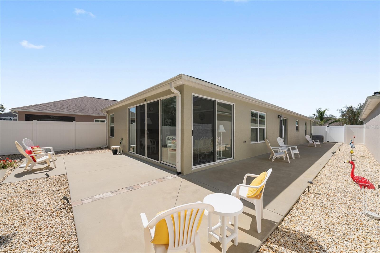 ~ CONSTRUÍDO EM 2016 ~ ~ LANAI FECHADO EM VIDRO ~ ~ EXTERIOR PINTADO 2025 ~ ~ MUITAS ATUALIZAÇÕES DE DECORAÇÃO ~ Bem-vindo a este lindo modelo CHARLOTTE na vila de WOODBURY, PHILLIPS VILLAS, oferecendo um quintal espaçoso e inúmeras atualizações atenciosas. Entre nos tetos ALTOS ABOBADOS que criam uma sensação luminosa e aberta em toda a casa. A entrada possui PISO LAMINADO e PORTA DIANTEIRA TOTALMENTE EM VIDRO, proporcionando entrada de luz natural no espaço. A sala também é adornada com PISO LAMINADO, ventilador de teto, persianas e elegantes CORNIÇAS decorativas acima das janelas e portas, acrescentando um toque de personalidade. A sala de jantar continua a sensação de abertura com piso laminado e tetos altos. A cozinha está bem equipada com piso de linóleo, bancadas de HI-DEF, backsplash BEADBOARD, PIA DE PORCELANA, iluminação RECESSADA, iluminação SOB-GABINETE e SOBRE-GABINETE, armários inferiores, DESPENSA DE ARMÁRIO e BAR DE CAFÉ DA MANHÃ com REVESTIMENTO. A suíte principal possui piso laminado, teto alto e closet. O banheiro privativo inclui piso de linóleo, chuveiro WALK-IN e bancadas de alta definição com pias elevadas. Os hóspedes irão apreciar o confortável quarto secundário com piso laminado, tetos ALTOS abobadados, armário embutido e ventilador de teto. O banheiro de hóspedes oferece piso de linóleo, combinação de banheira e chuveiro, armário de roupa de cama e bancadas ALTAS com superfícies de alta definição. Um terceiro quarto oferece espaço adicional flexível com piso laminado, armário embutido e ventilador de teto. A LAVANDERIA INTERNA inclui piso de linóleo, tanque de lavanderia e armários para armazenamento extra. Relaxe o ano todo na LANAI FECHADA DE VIDRO com janelas de vidros duplos com piso pintado, persianas, ventilador de teto e controles deslizantes que levam ao quintal - perfeito para desfrutar do ambiente tranquilo ao ar livre. Esta casa bem conservada dispõe de garagem para 1/1/2 carro com escadas no sótão para arrumação extra e porta de garagem com porta deslizante para maior comodidade. Duas janelas na sala e no quarto principal foram substituídas para maior conforto e eficiência. Esta encantadora villa combina tetos abobadados, atualizações de bom gosto e uma localização desejável em The Villages. Perto do Mulberry Grove Rec Center, do First Responders Rec Center e do Nancy Lopez Country Club. Para suas compras, refeições e necessidades médicas, você está a poucos minutos do Mulberry Grove Shopping Plaza!