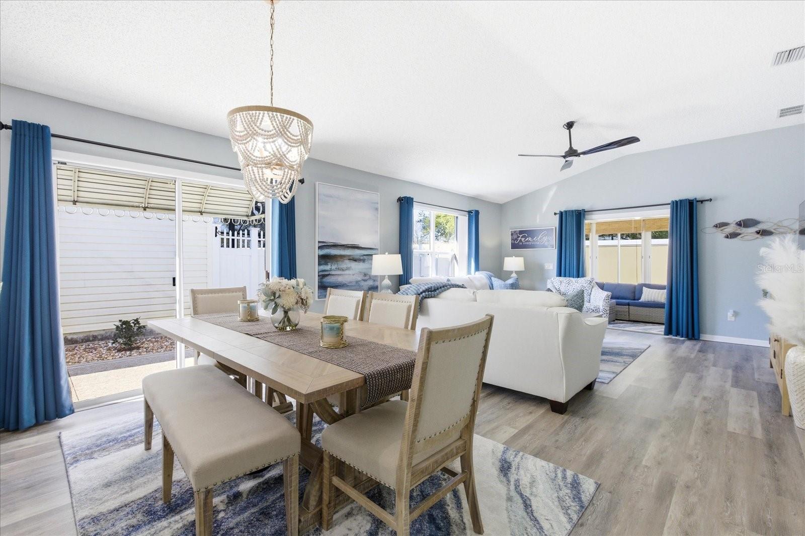CHAVE NA MÃO E BONITAMENTE ATUALIZADO. Bem-vindo a esta BONITA Courtyard Villa de 3 quartos e 2 banheiros, requintadamente mantida, sem vínculo, localizada na muito procurada vila de Caroline em Elizabeth Villas. Esta casa oferece uma espaçosa planta aberta com uma grande cozinha com bancadas de quartzito, amplos armários e um layout convidativo que flui perfeitamente para a área de estar. As portas francesas levam da sala de estar para a varanda fechada, proporcionando espaço adicional flexível. O quarto principal inclui um amplo closet e um banheiro privativo atualizado. O banheiro privativo dispõe de box amplo com azulejos e box de vidro. Pisos e ventiladores de teto mais novos aumentam o conforto e o estilo. A varanda fechada e a área de jantar se abrem para vários pátios privados cercados por paisagismo maduro, plantas e flores. Este ambiente tranquilo de pátio oferece um espaço ideal para entretenimento, relaxamento ou desfrutar de uma vida tranquila ao ar livre. Localizada do outro lado da Morse Boulevard do Lago Sumter Landing, esta casa oferece acesso rápido a entretenimento noturno, restaurantes, lojas, calçadão à beira-mar e pôr do sol deslumbrante. Centros recreativos, piscinas, golfe, cuidados de saúde, cuidados de urgência, bancos e opções de mercearia estão a poucos minutos de distância. Os recursos adicionais incluem telhado substituído em 2020, HVAC substituído em 2024, bancadas e chuveiro privativo em 2025, paisagismo/pátio em 2026, pisos mais novos e ventiladores de teto em todos os quartos. A casa é oferecida totalmente mobiliada com uma decoração lindamente selecionada e móveis de alta qualidade, permitindo uma diversão imediata. Sem vínculo. Esta moradia excepcional está realmente pronta para morar e perfeitamente posicionada para desfrutar de tudo o que The Villages oferece. Não perca a oportunidade de personalizar esta linda casa.
