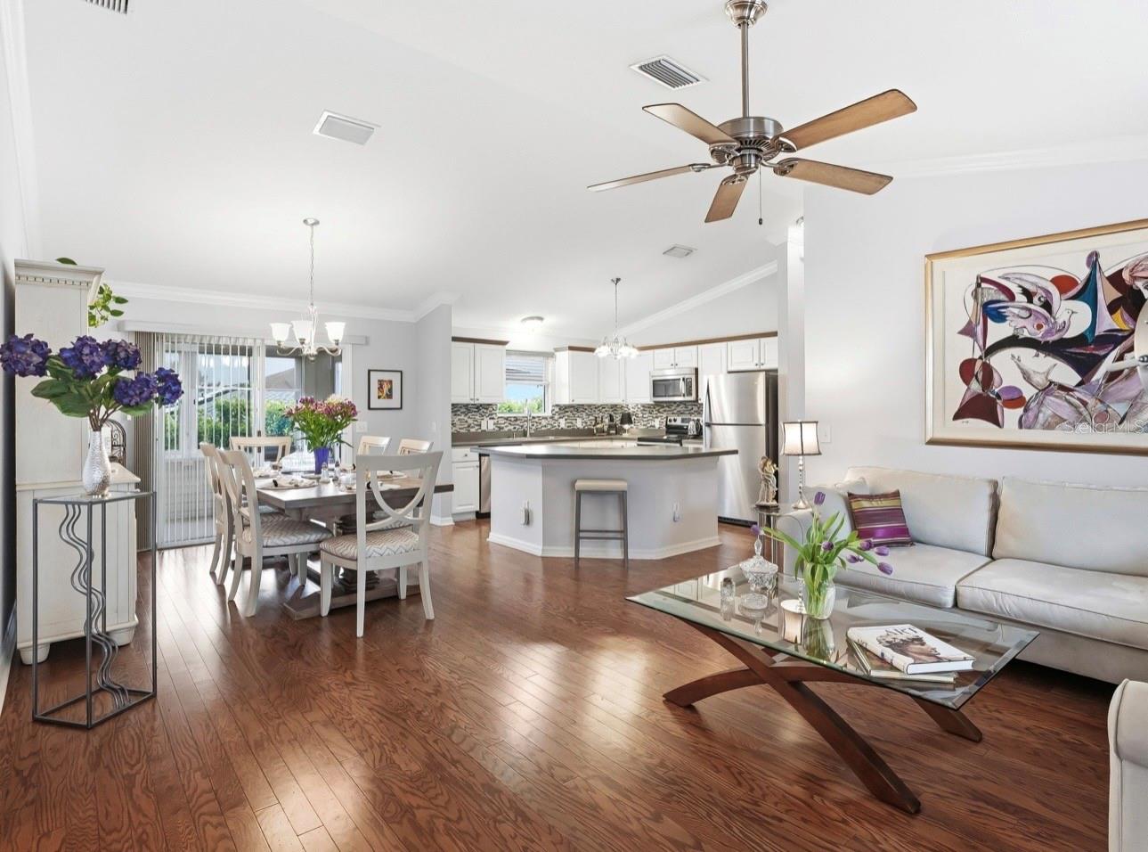 Entre na Flórida sem esforço vivendo em THE VILLAGES, com este modelo SUN KISSED de 3 quartos e 2 banheiros lindamente decorado, perfeitamente posicionado na localização muito desejável e privilegiada, diretamente entre Lake Sumter Landing e Brownwood Paddock Squares, em frente a uma piscina comunitária cintilante e um parque sereno em The Village of Tamarind Grove. No interior, você encontrará pisos de madeira maciça e aconchegante fluindo pelas principais áreas de estar, criando uma estética convidativa e atemporal. O design de conceito aberto oferece uma combinação perfeita de conforto e funcionalidade, ideal tanto para a vida cotidiana quanto para entretenimento. A luz natural entra melhorando o ambiente arejado da casa. Este layout cuidadosamente projetado com seus quartos divididos inclui uma espaçosa suíte principal, quartos de hóspedes bem equipados com banheiro privativo e um versátil quarto na Flórida - perfeito para café da manhã, leitura ou aproveitar o sol durante todo o ano em um ambiente descontraído interno e externo, adicionando 135 pés quadrados adicionais de espaço sob o telhado! Saia para a sua gaiola privada, que oferece o espaço perfeito para relaxar, jantar ou simplesmente apreciar o ambiente tranquilo sem interrupção. Localizada a poucos passos da piscina comunitária, das caixas de correio e da área do parque, esta casa oferece comodidade incomparável e um estilo de vida de lazer. Quer procure uma residência a tempo inteiro ou um retiro sazonal, este modelo Sun Kissed oferece conforto, charme e localização privilegiada num pacote excepcional!