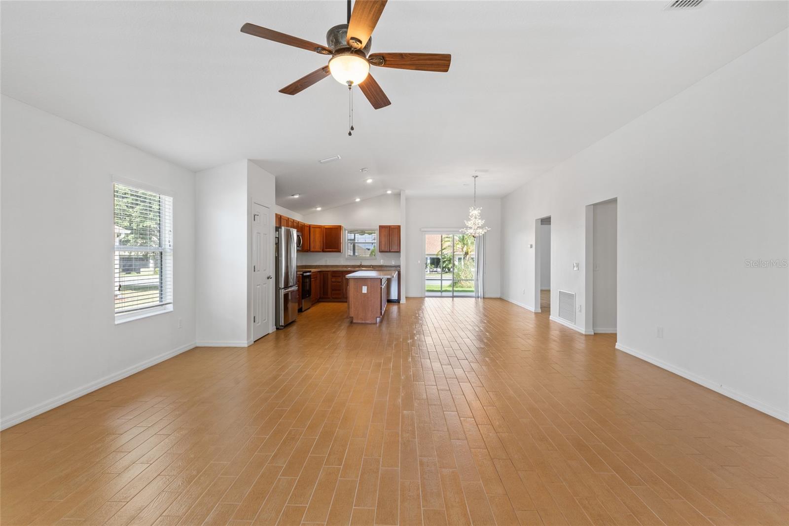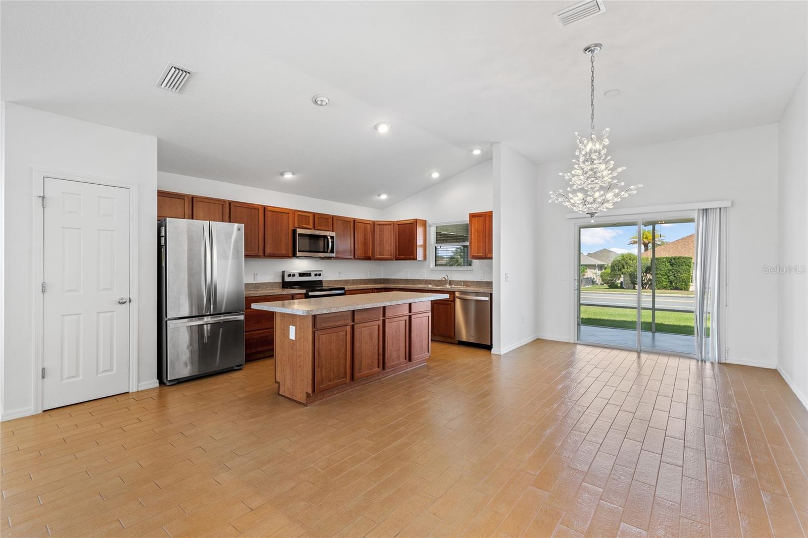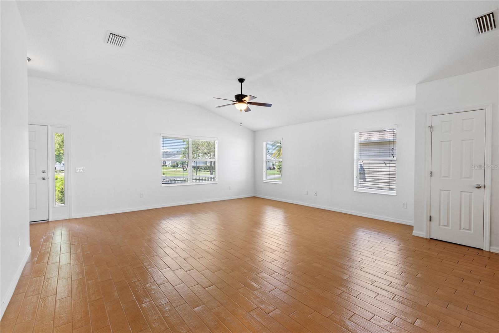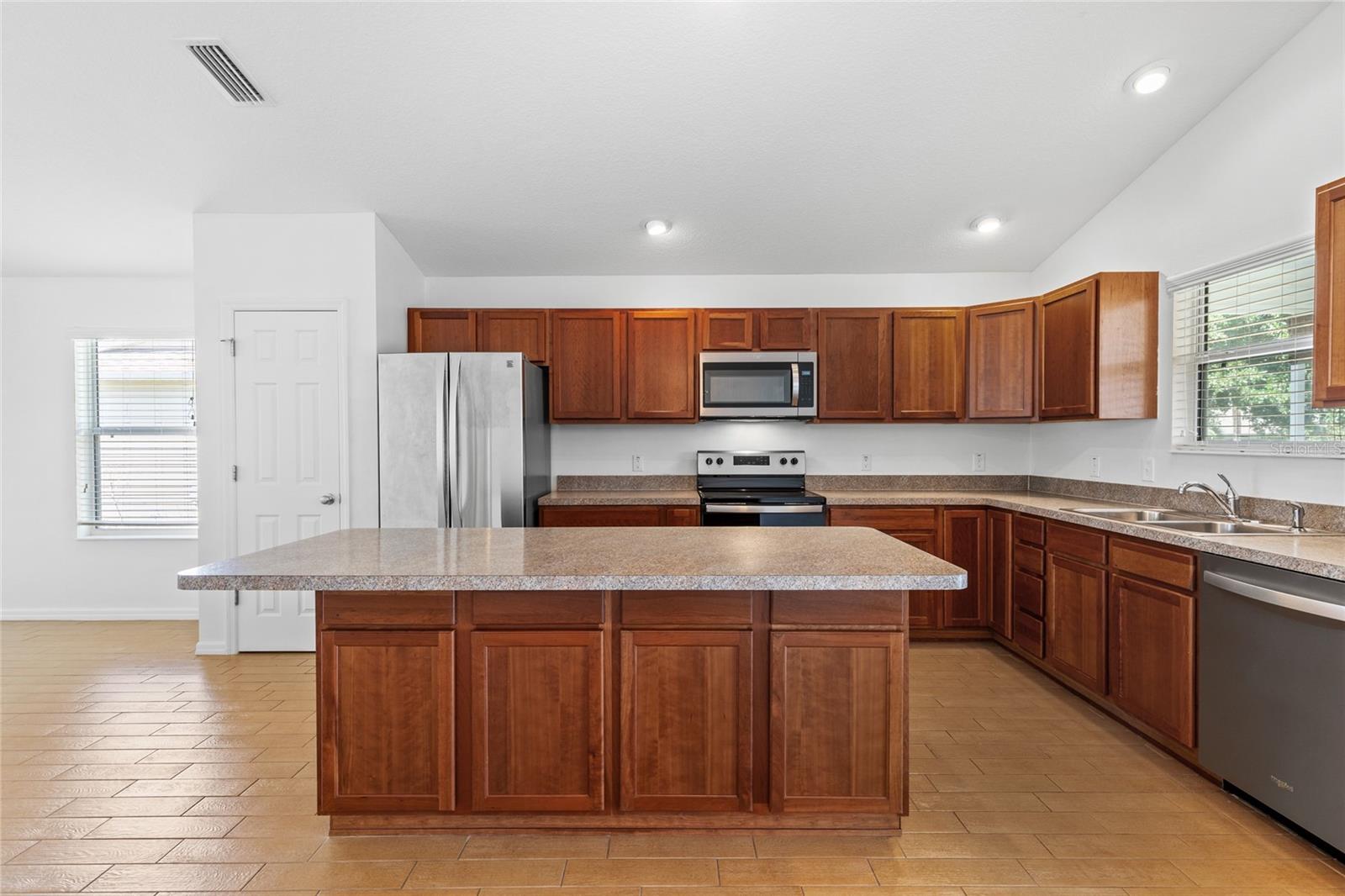 Bem-vindo em casa nesta casa imaculadamente mantida com uma garagem de 2,5 carros (perfeita para um carrinho de golfe!) Com aparelhos atualizados na desejável vila de Tamarind Grove! Ao chegar, você notará a tinta fresca e a paisagem bem guardada desta adorável casa. Entre pela porta da frente e fique surpreso com a limpeza e o conceito aberto da planta baixa do espaço. As áreas de estar, jantar e cozinha comem pisos de azulejos em forma de madeira que estão na moda, durável e fácil de limpar. Muitas janelas deixam o lindo sol da Flórida! Continue até a área da cozinha e descubra armários de madeira maciça e aparelhos de aço inoxidável atualizados. A porta de vidro deslizante traseira se abre para uma varanda de costas confortável e convidativa, perfeita para relaxar ou divertir convidados! Continue de volta para dentro e aventure-se no espaçoso quarto primário com banho de banho e um closet com amplas prateleiras e gavetas. Dois quartos adicionais são perfeitos para convidados noturnos ou um escritório em casa! A lavanderia já possui uma lavadora e secadora pronta para ir e uma grande pia de lavagem, além de armazenamento extra. Finalmente, aventure-se na garagem, onde você encontrará muito espaço para 2 veículos de tamanho normal e um carrinho de golfe! Agende uma exibição particular hoje para experimentar todo o charme que esta casa tem a oferecer.
