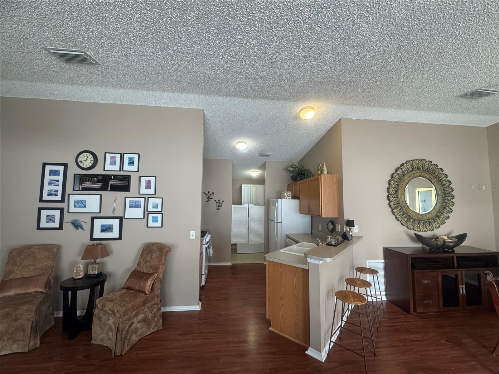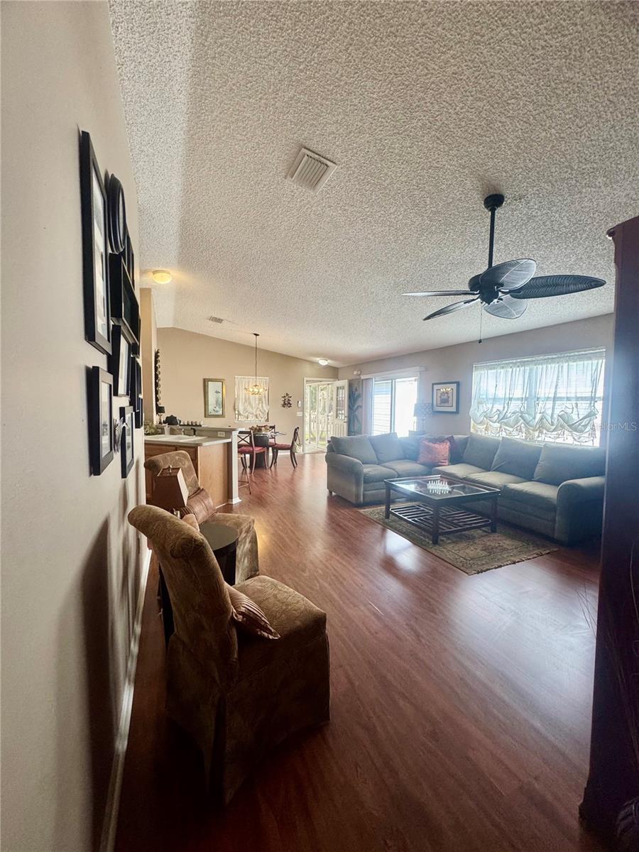 Charming 2/2 Cabot Cove Patio Villa - sem vínculo! Mudar-se pronto e sem preocupações com um novo telhado (2019), A/C (2021) e aquecedor de água (2020). O piso plano aberto com tetos abobadados cria uma sensação brilhante e espaçosa, e a cozinha possui uma fogão de gás natural, armários de carvalho e aparelhos mais novos. Desfrute de uma vida durante o ano todo na Lanai, encerrada de acrílico, ou relaxe no pátio lateral, perfeito para grelhar. A suíte primária inclui um closet e banheiro privativo, enquanto o quarto de hóspedes é ideal para visitantes, um escritório ou um espaço de hobby. Com um pátio de baixa manutenção, a utilidade na garagem e uma ótima localização na vila de Calumet Grove, perto de golfe, piscinas, compras e médicos, esta villa é uma excelente opção para a vida ou investimento sazonal.